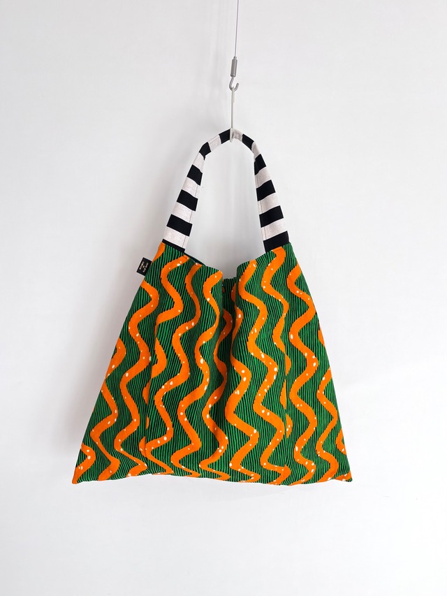 さんかくバッグ アフリカ布 なみなみ/グリーン×オレンジ