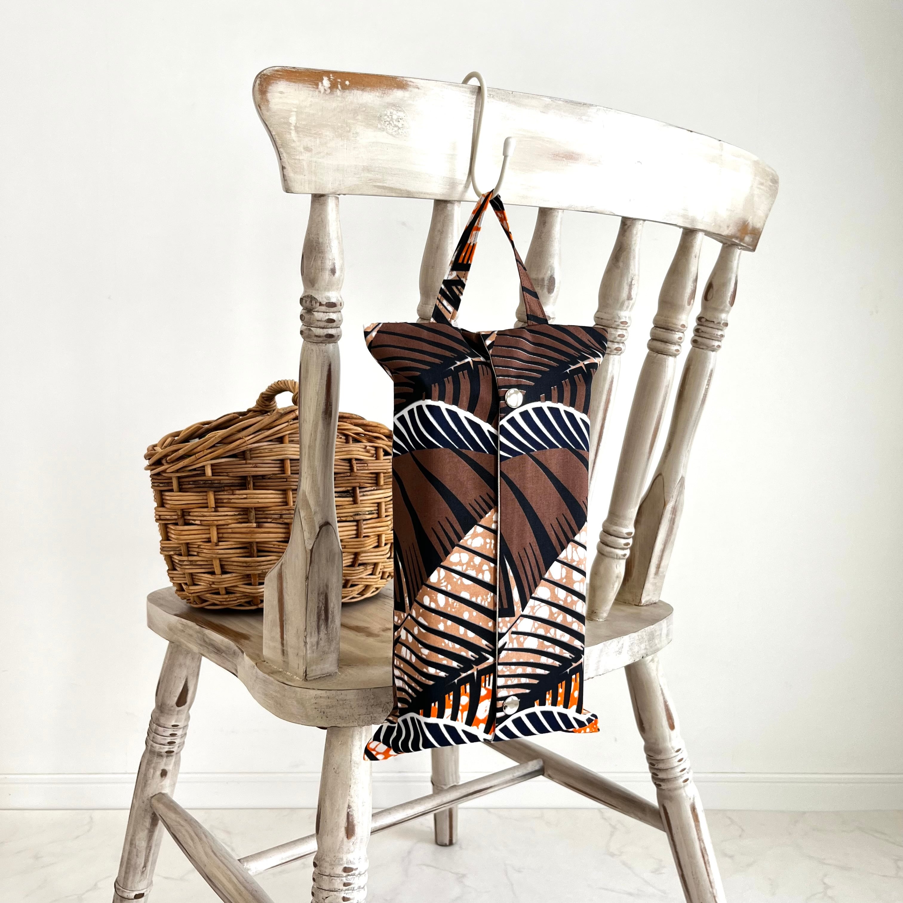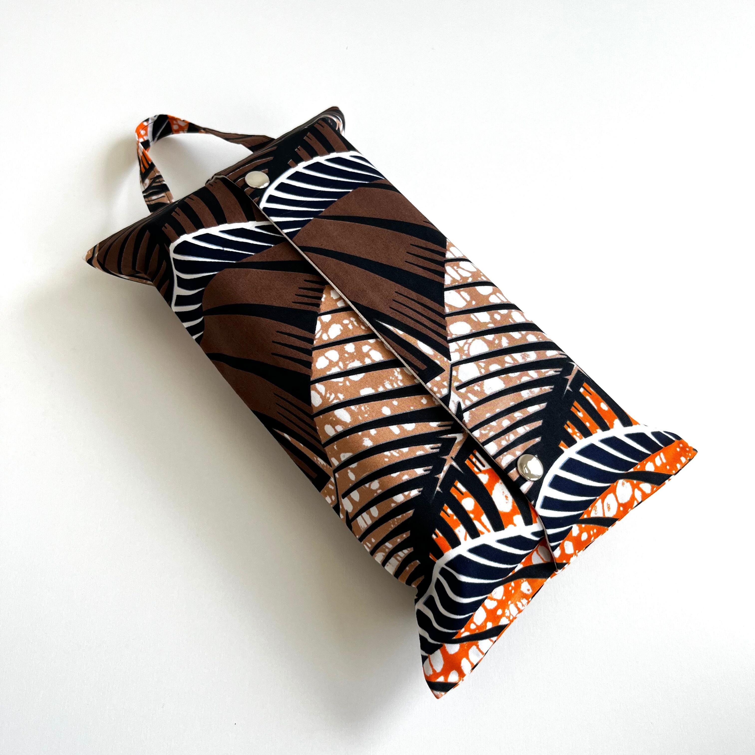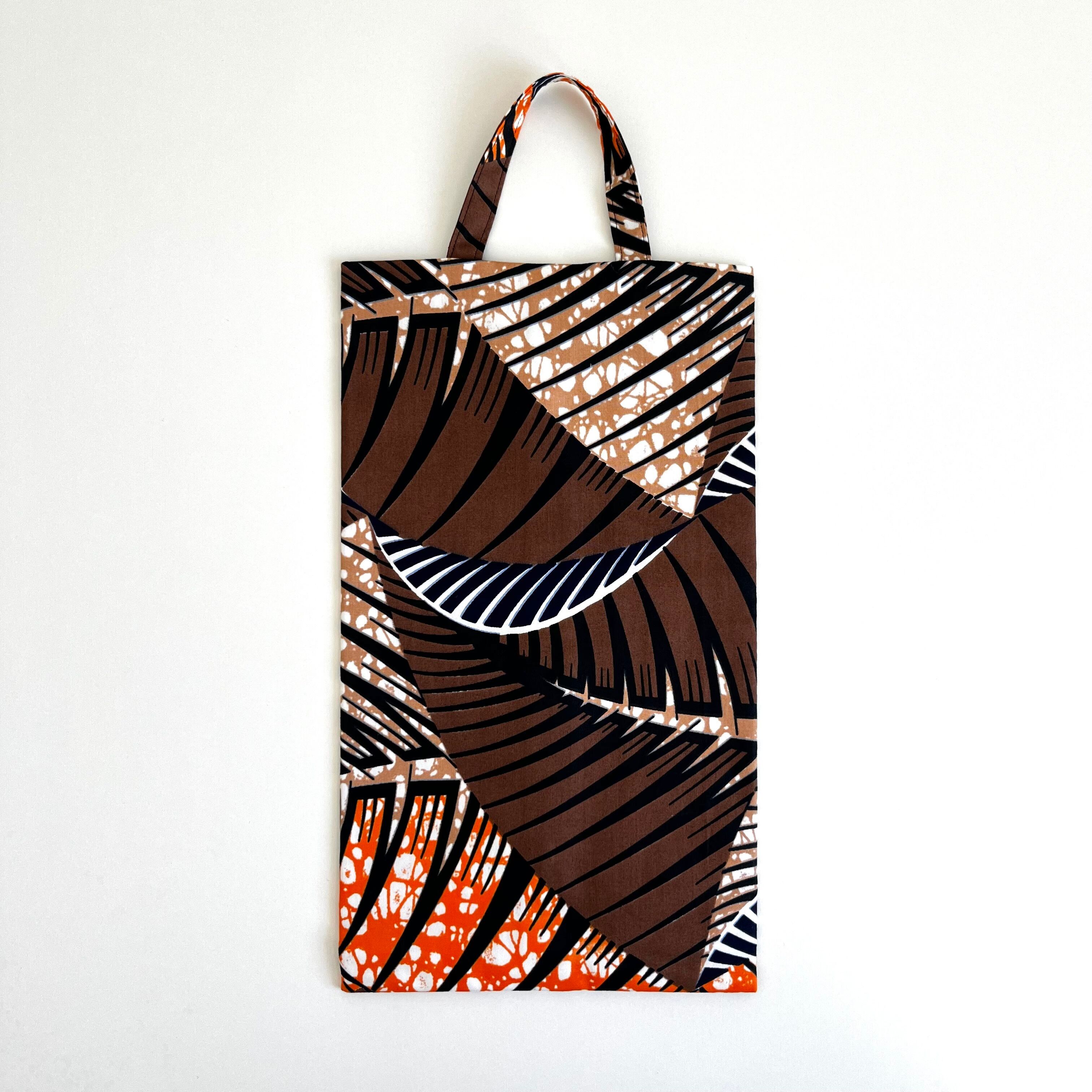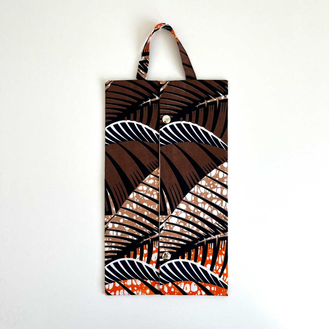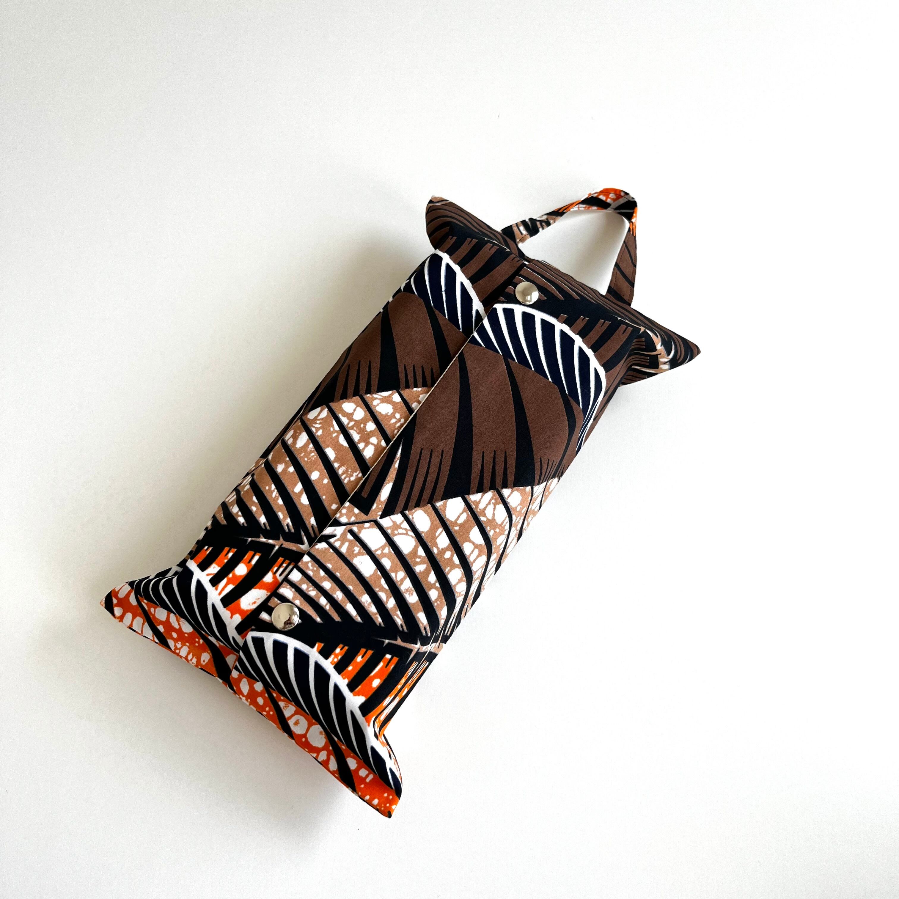 アフリカ布 BOXティッシュカバー パームリーフ/ブラウン