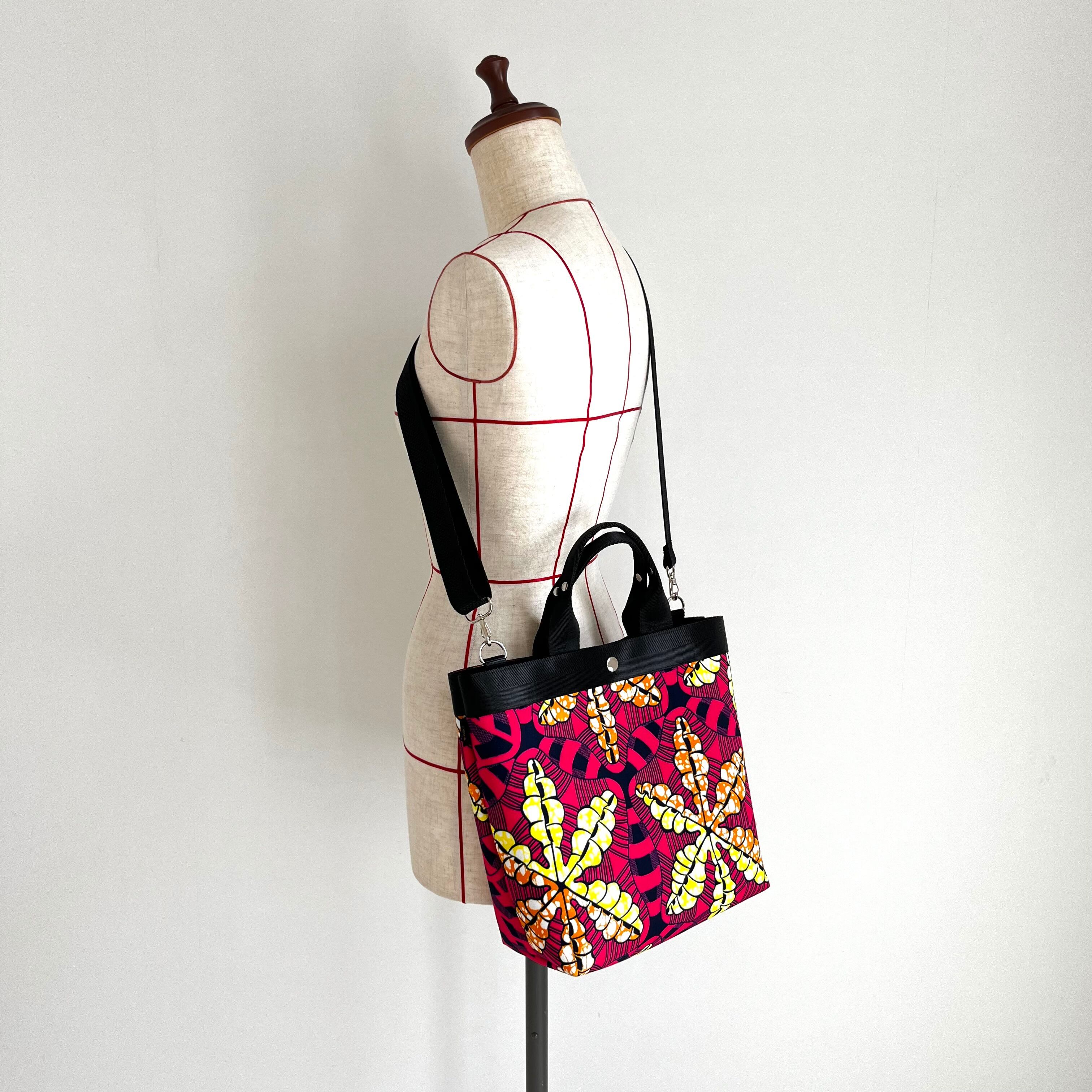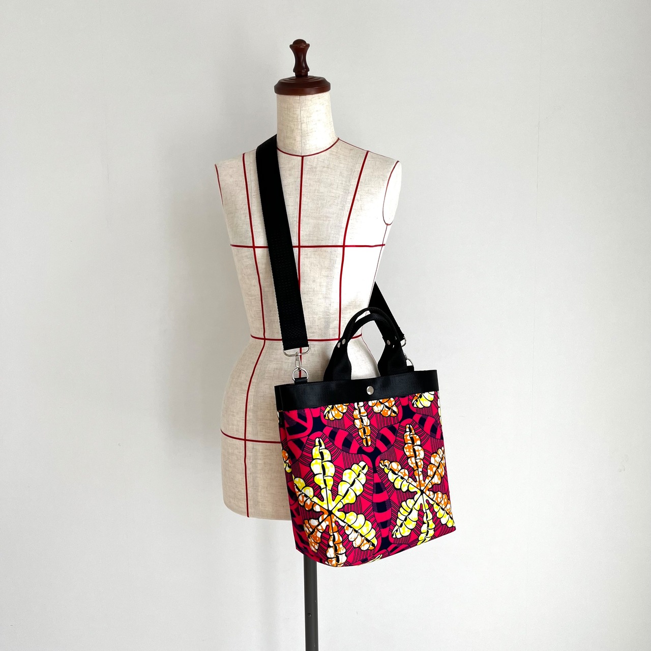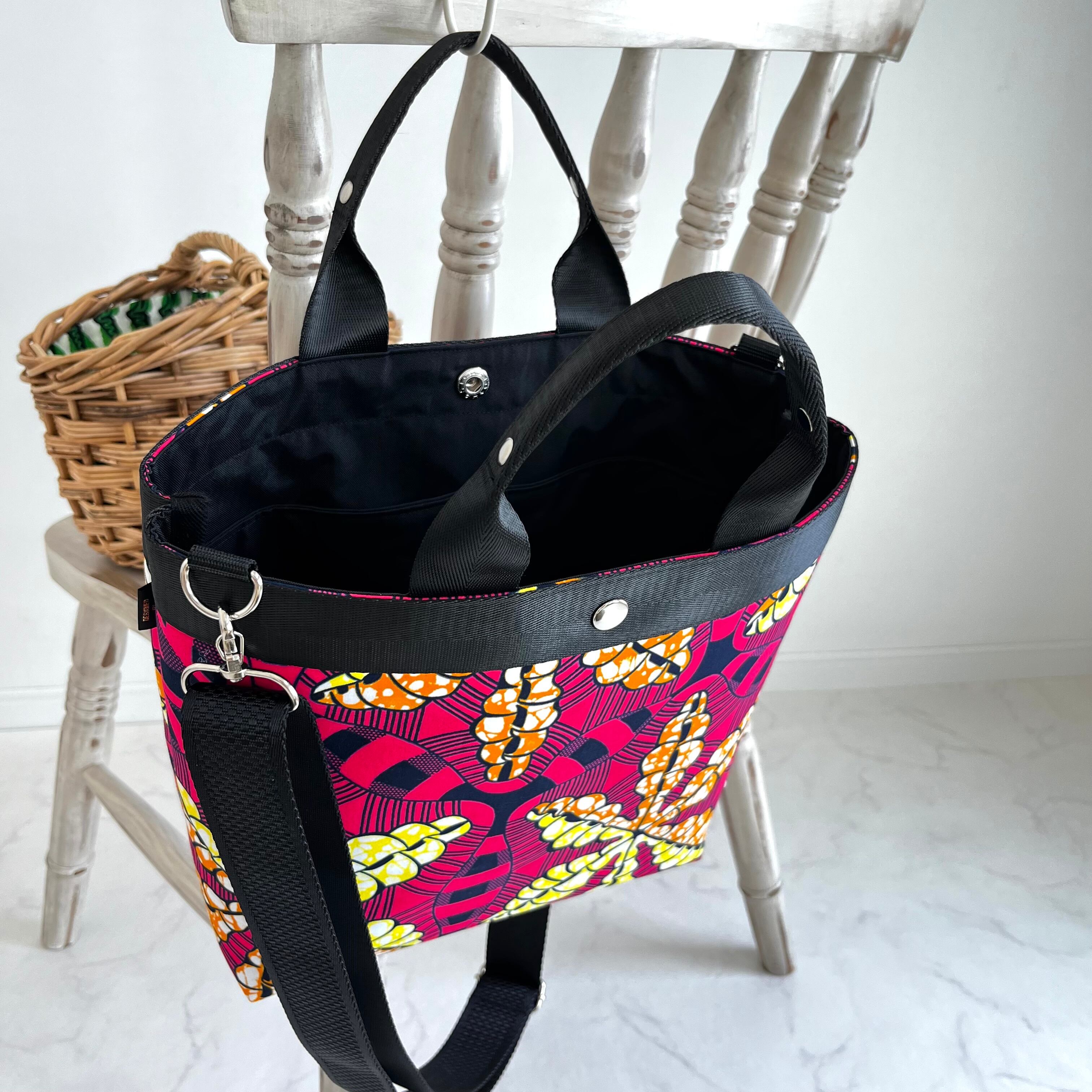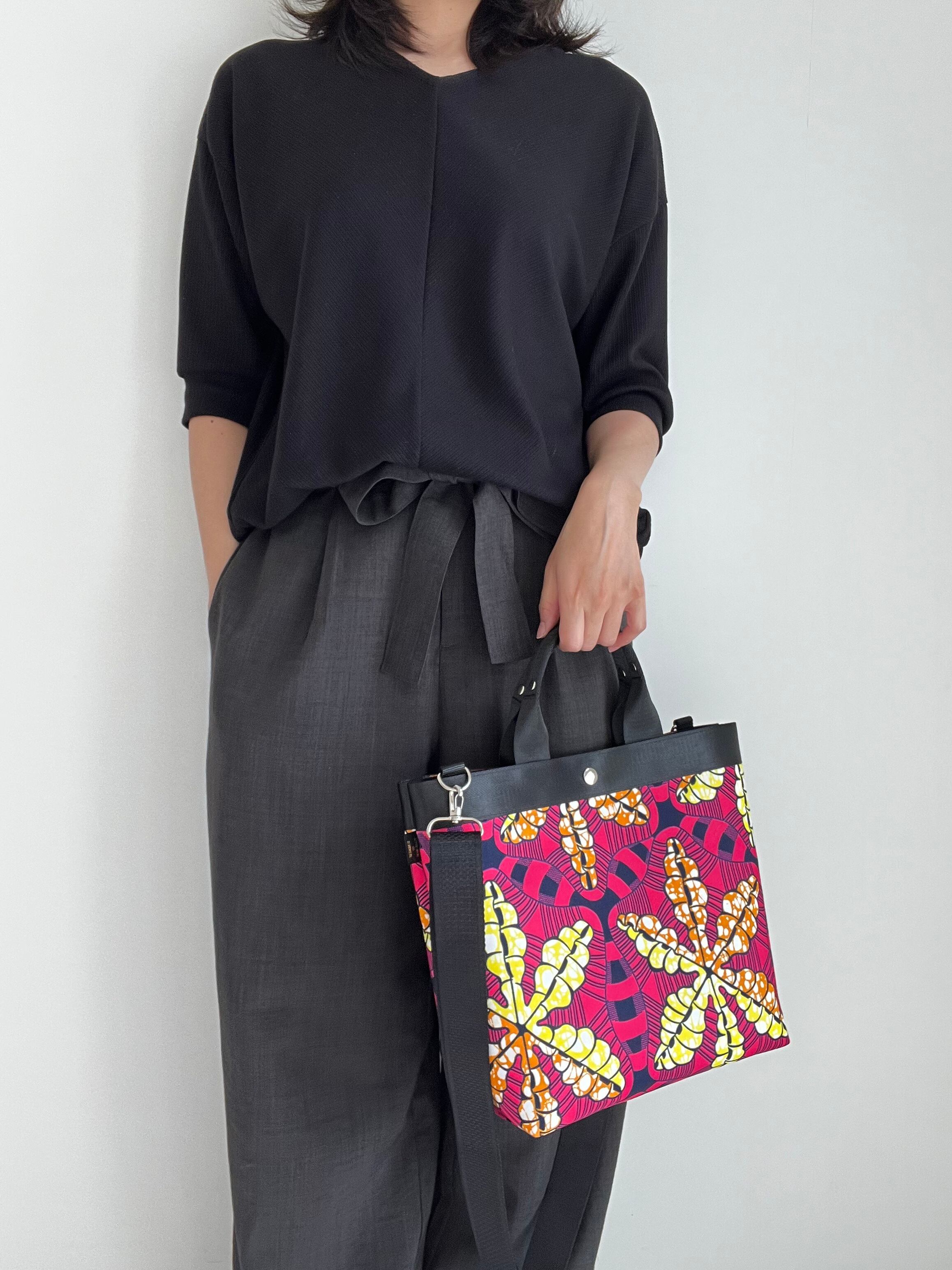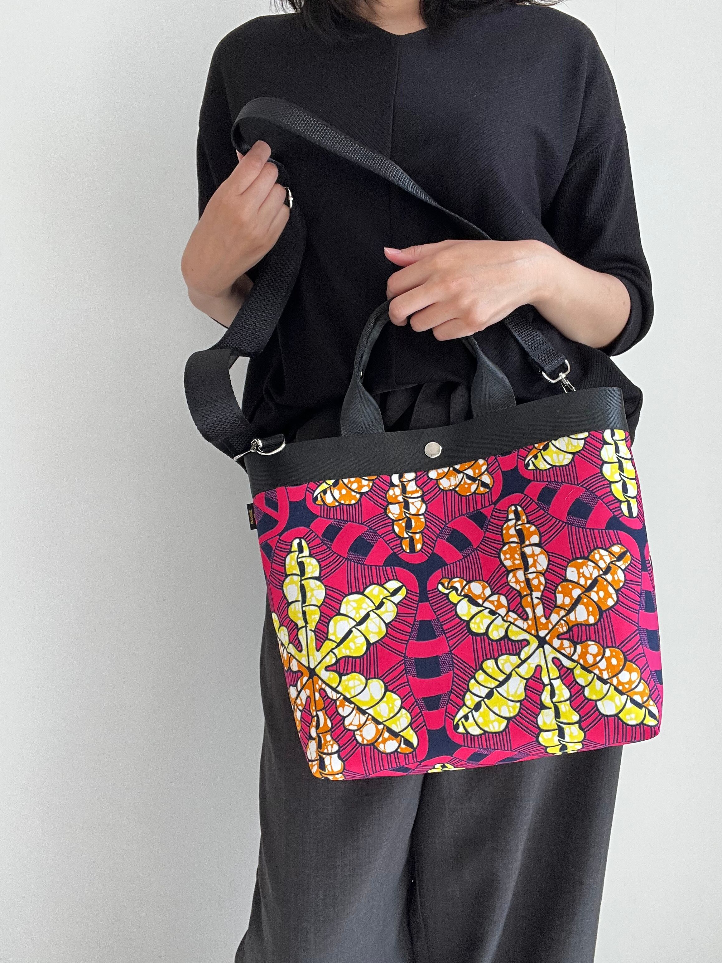 2wey/ショルダー Blackエッジバッグ Lサイズ イエローフラワー/ビビッドピンク