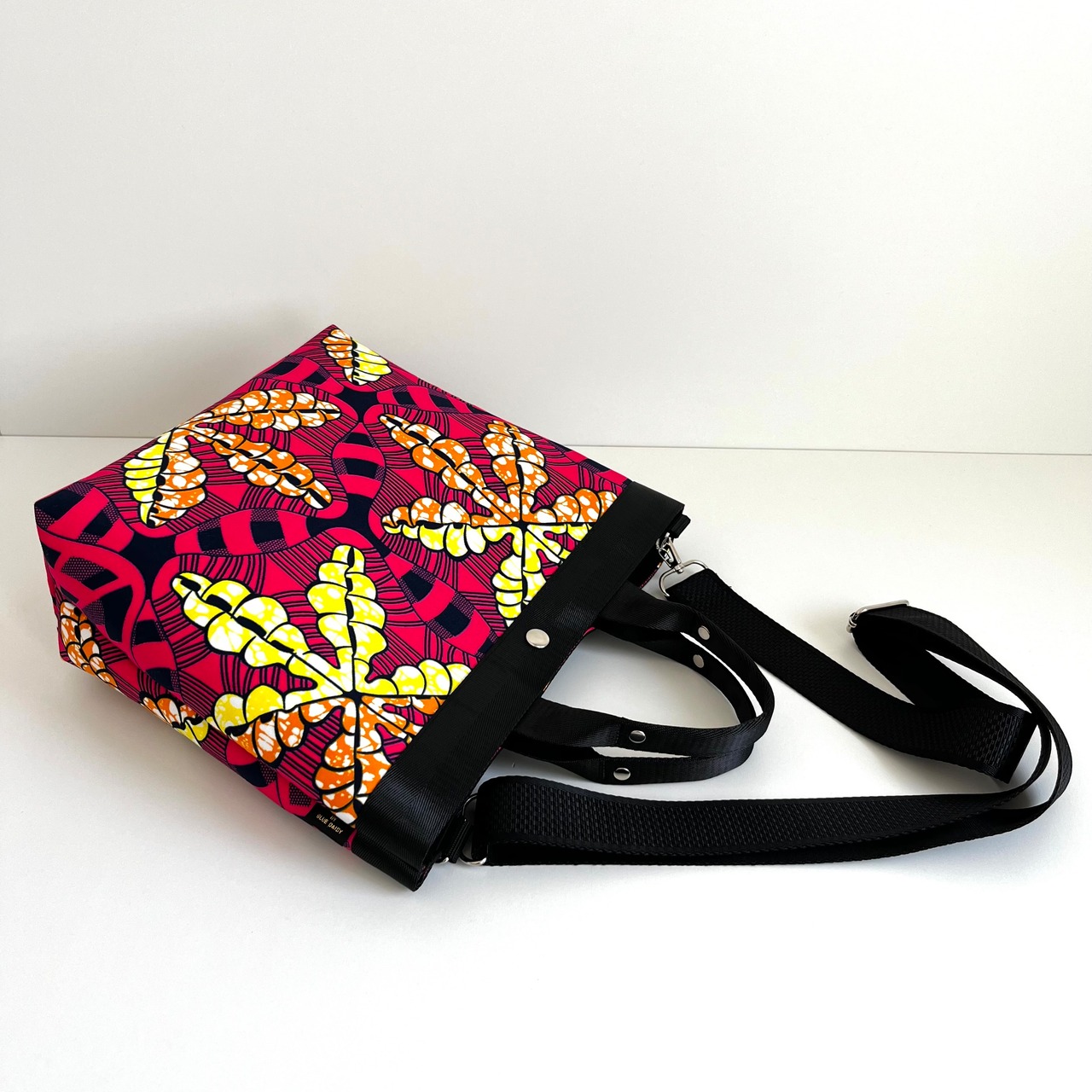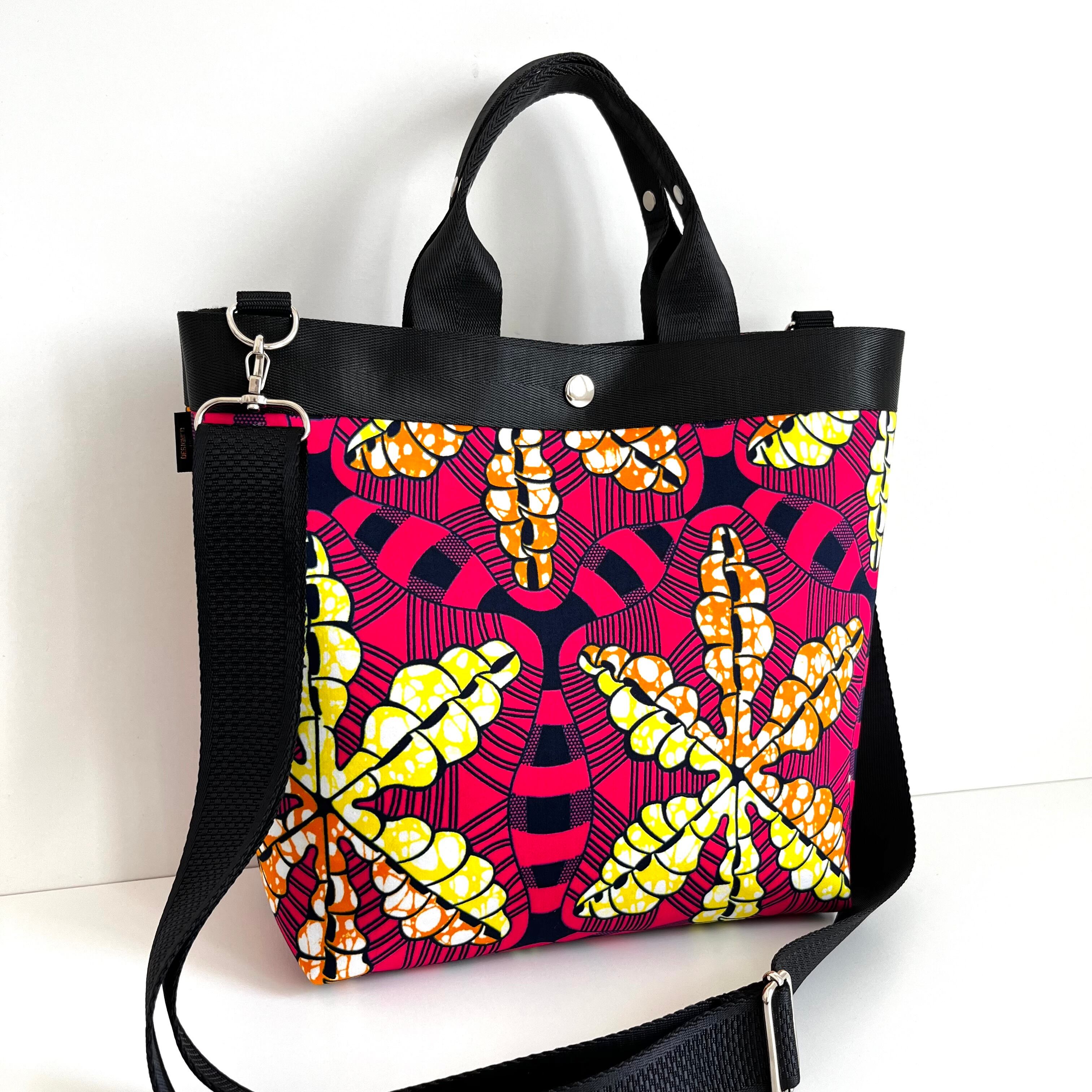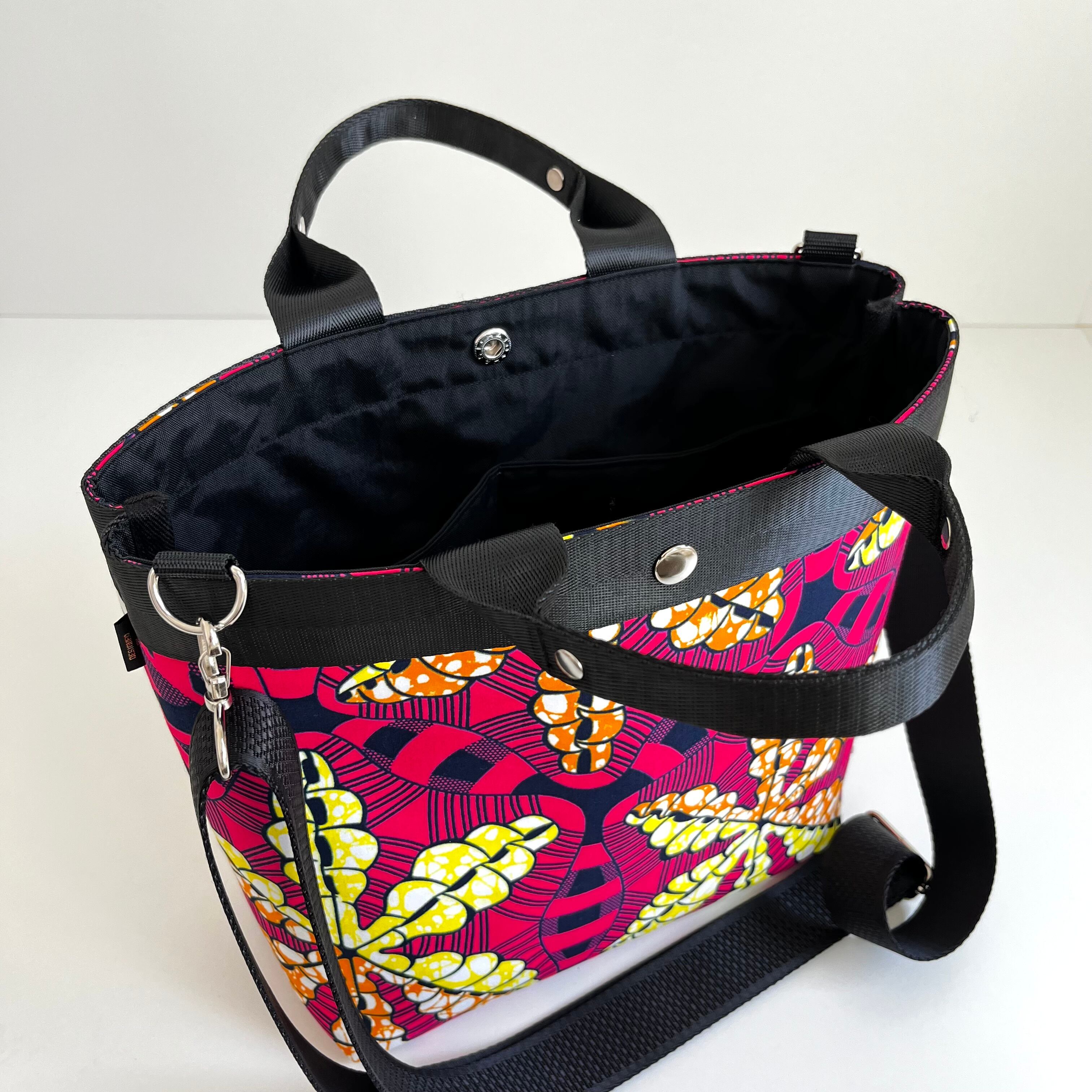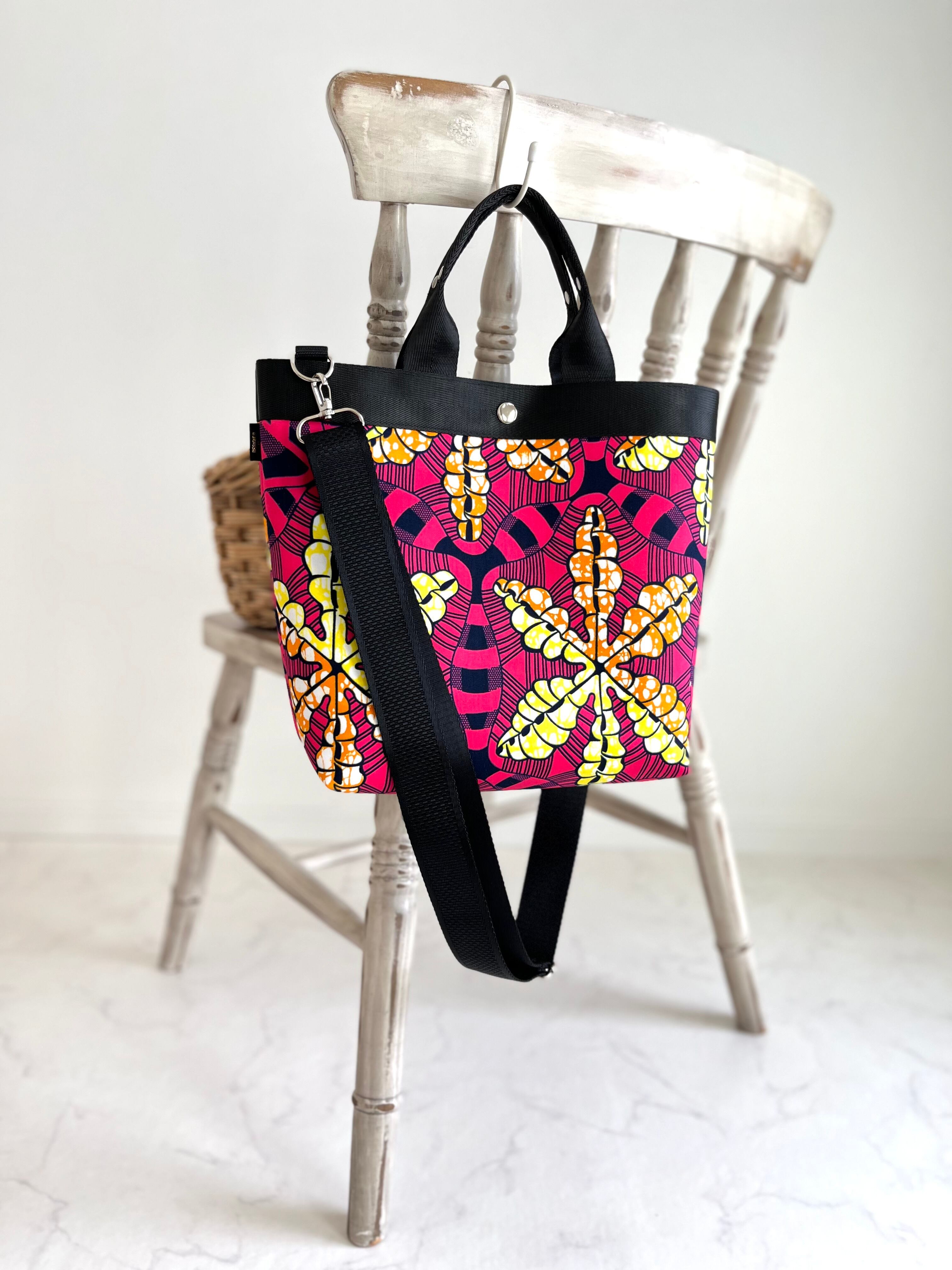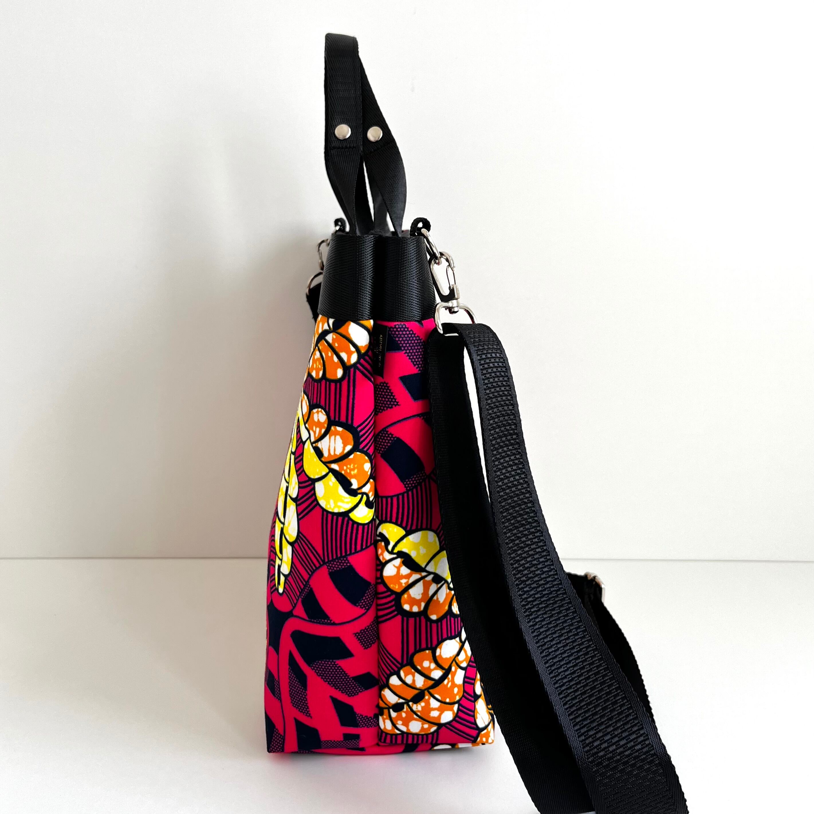 2wey/ショルダー Blackエッジバッグ Lサイズ イエローフラワー/ビビッドピンク