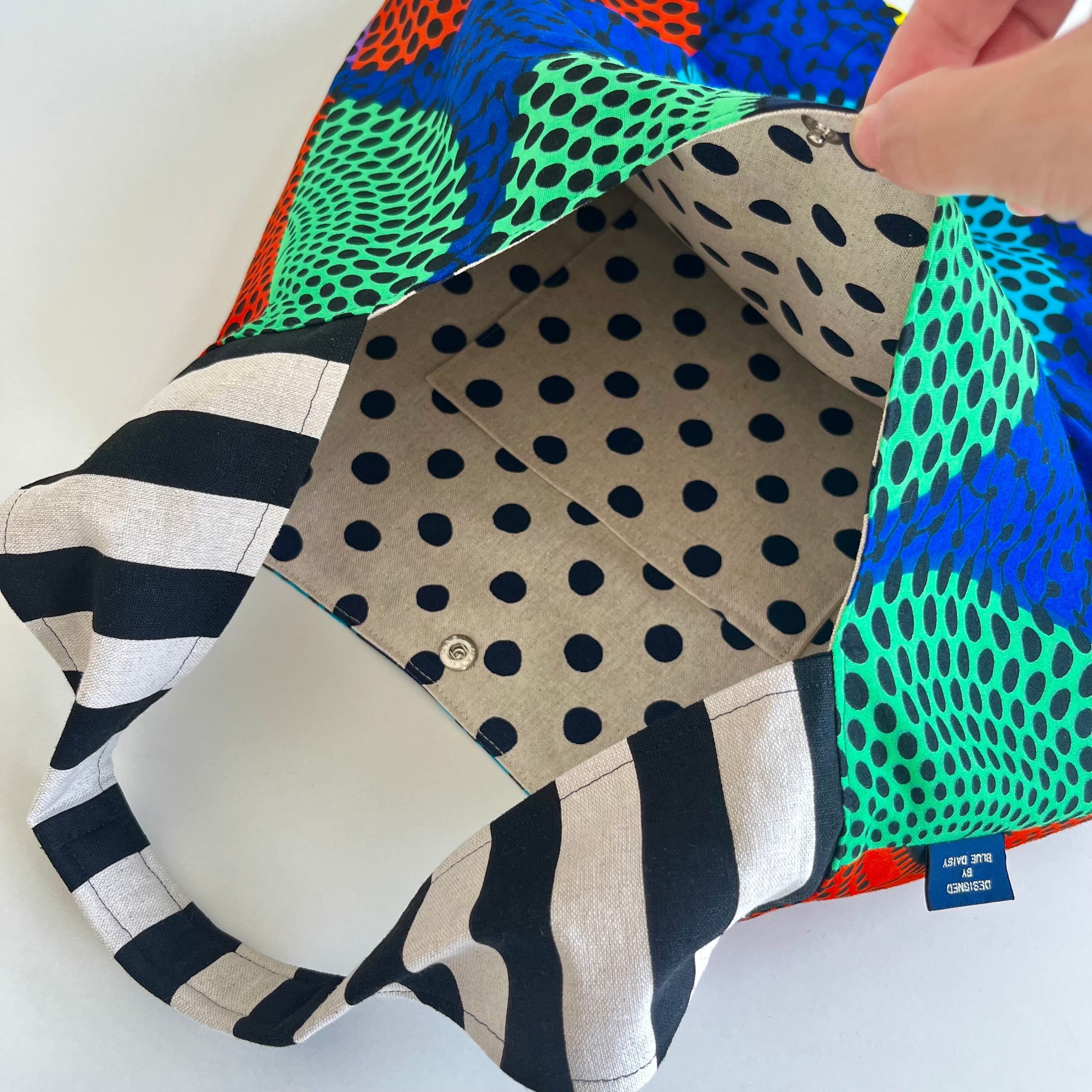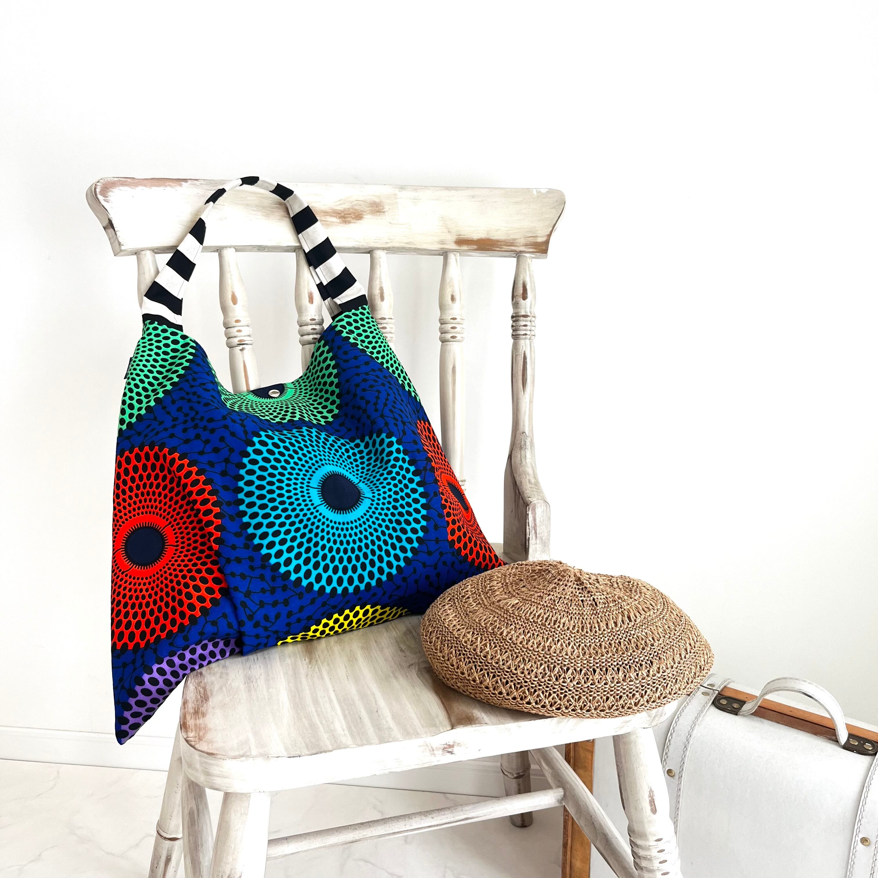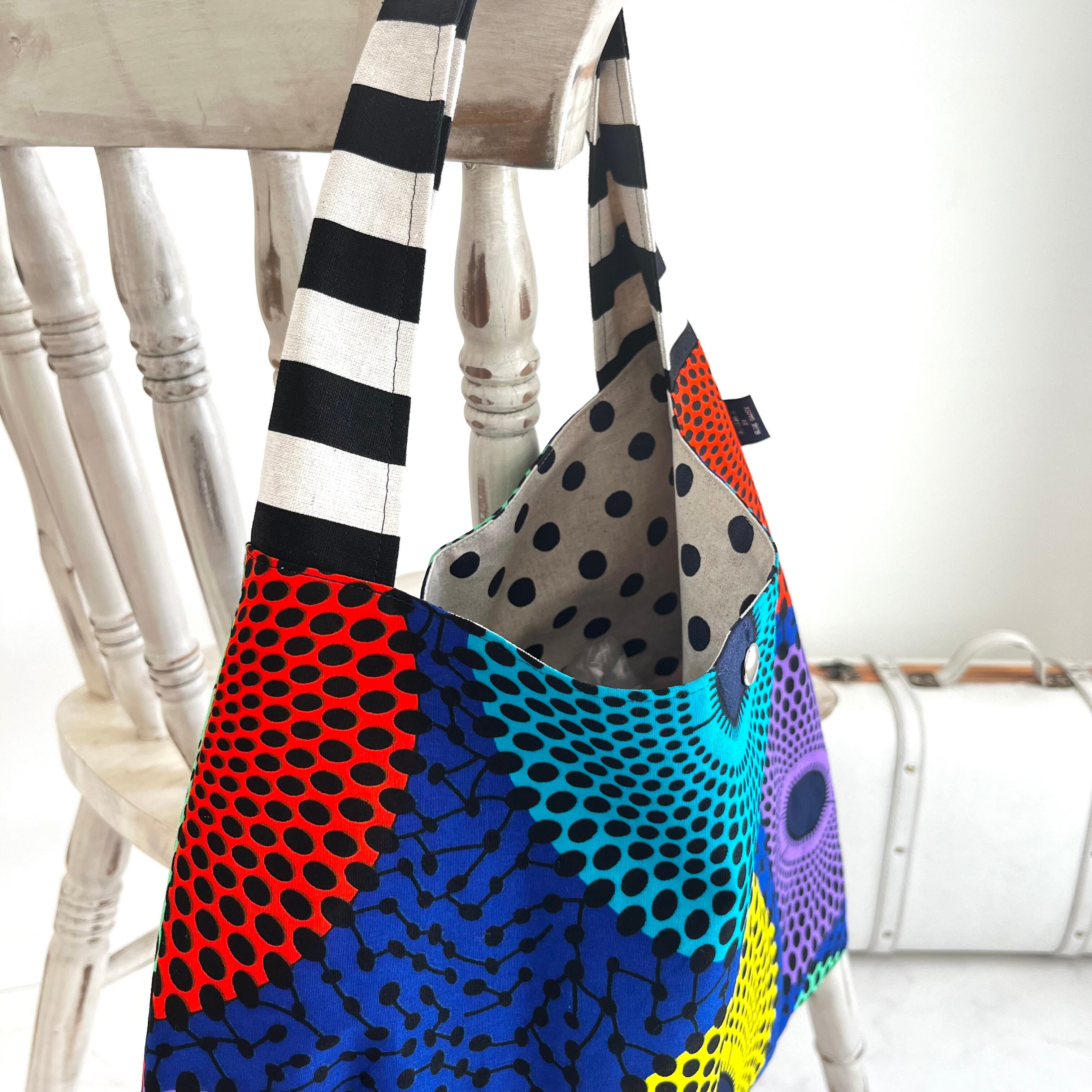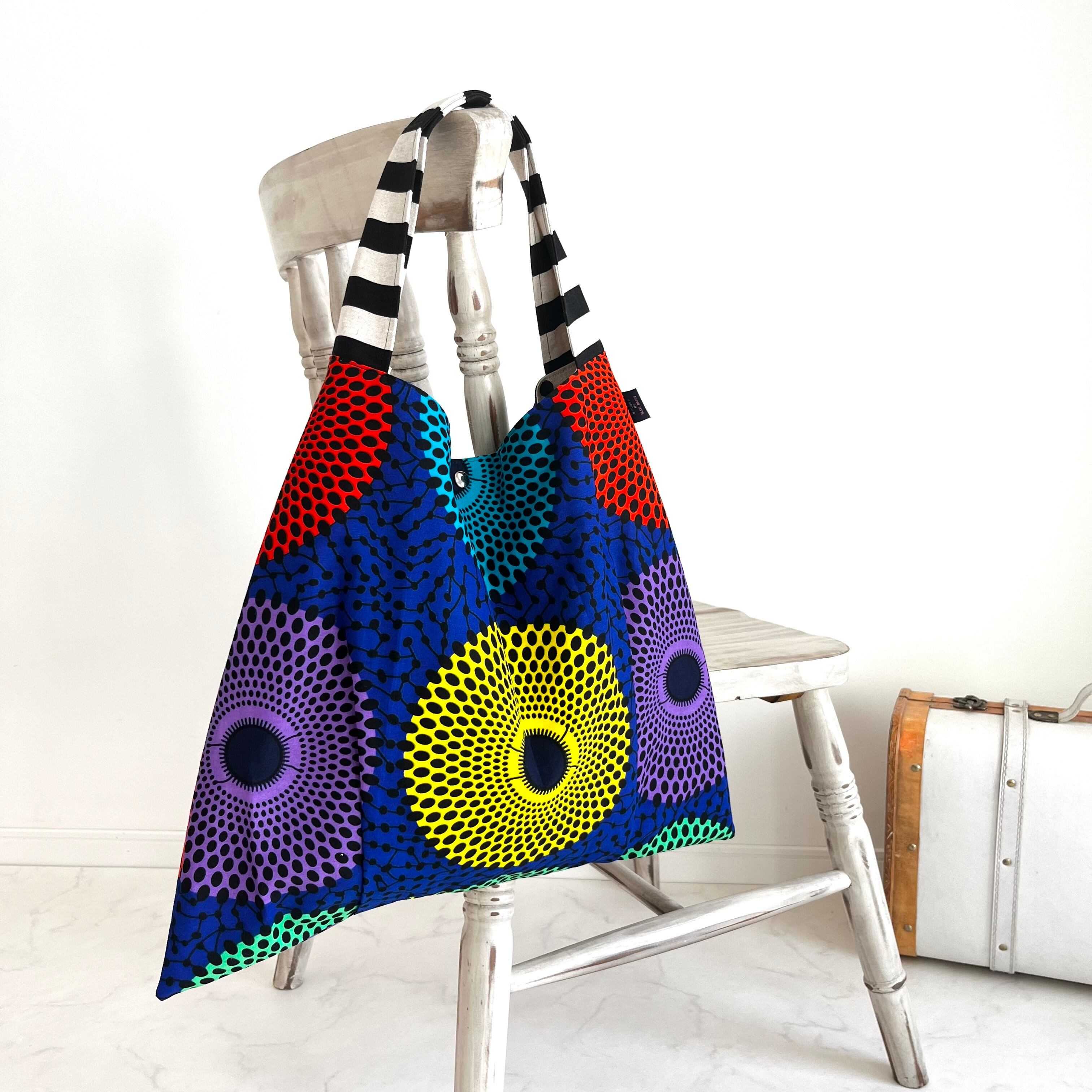 さんかくバッグ アフリカ布 水紋柄/ブルー×マルチカラー