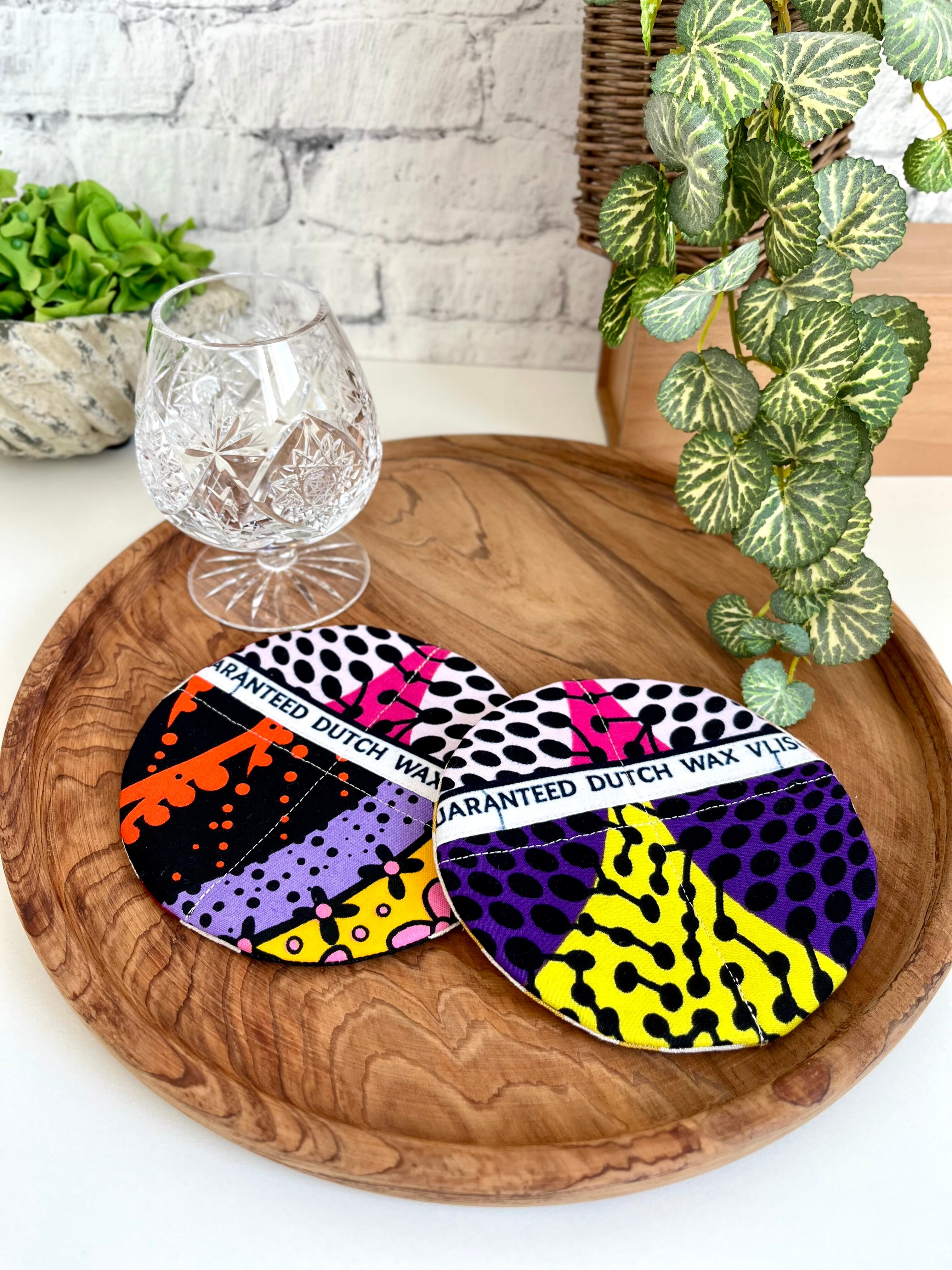 アフリカ布 パッチワークコースター 2枚セット ビビッドカラーセット