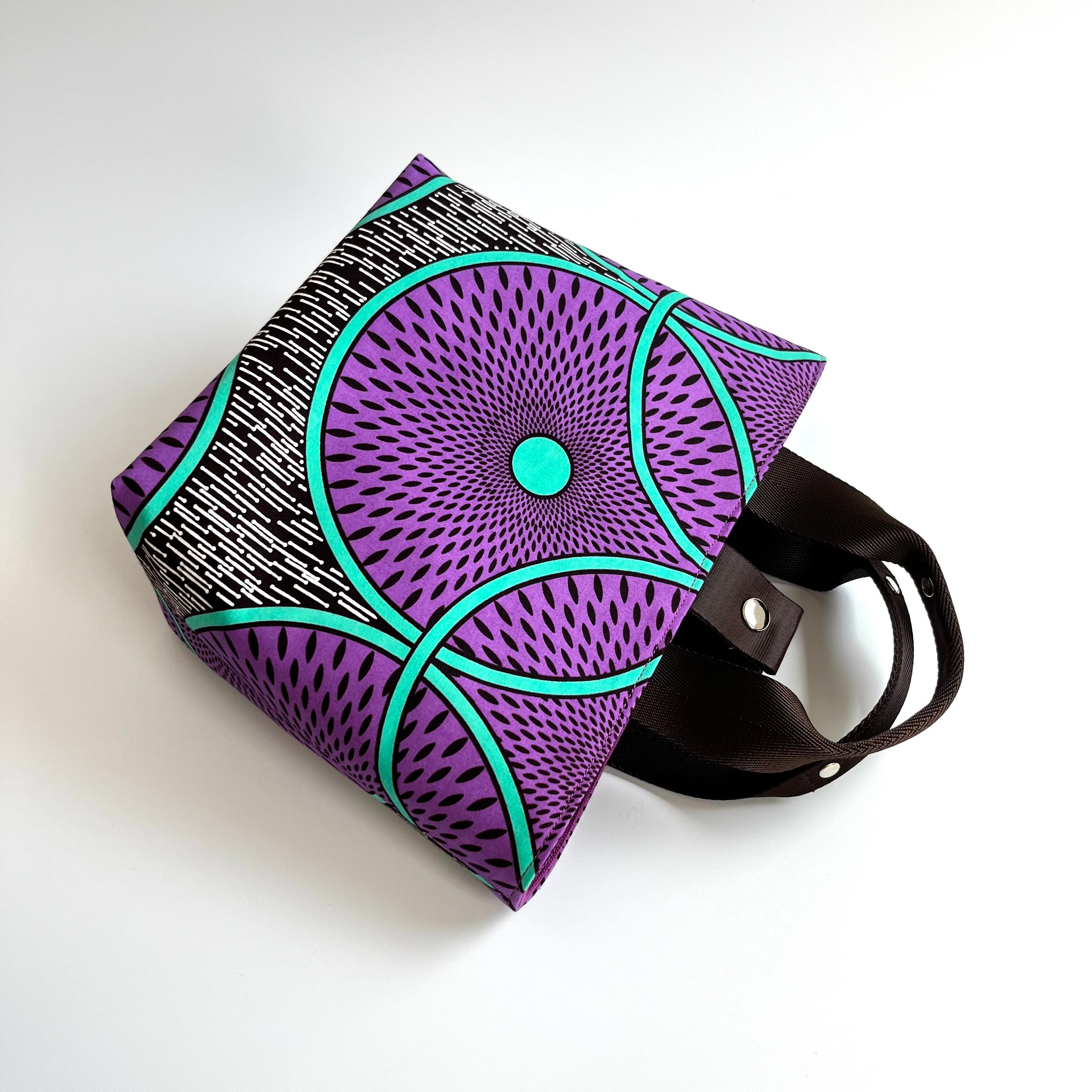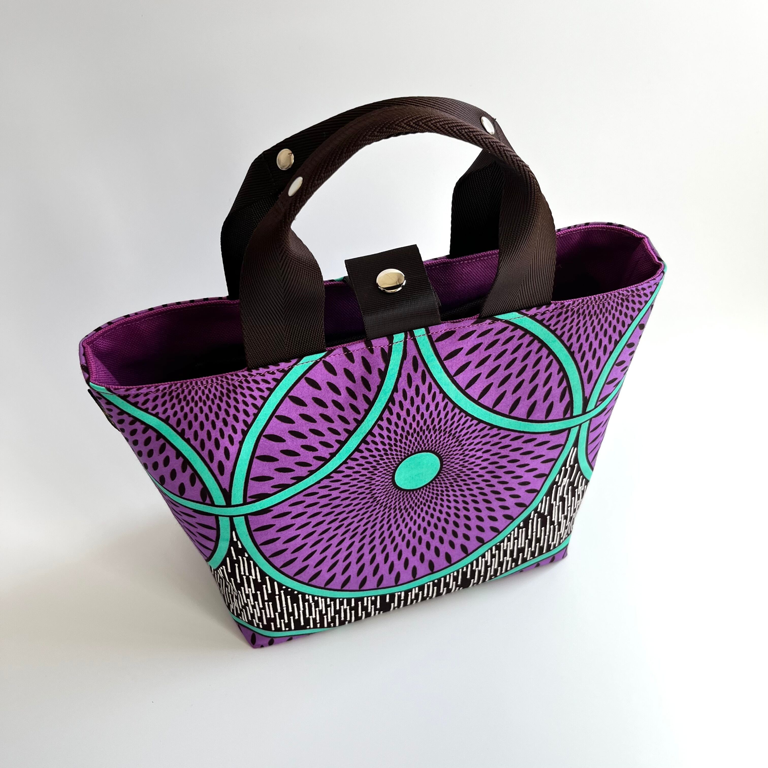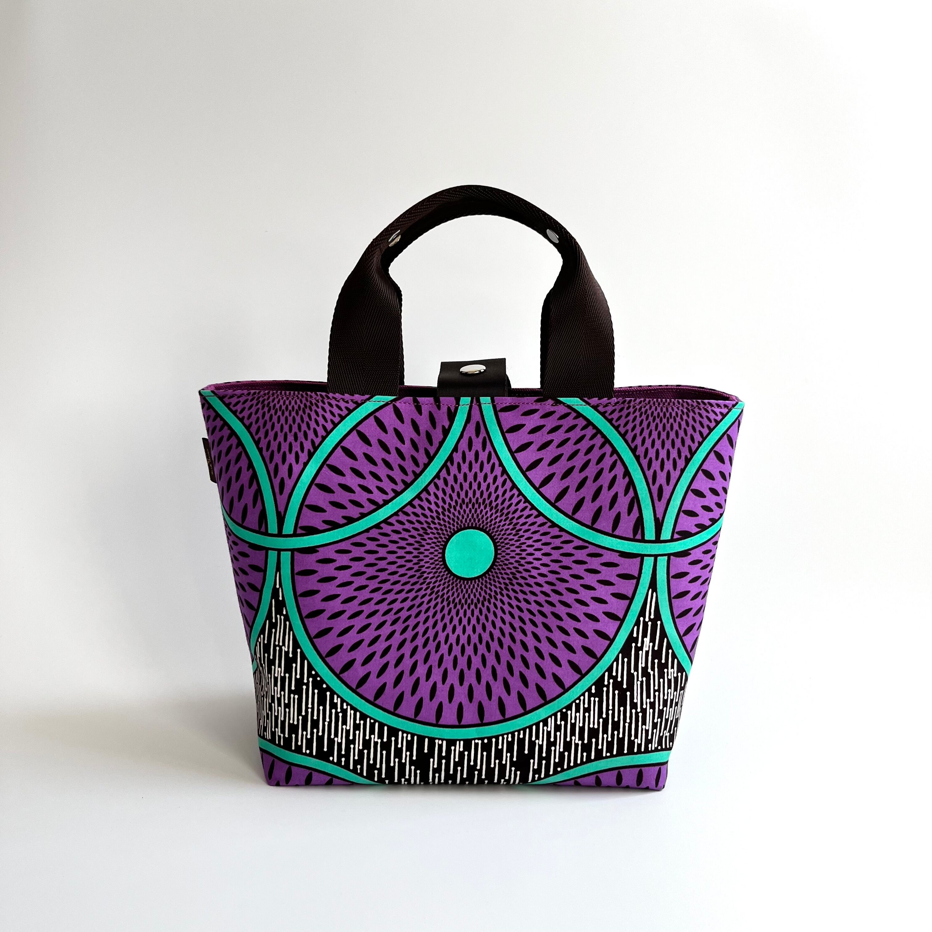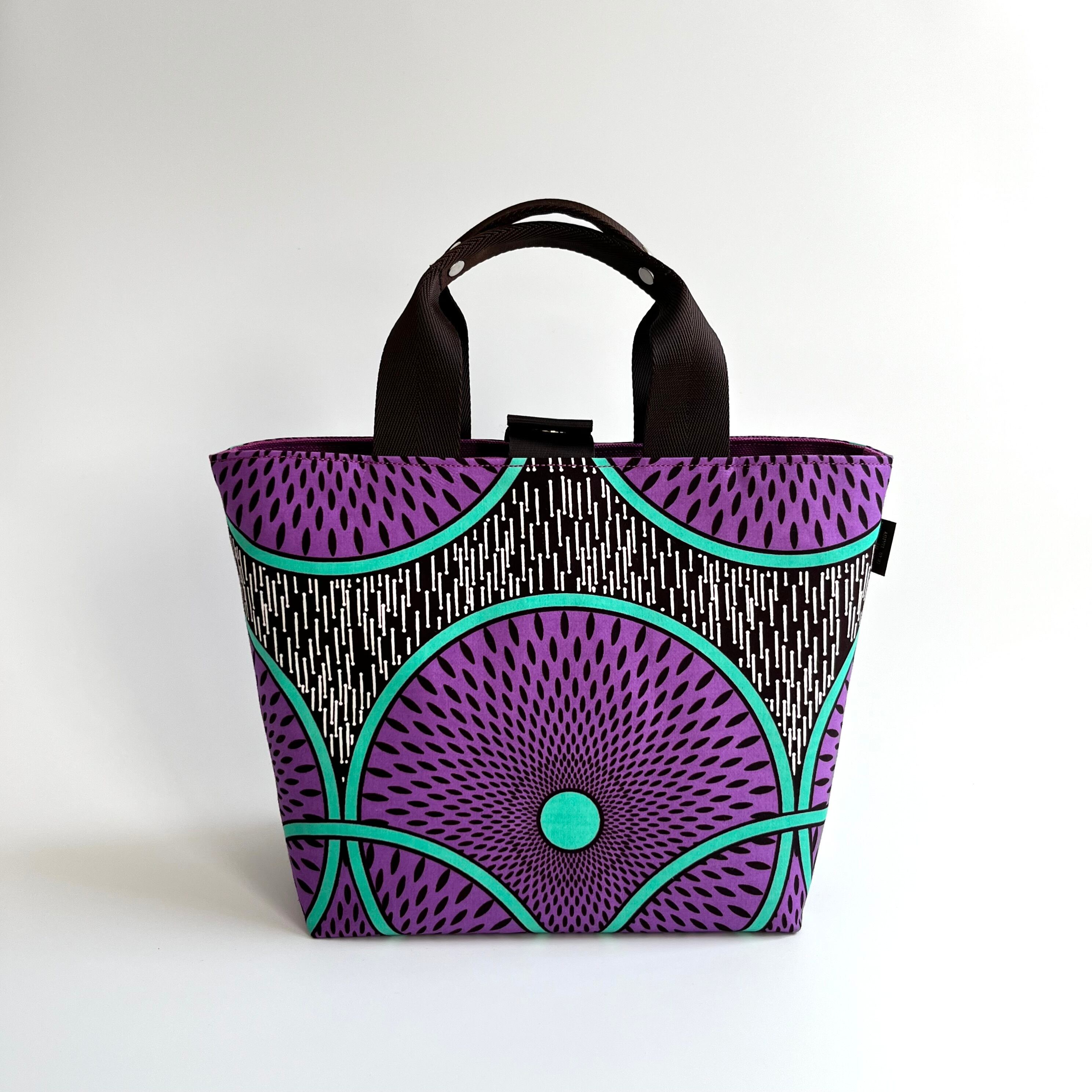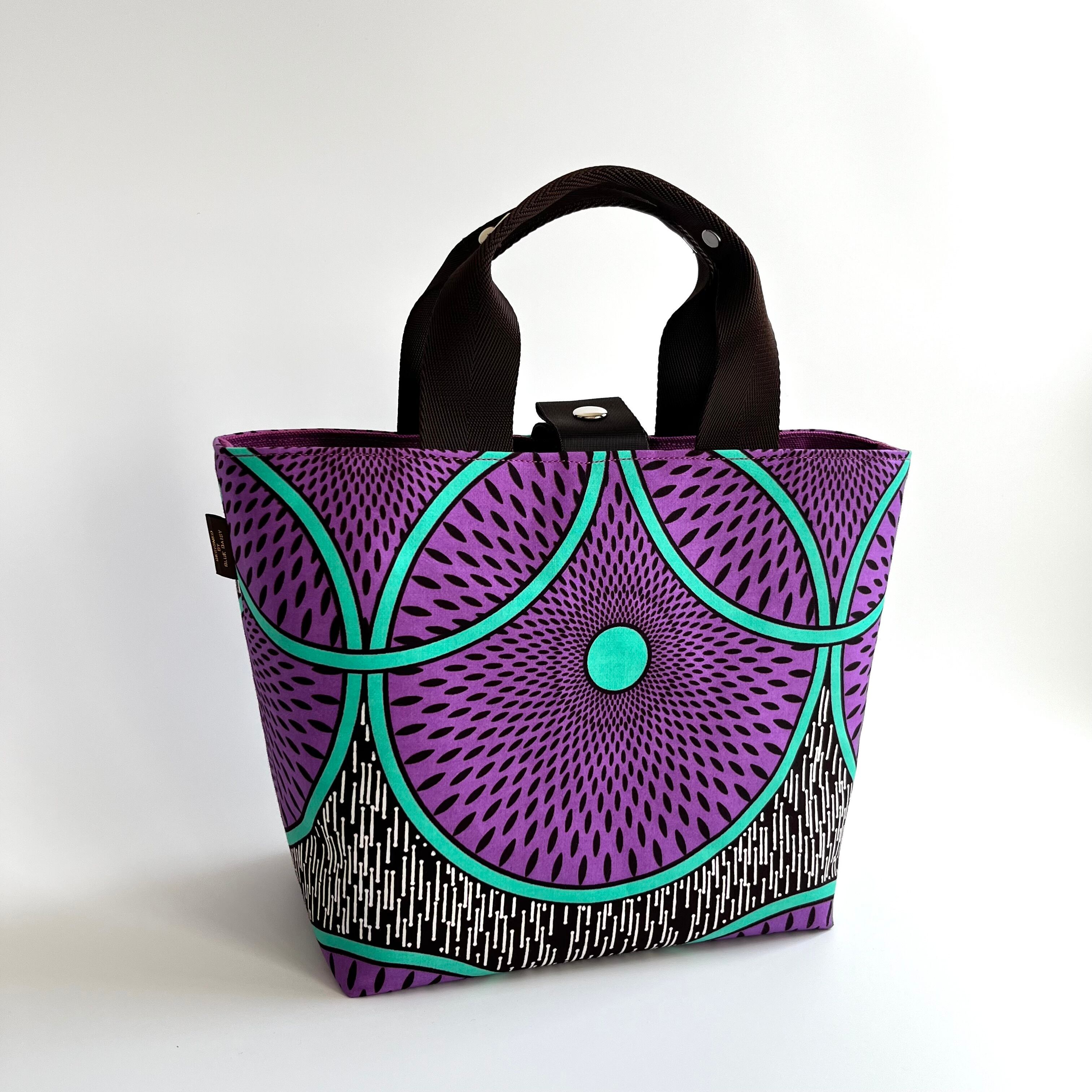 アフリカ布 ファーストバッグM 重なる円模様/パープル