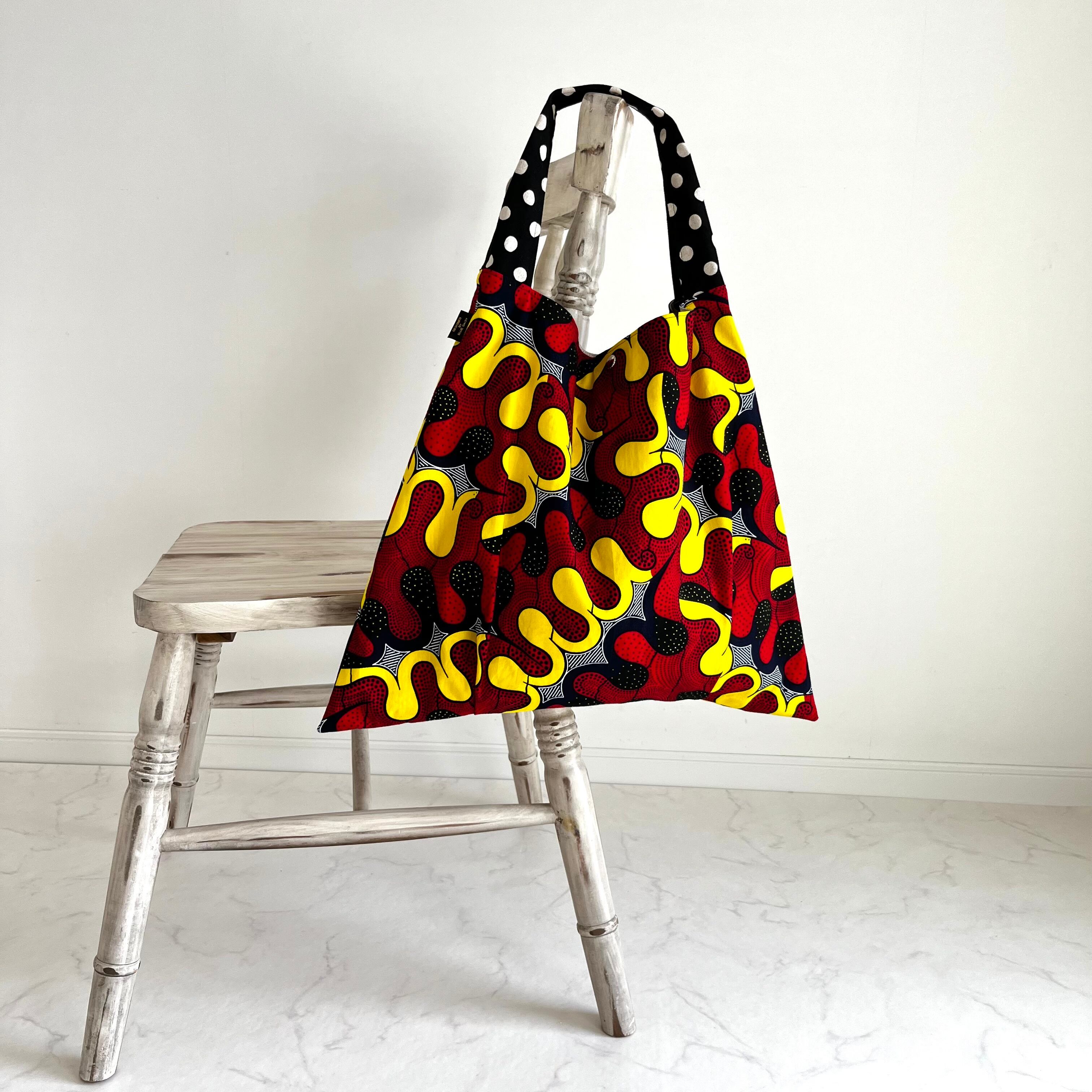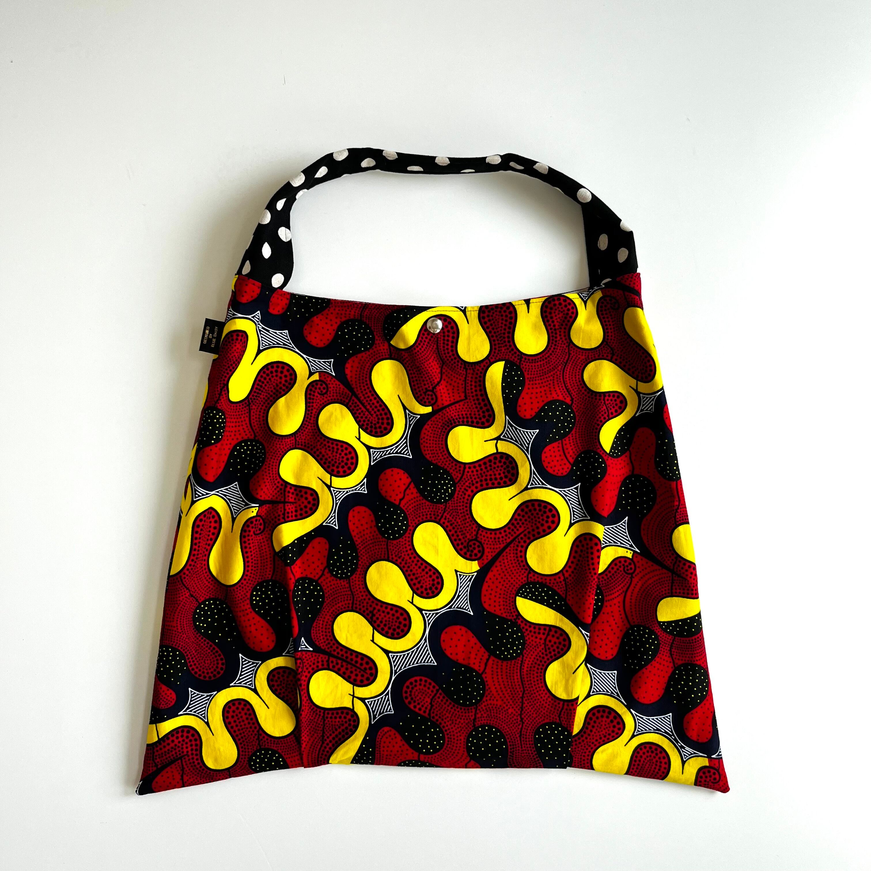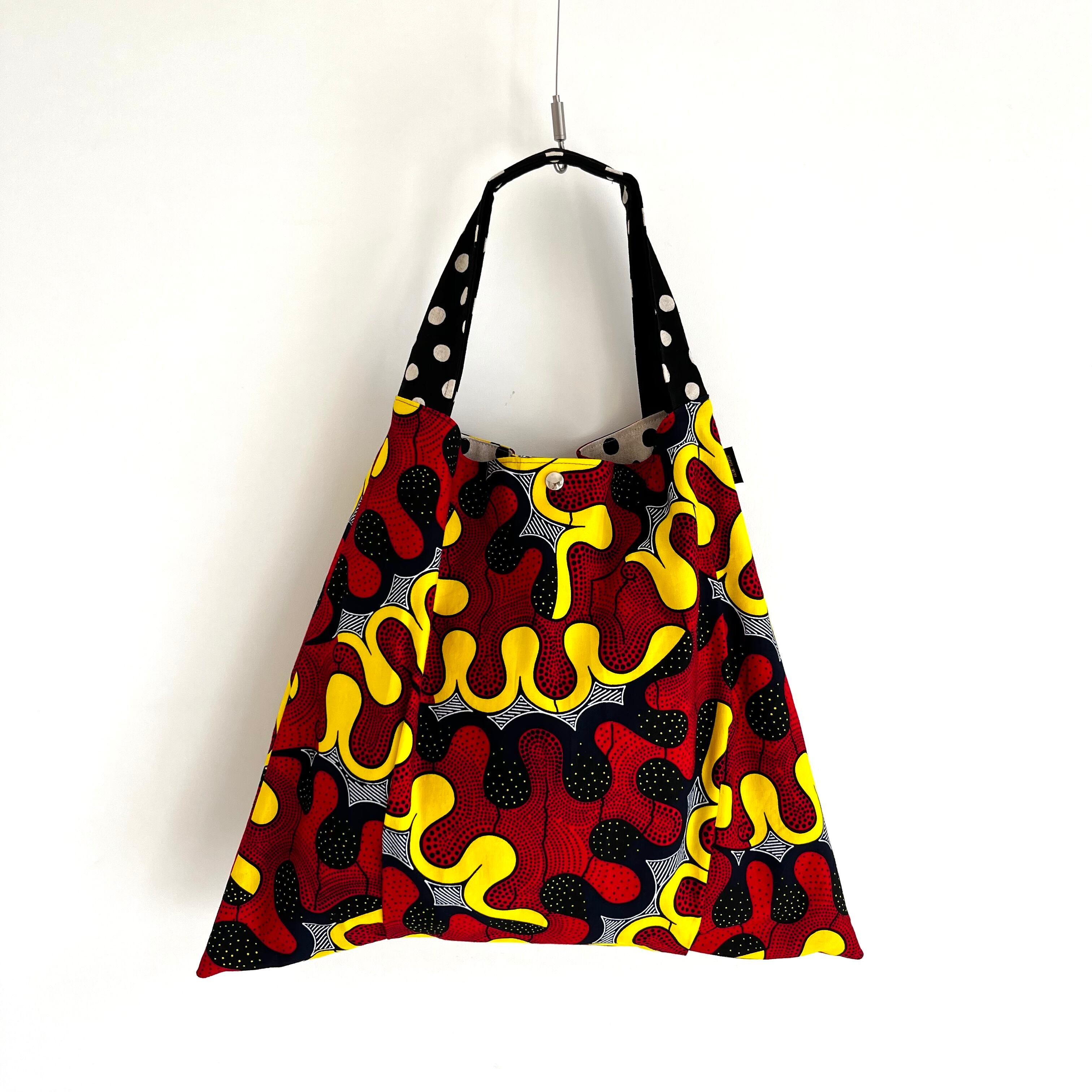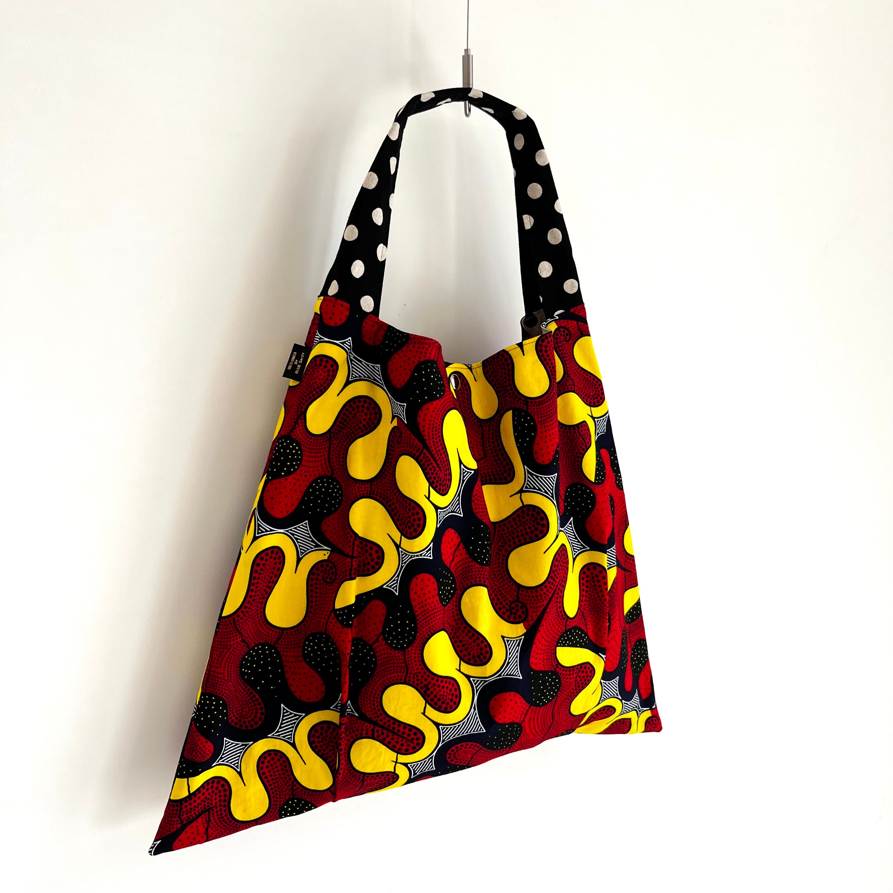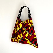 さんかくバッグ アフリカ布 にょろにょろ/レッド系
