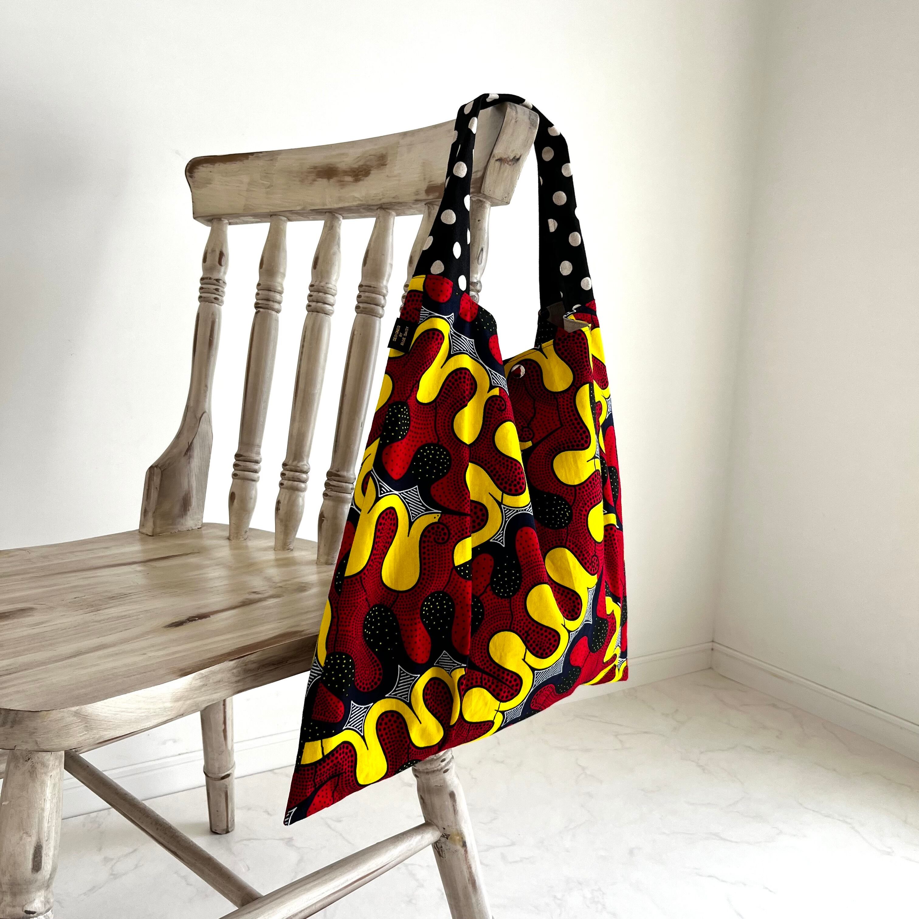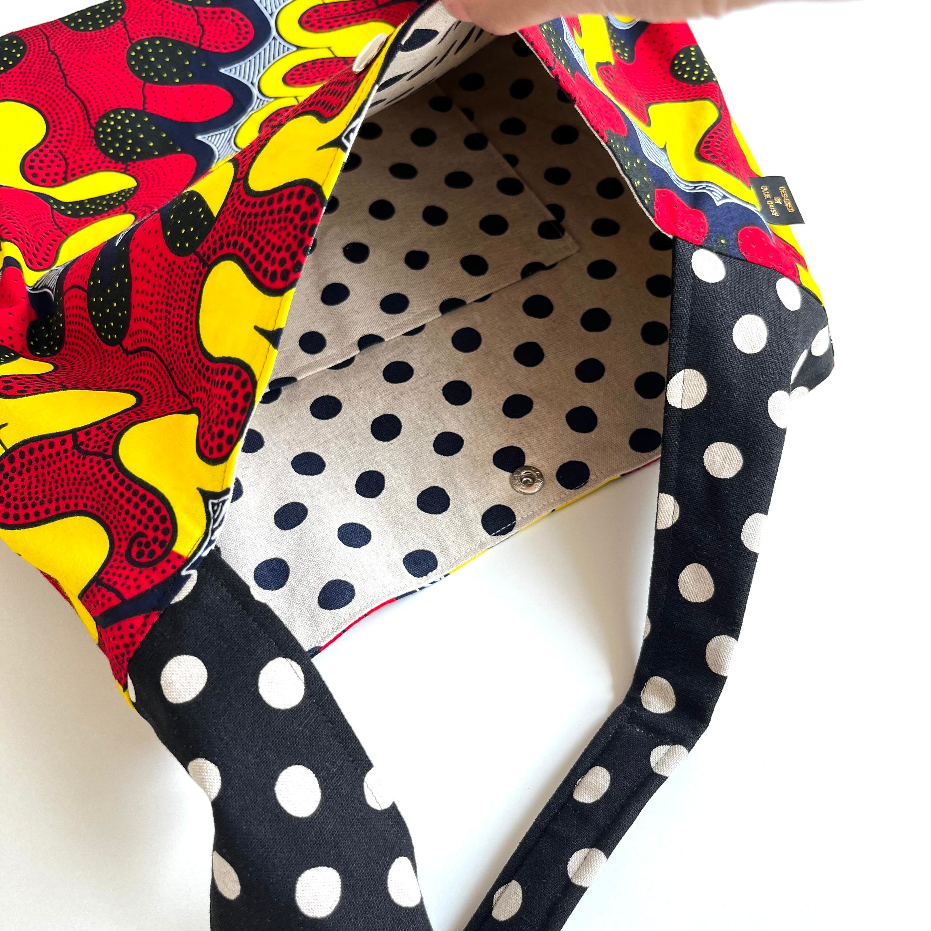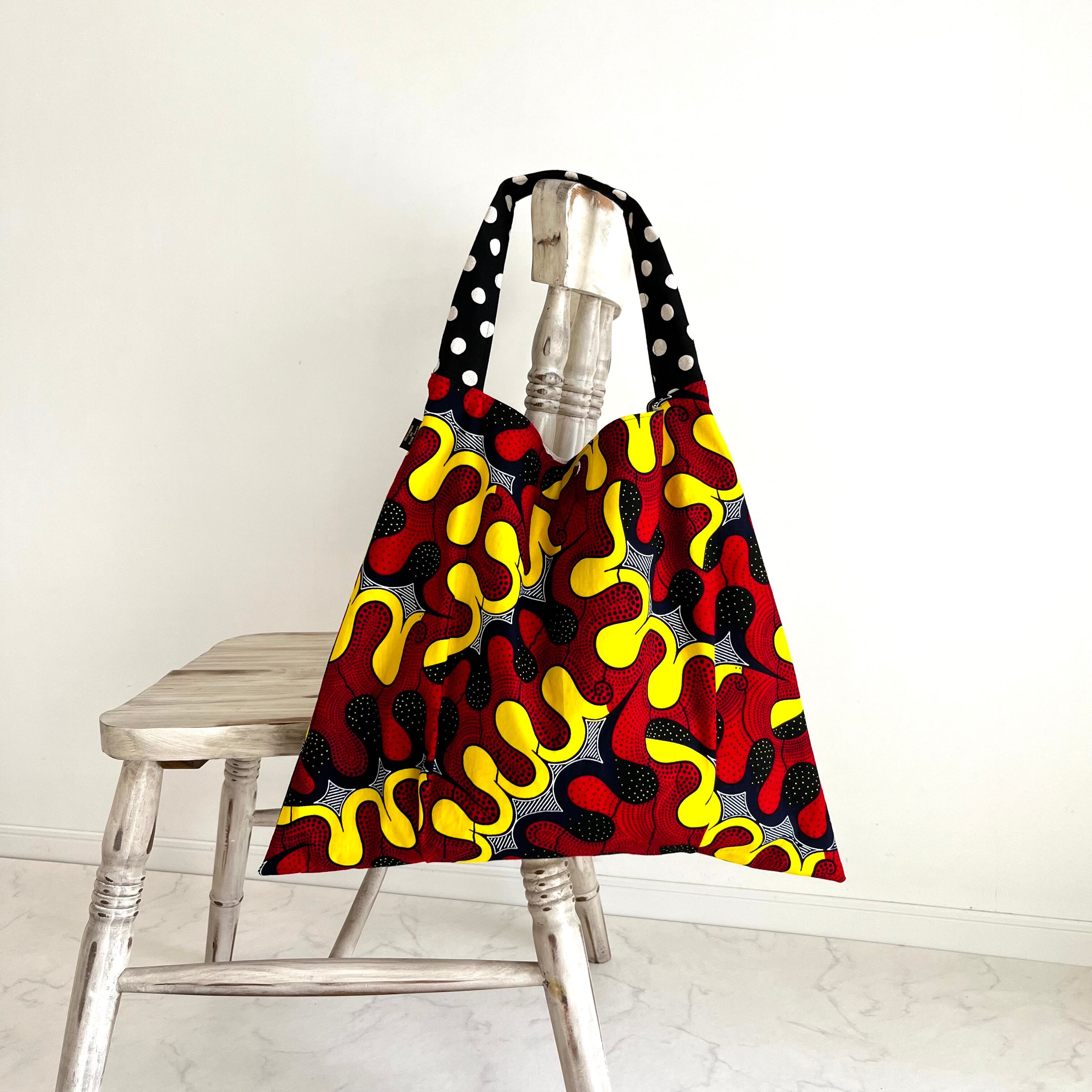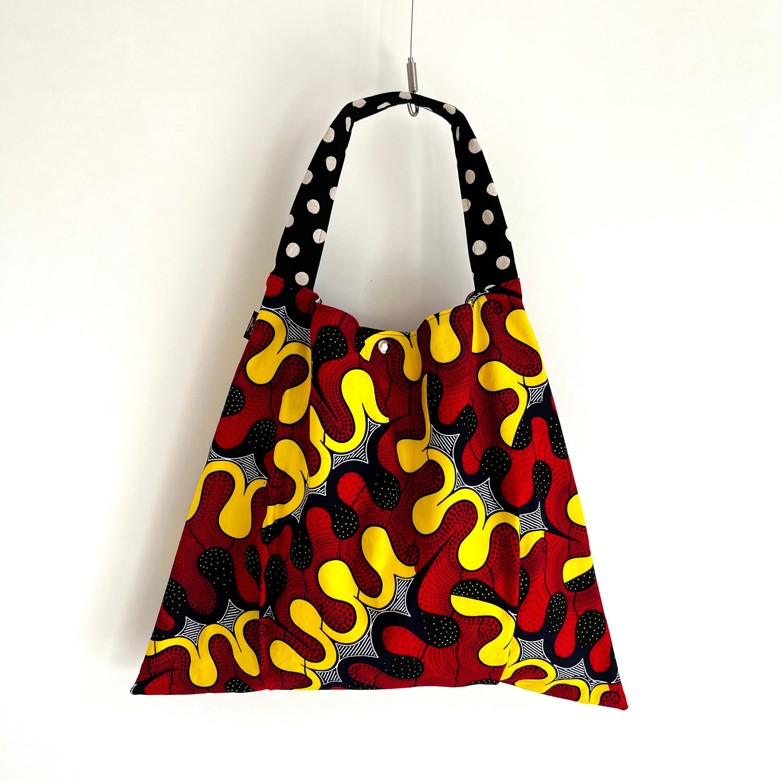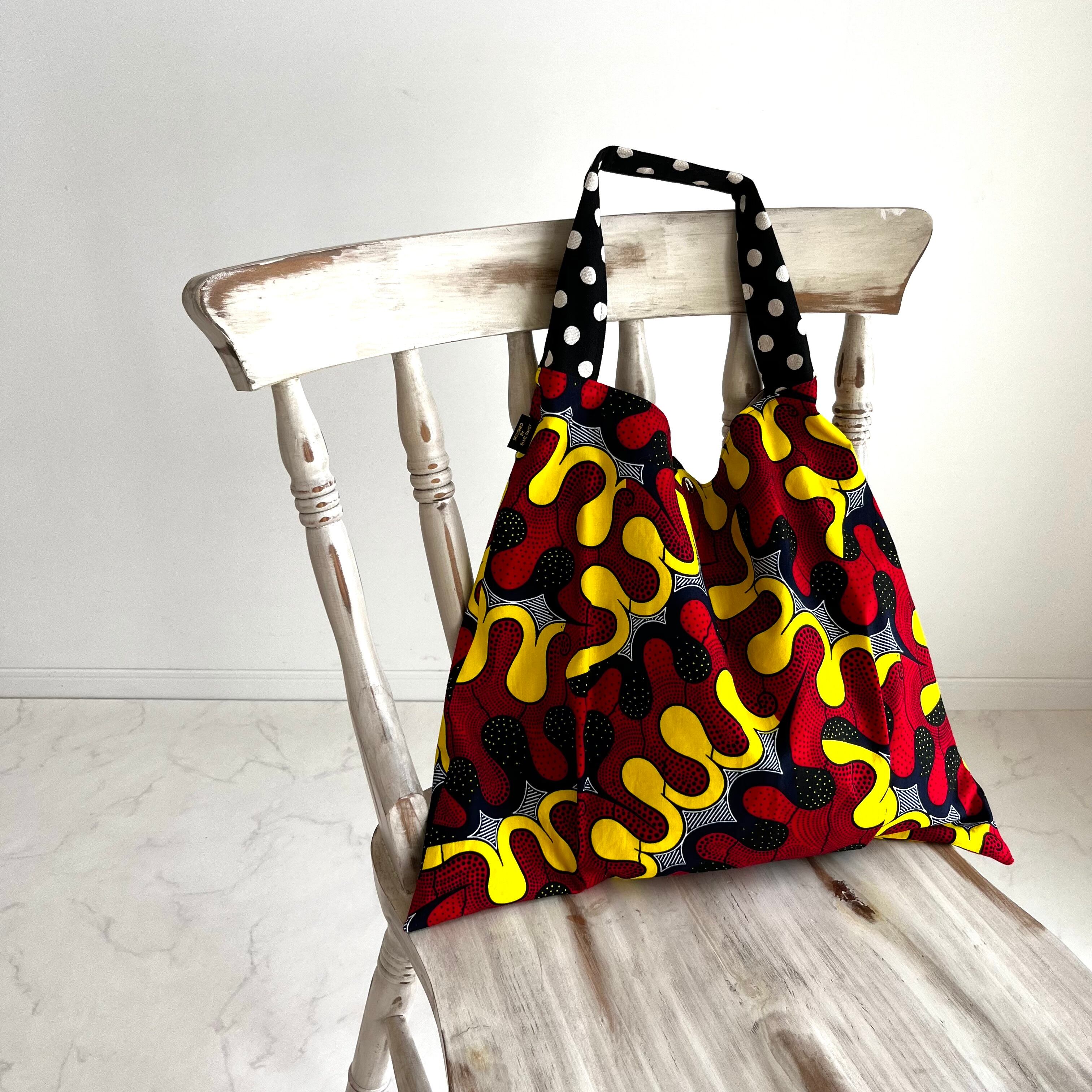 さんかくバッグ アフリカ布 にょろにょろ/レッド系