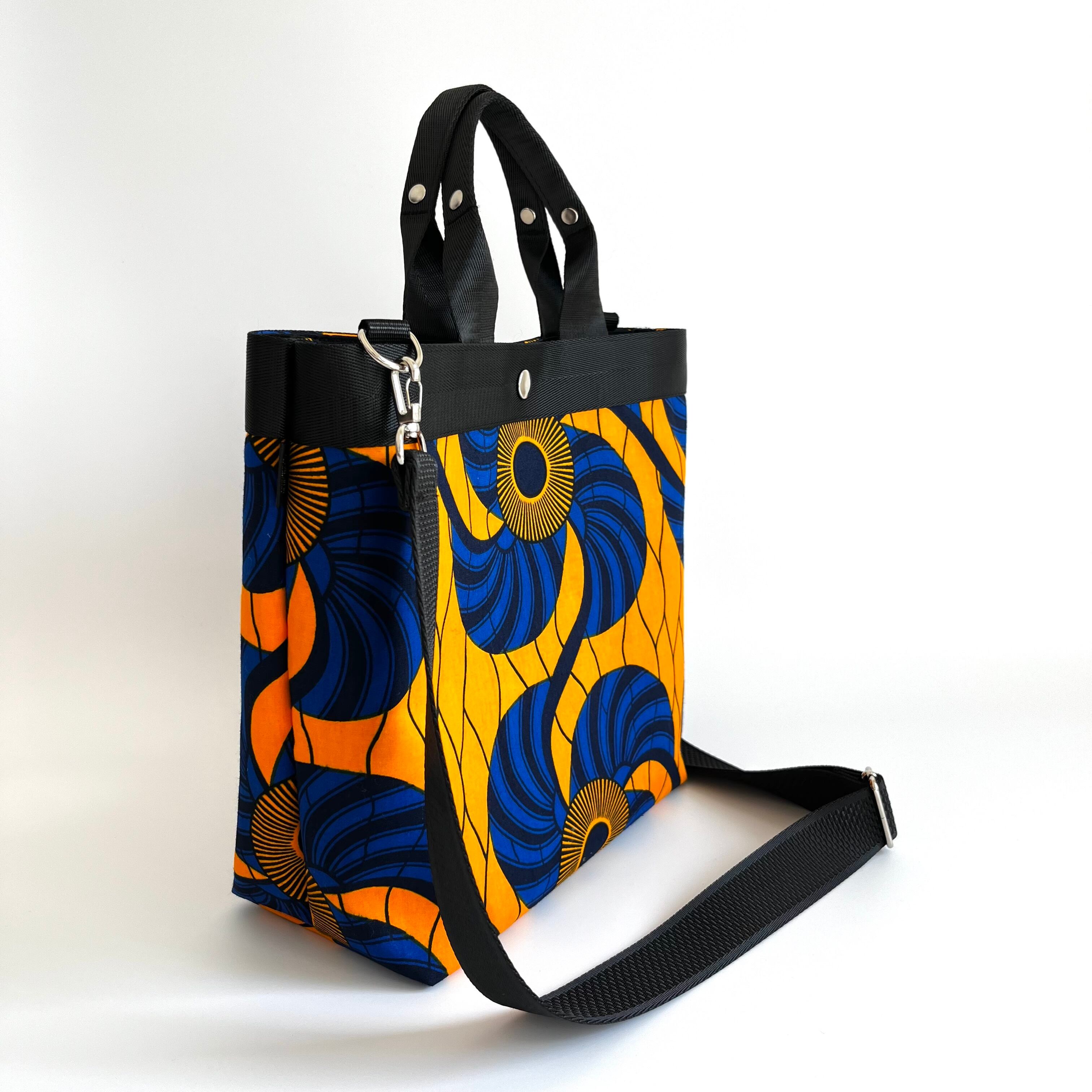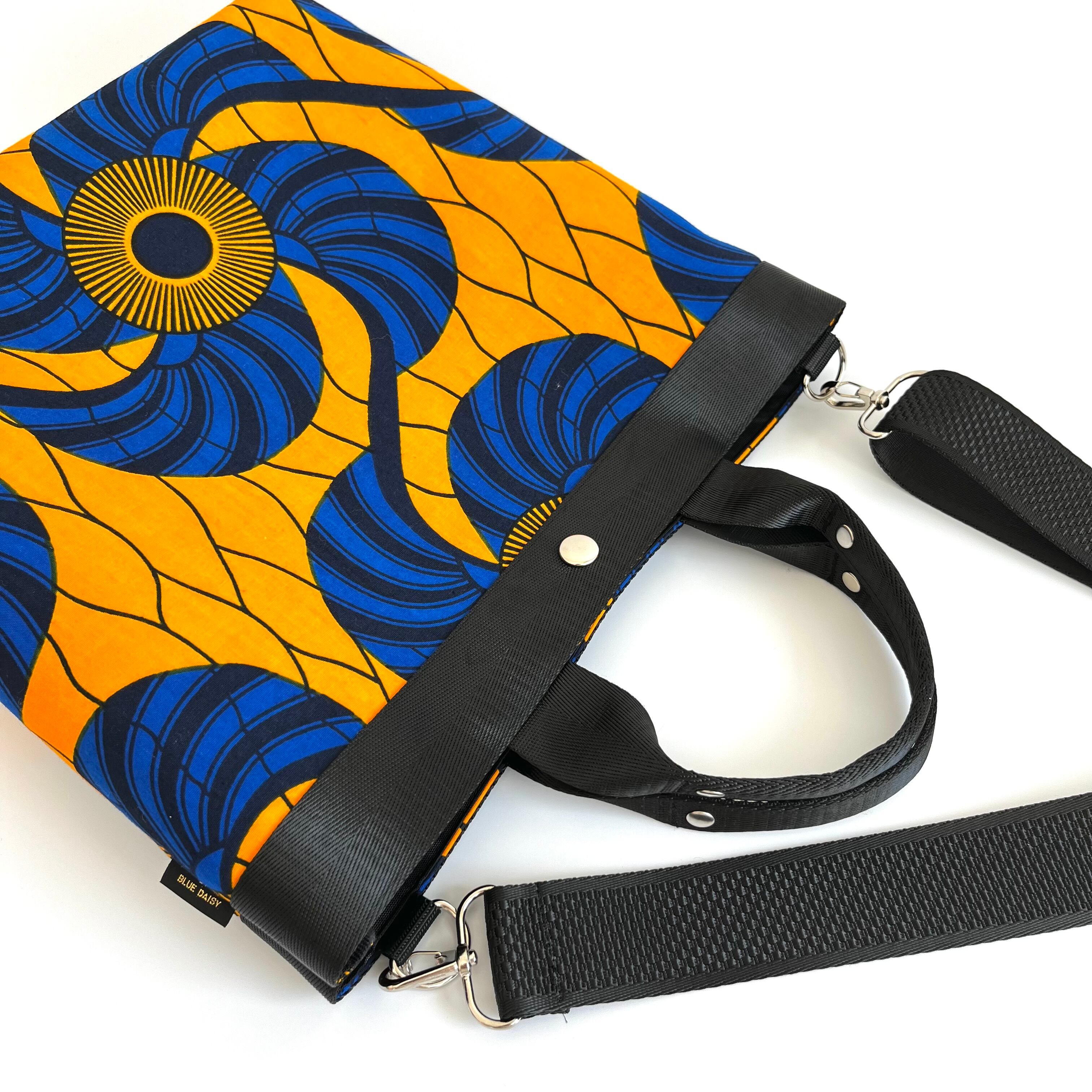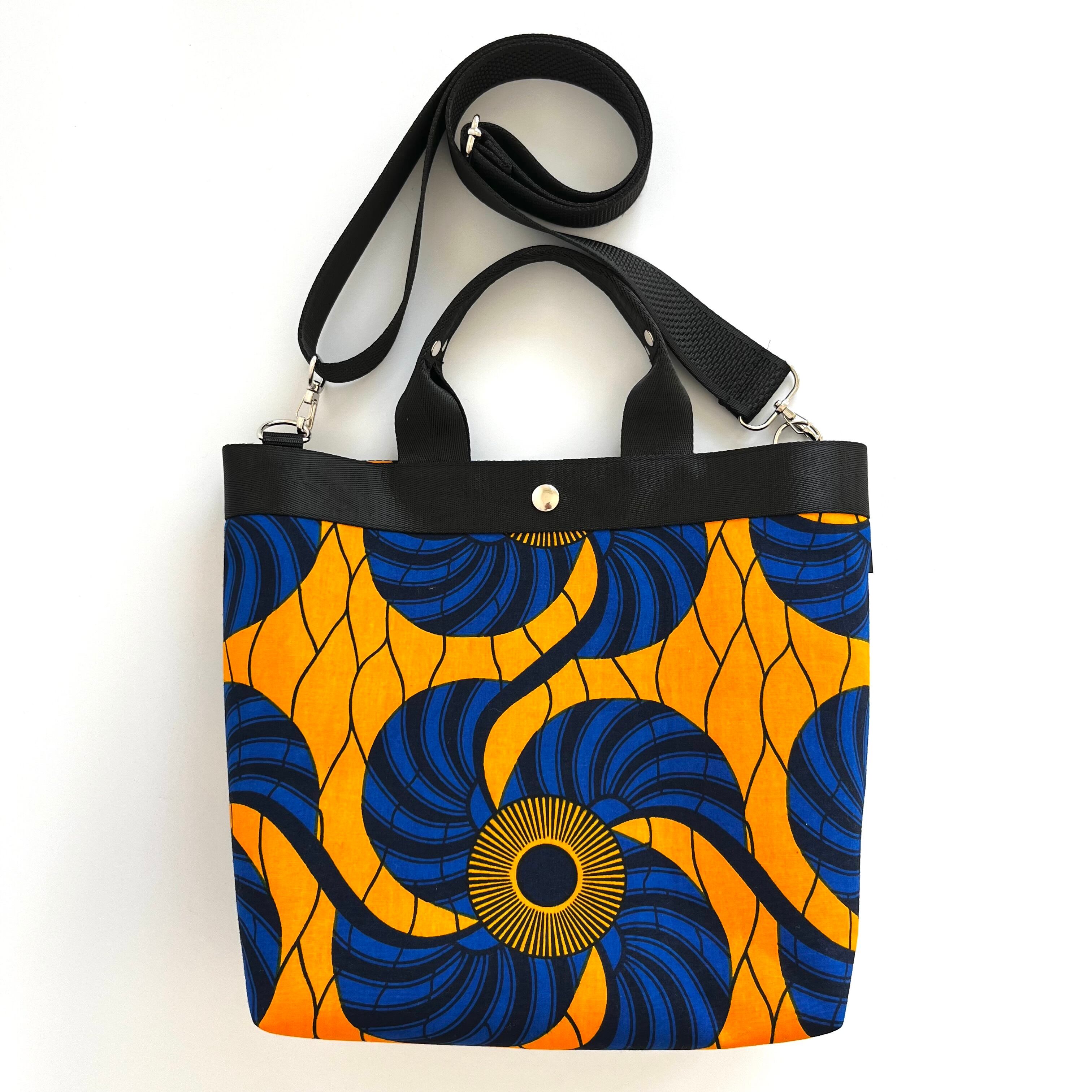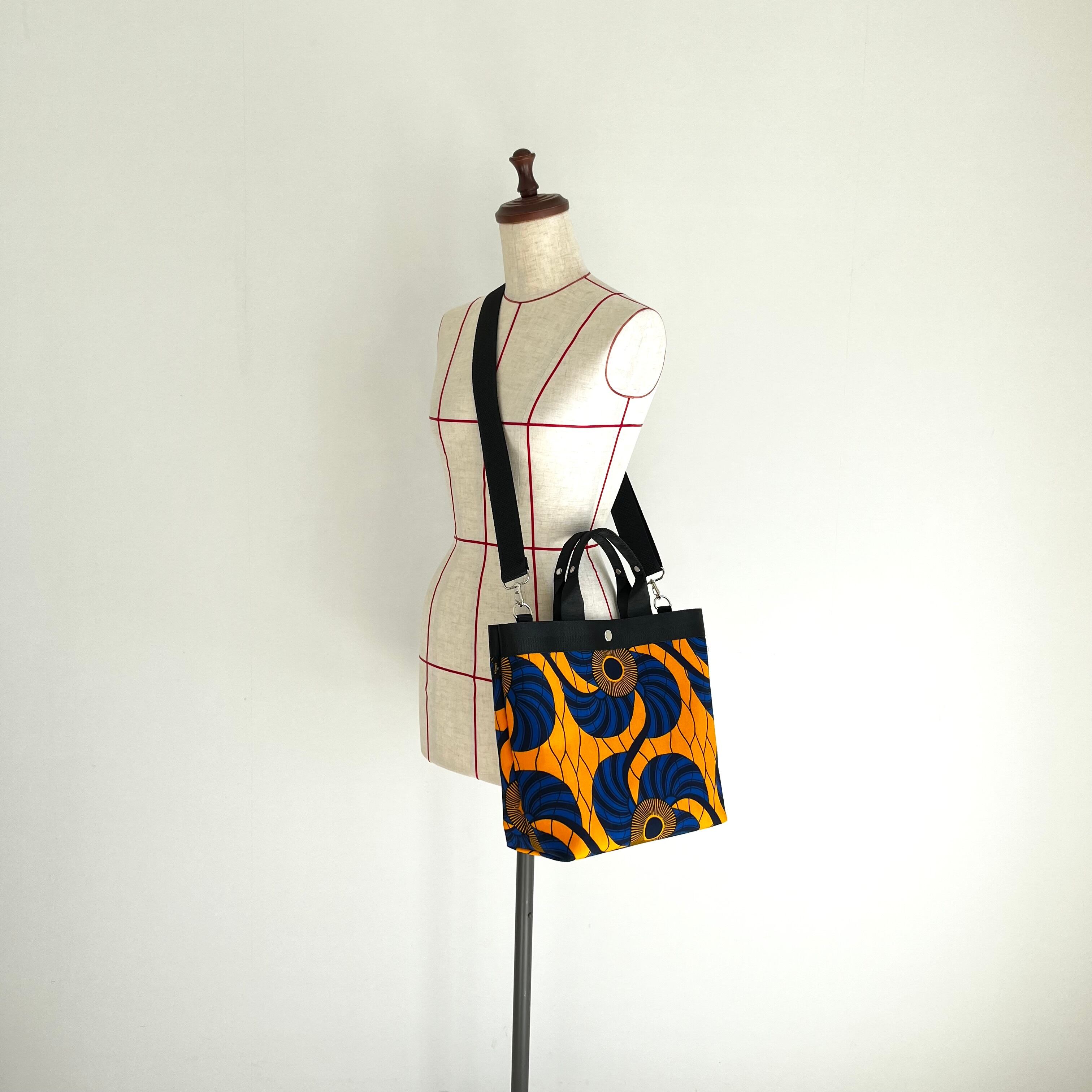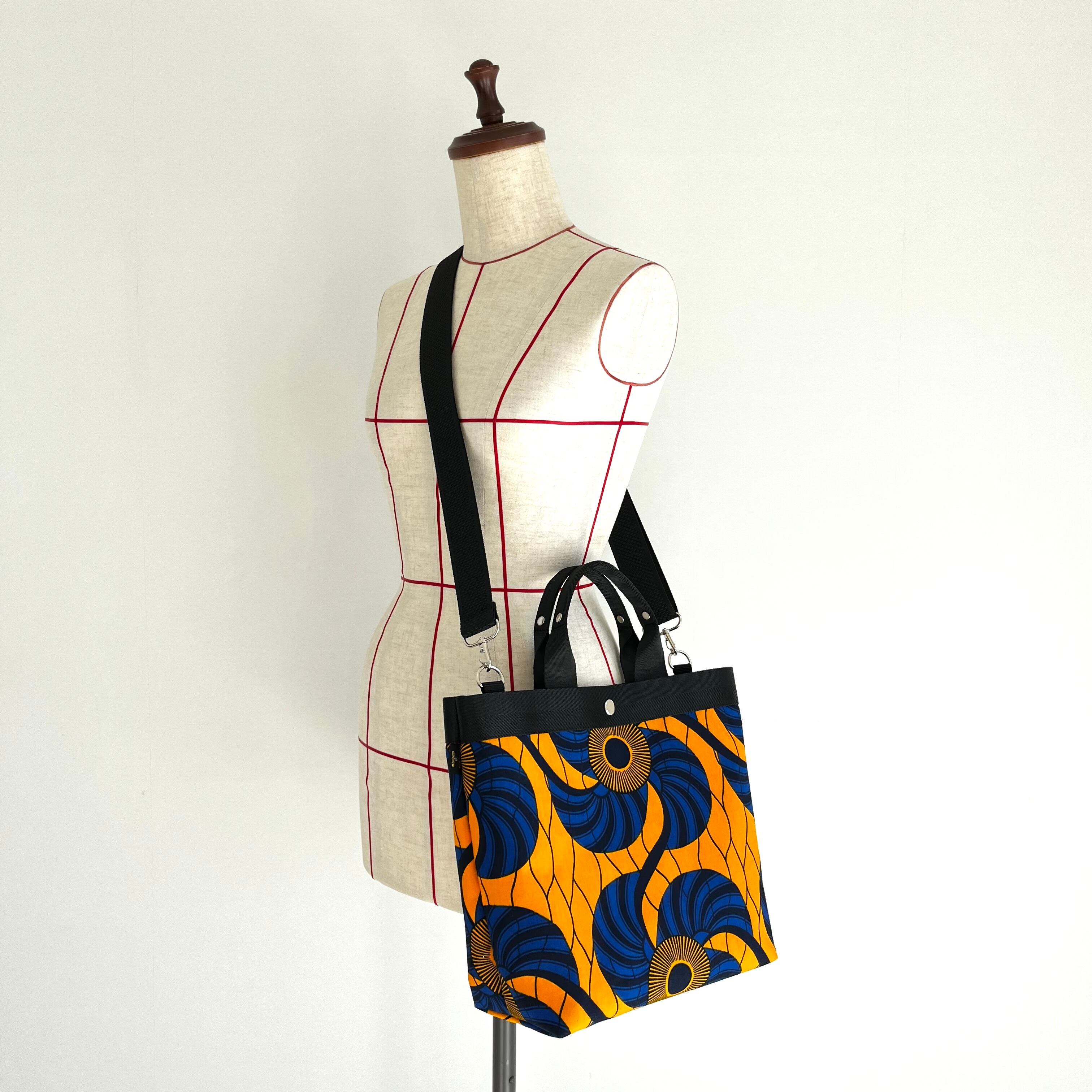 2wey/ショルダー BlackエッジバッグLサイズ 風車/イエロー×ブルー