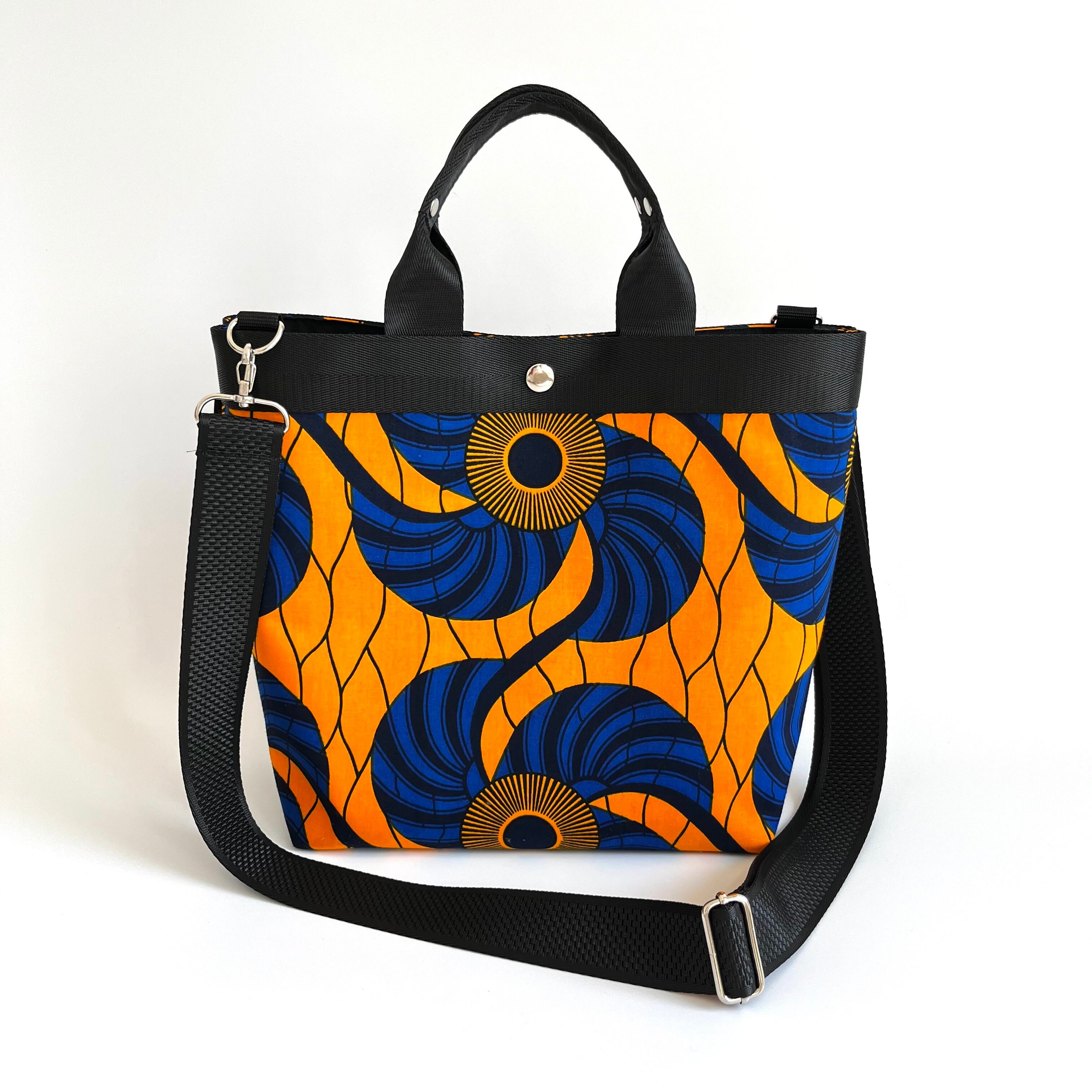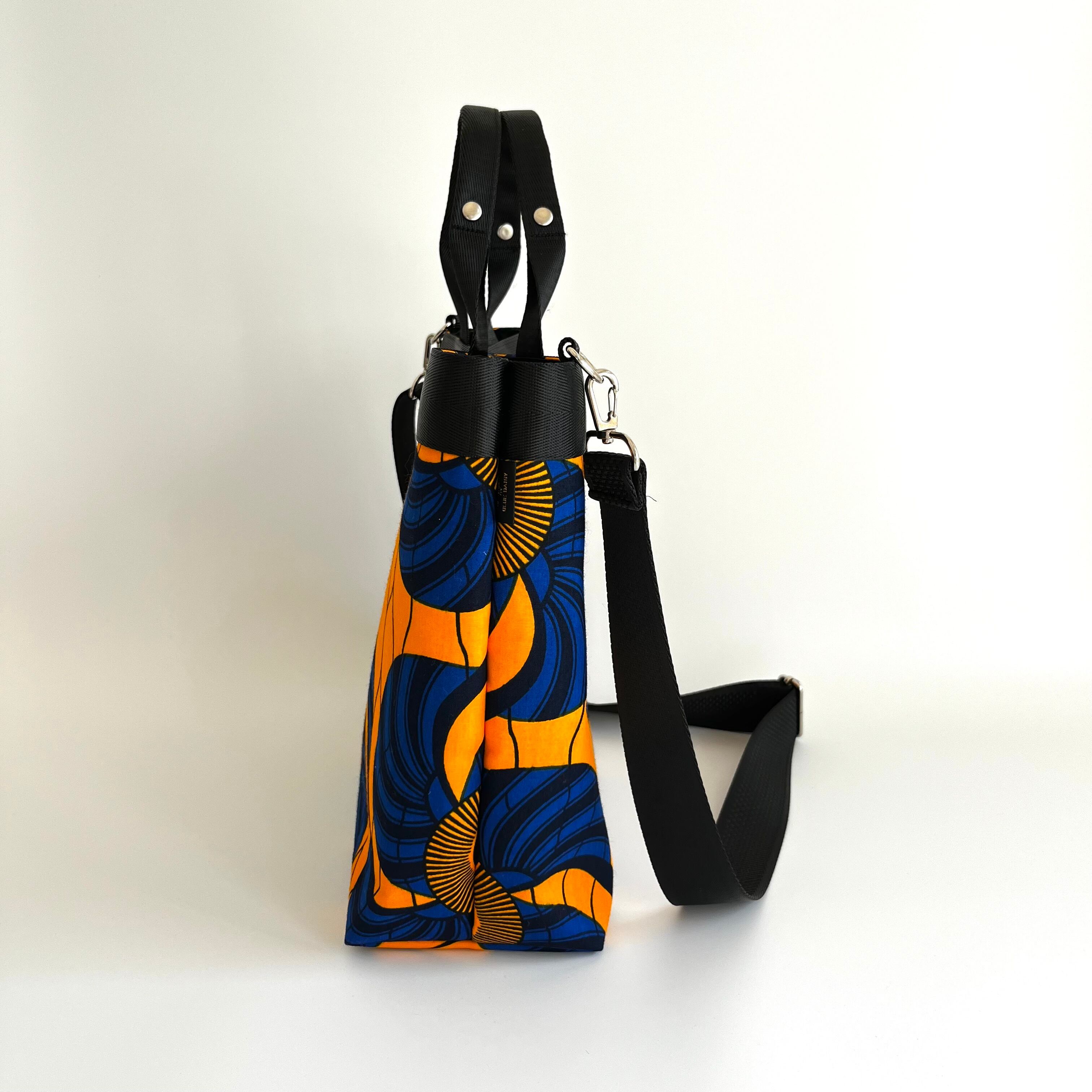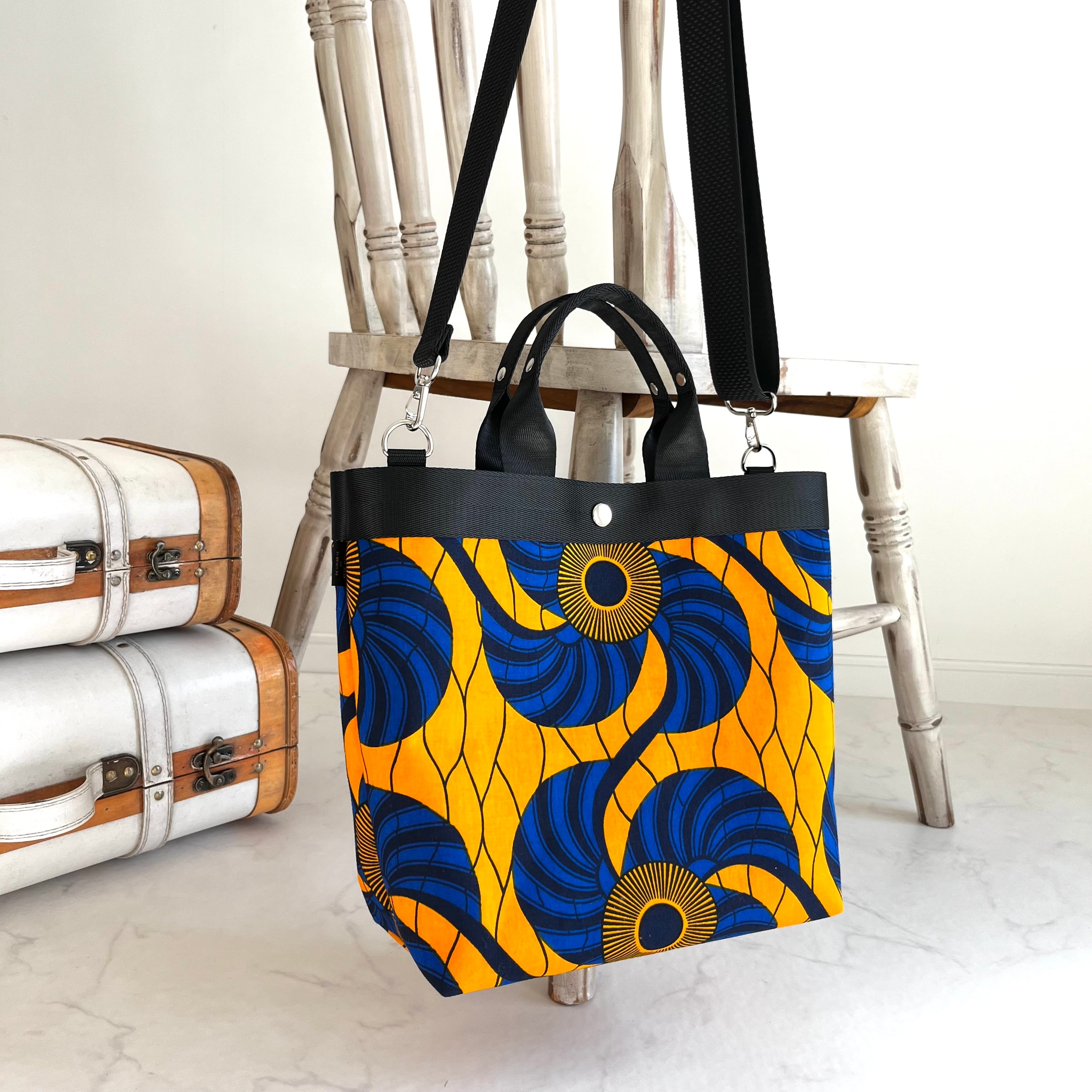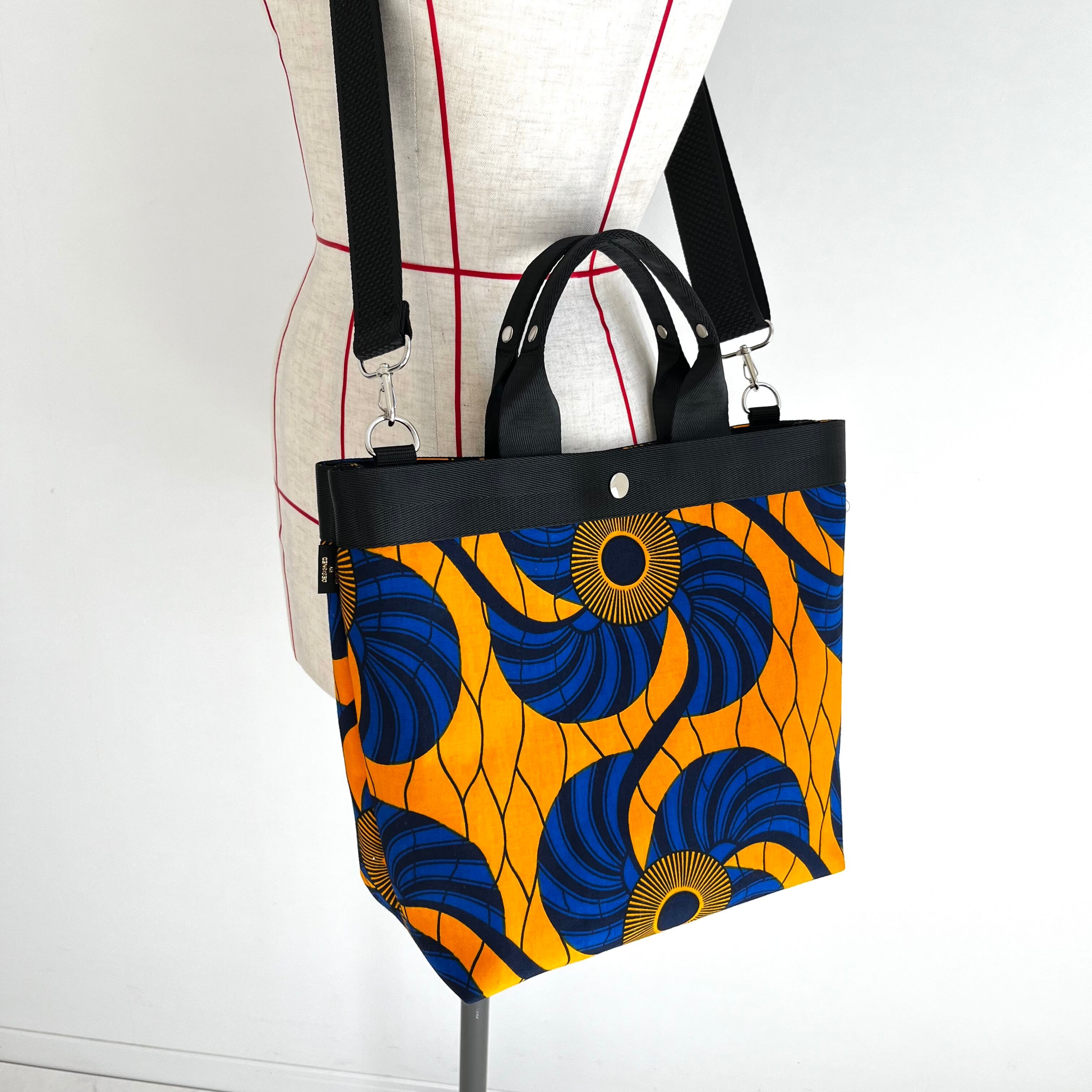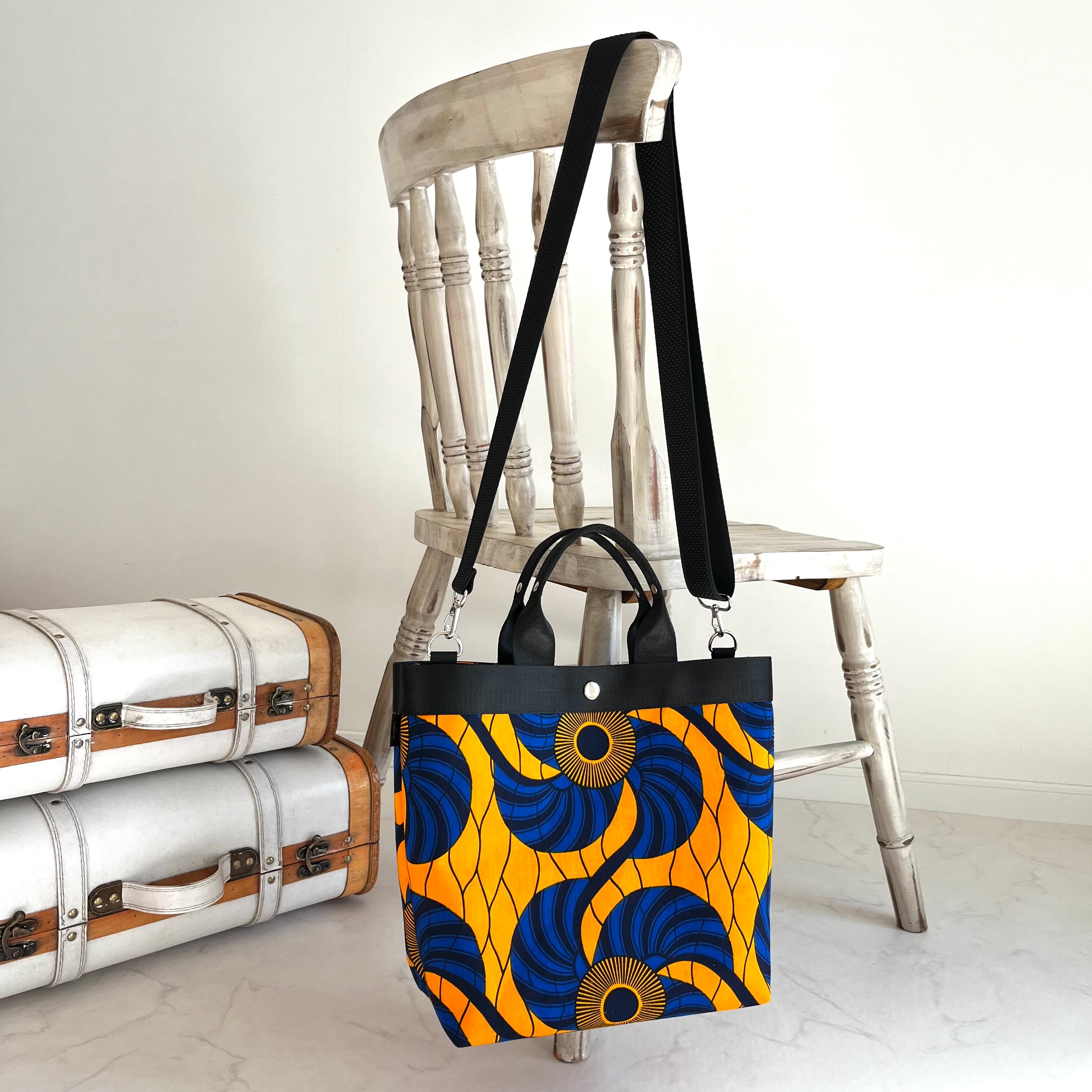 2wey/ショルダー BlackエッジバッグLサイズ 風車/イエロー×ブルー