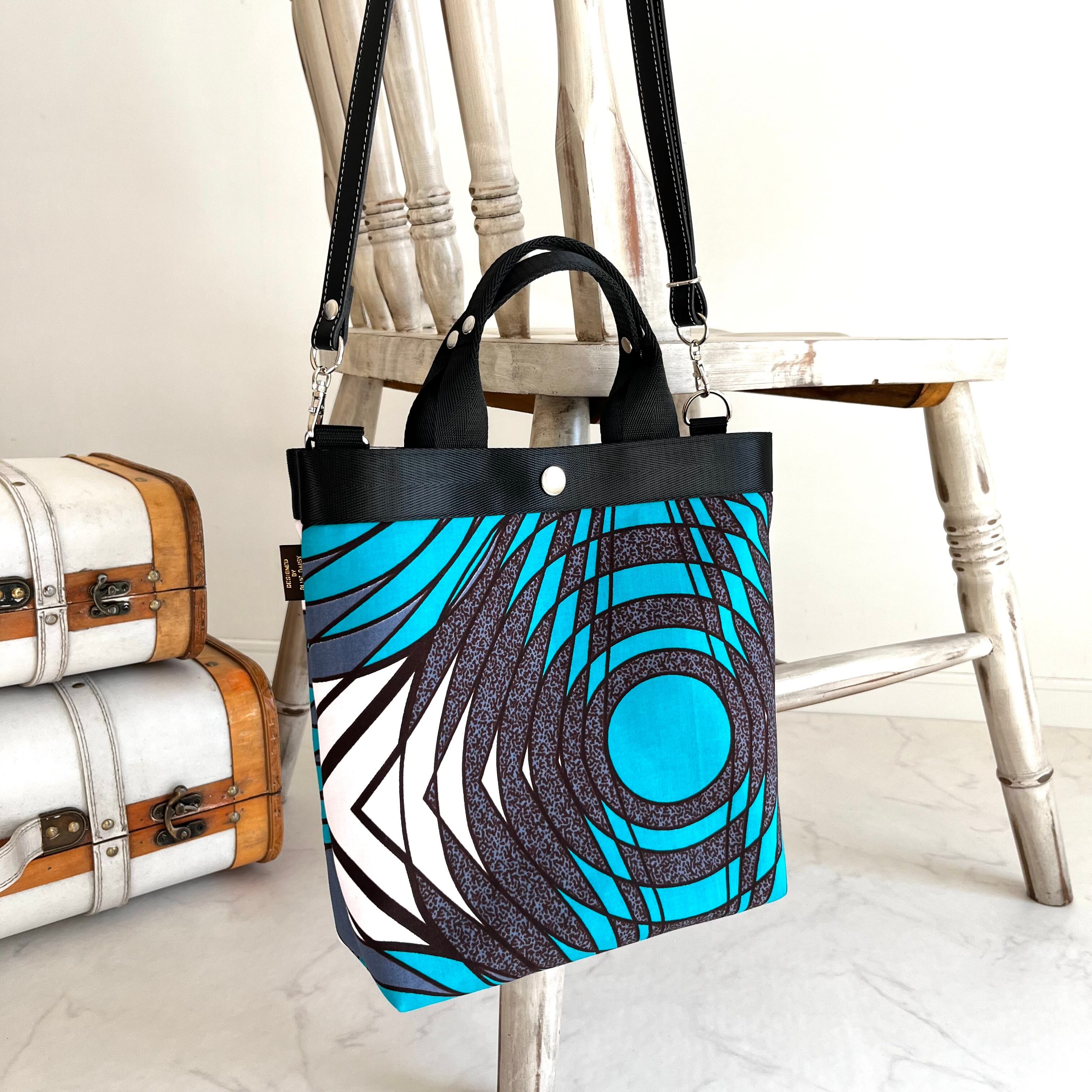 訳あり⭐︎2way/ショルダーエッジバッグMサイズ ブルー×グレーの万華鏡