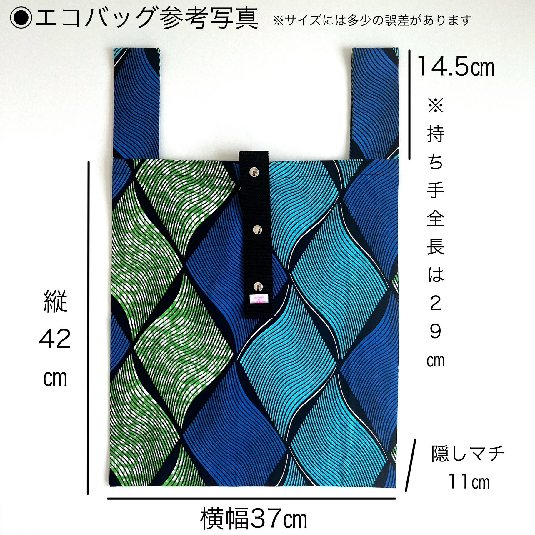 袋本体/横37㎝×縦42㎝×隠しまち11㎝