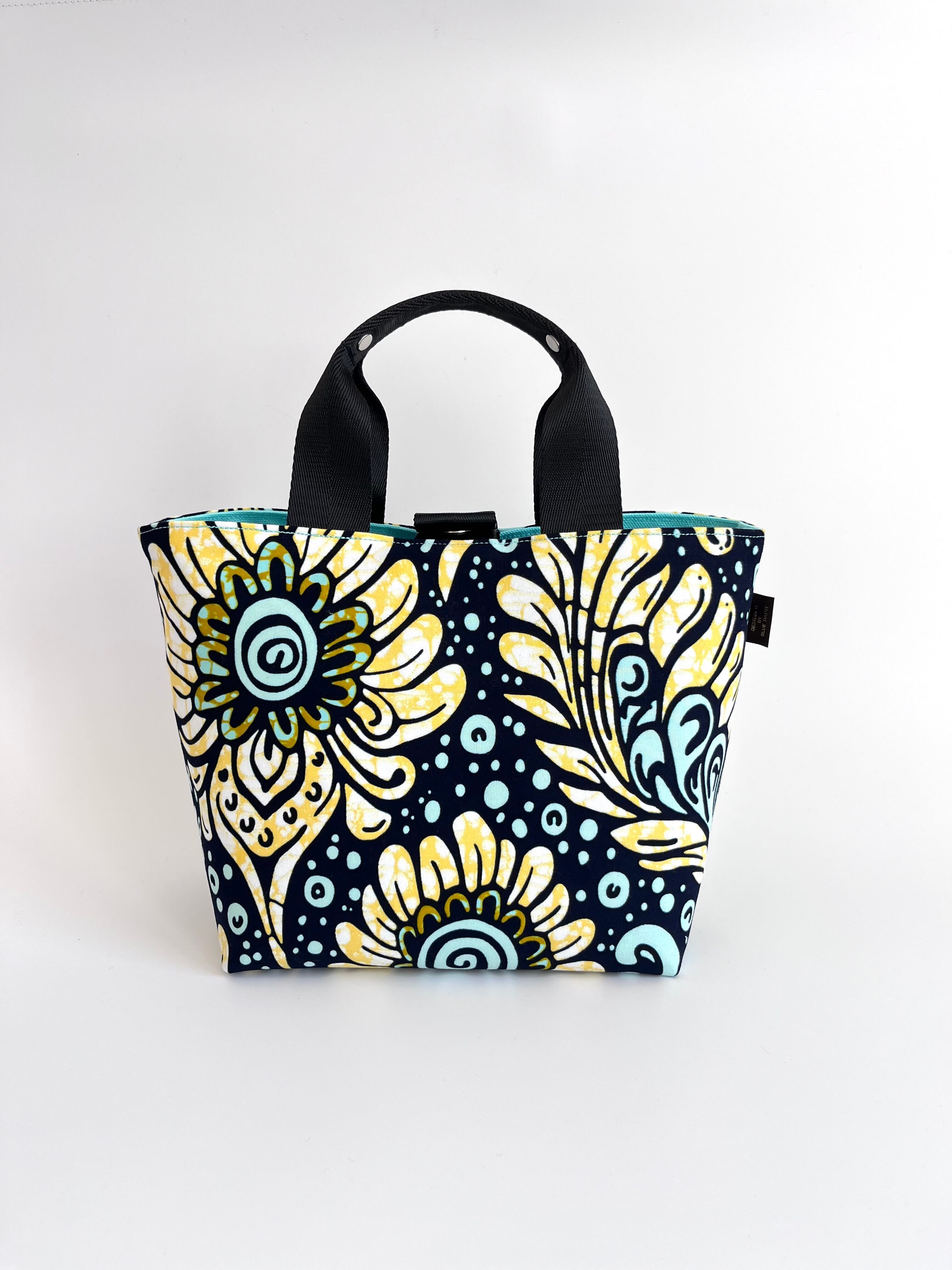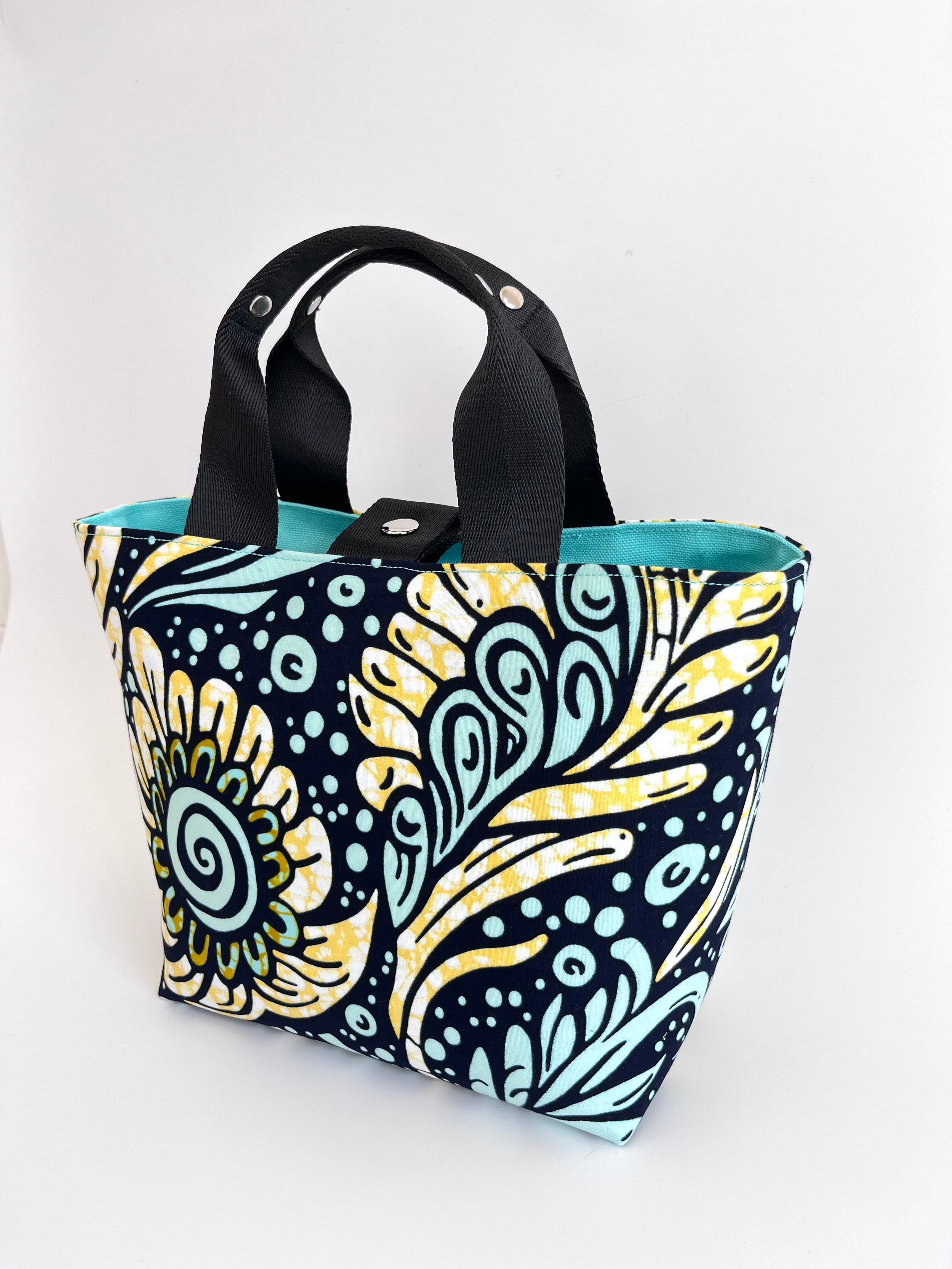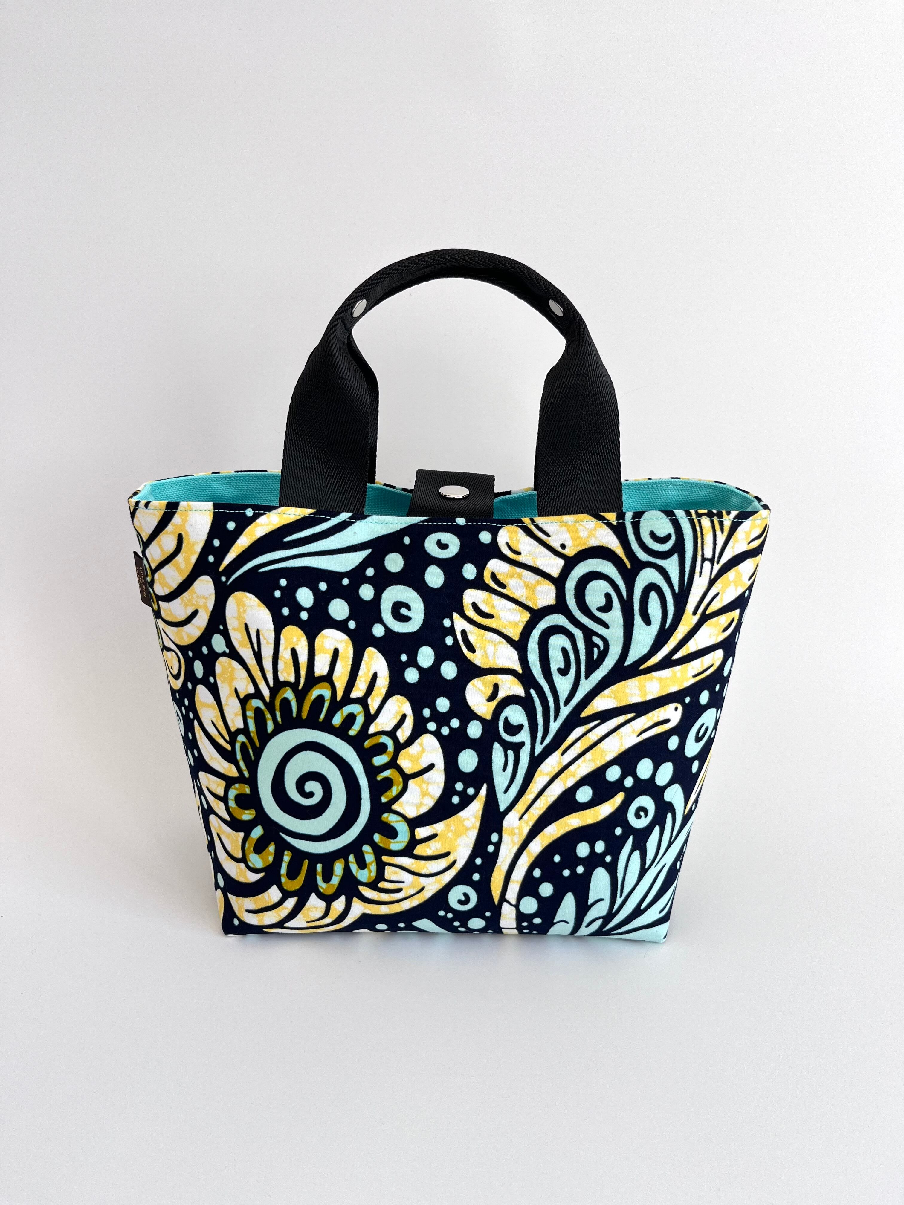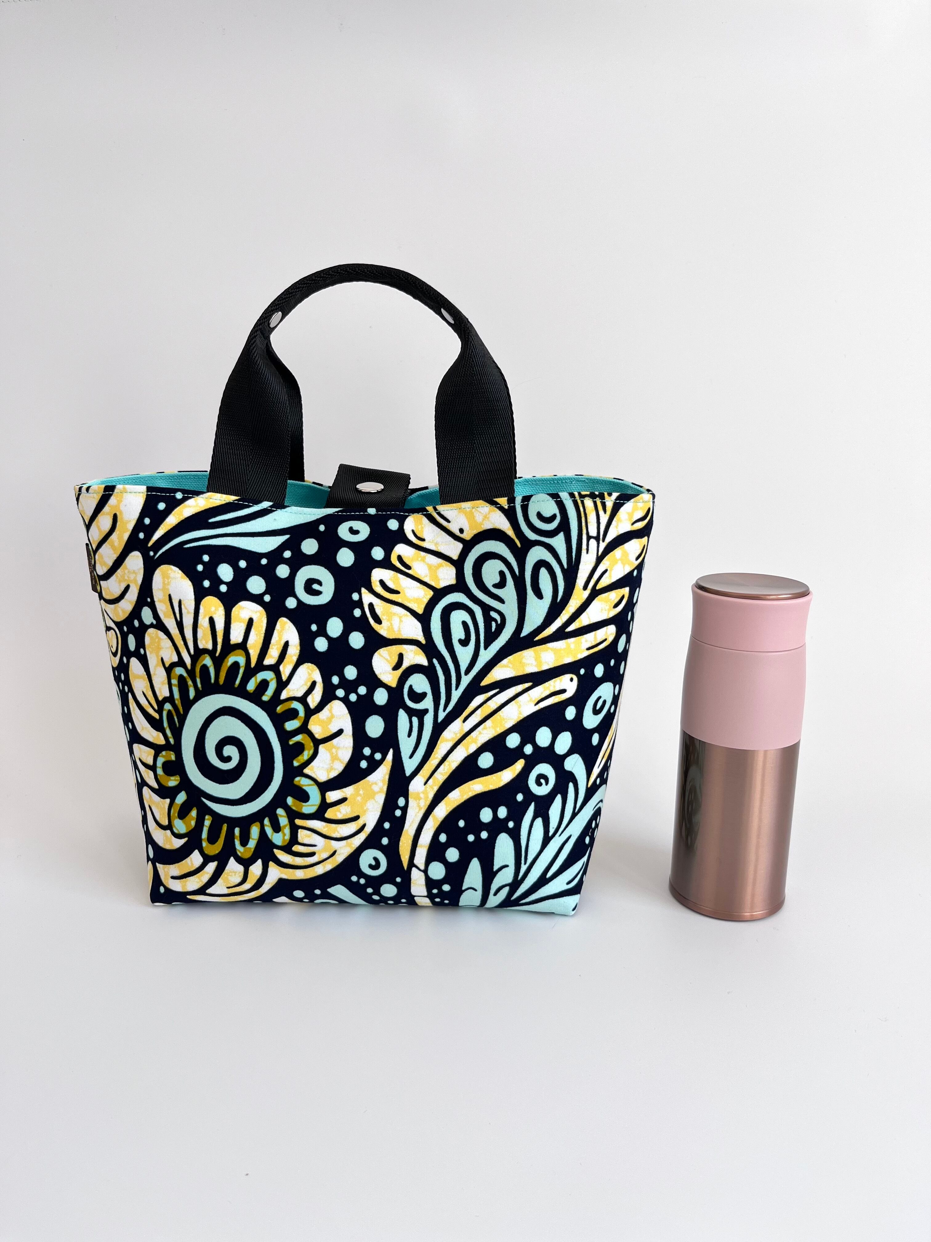 アフリカ布 ファーストバッグM ミント×イエロー/ドリームフラワー
