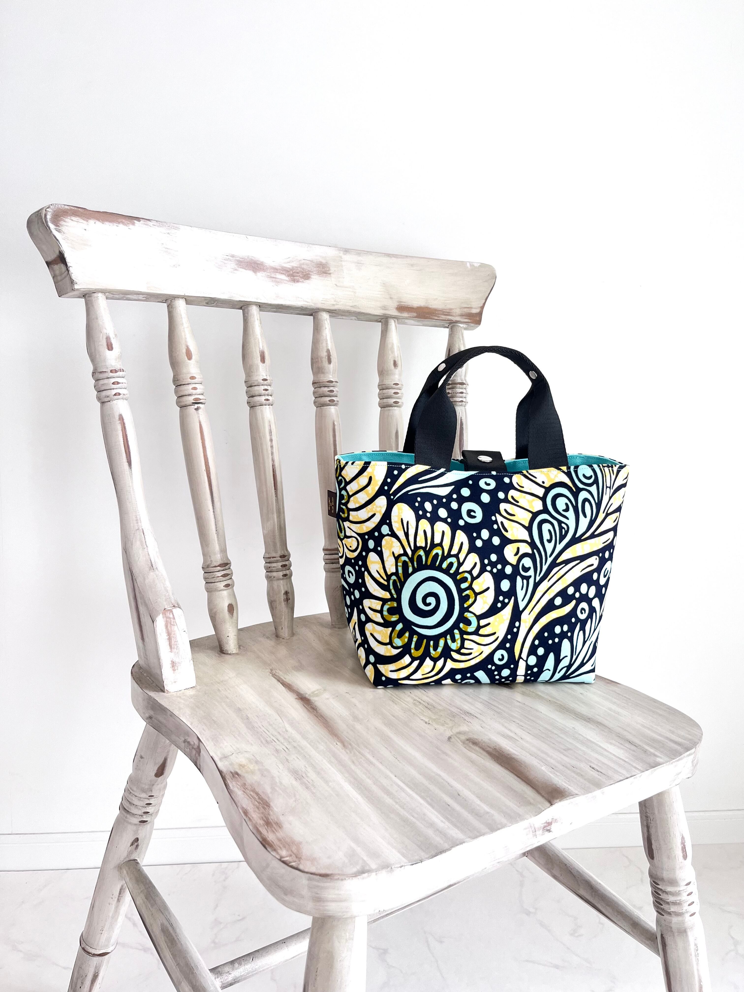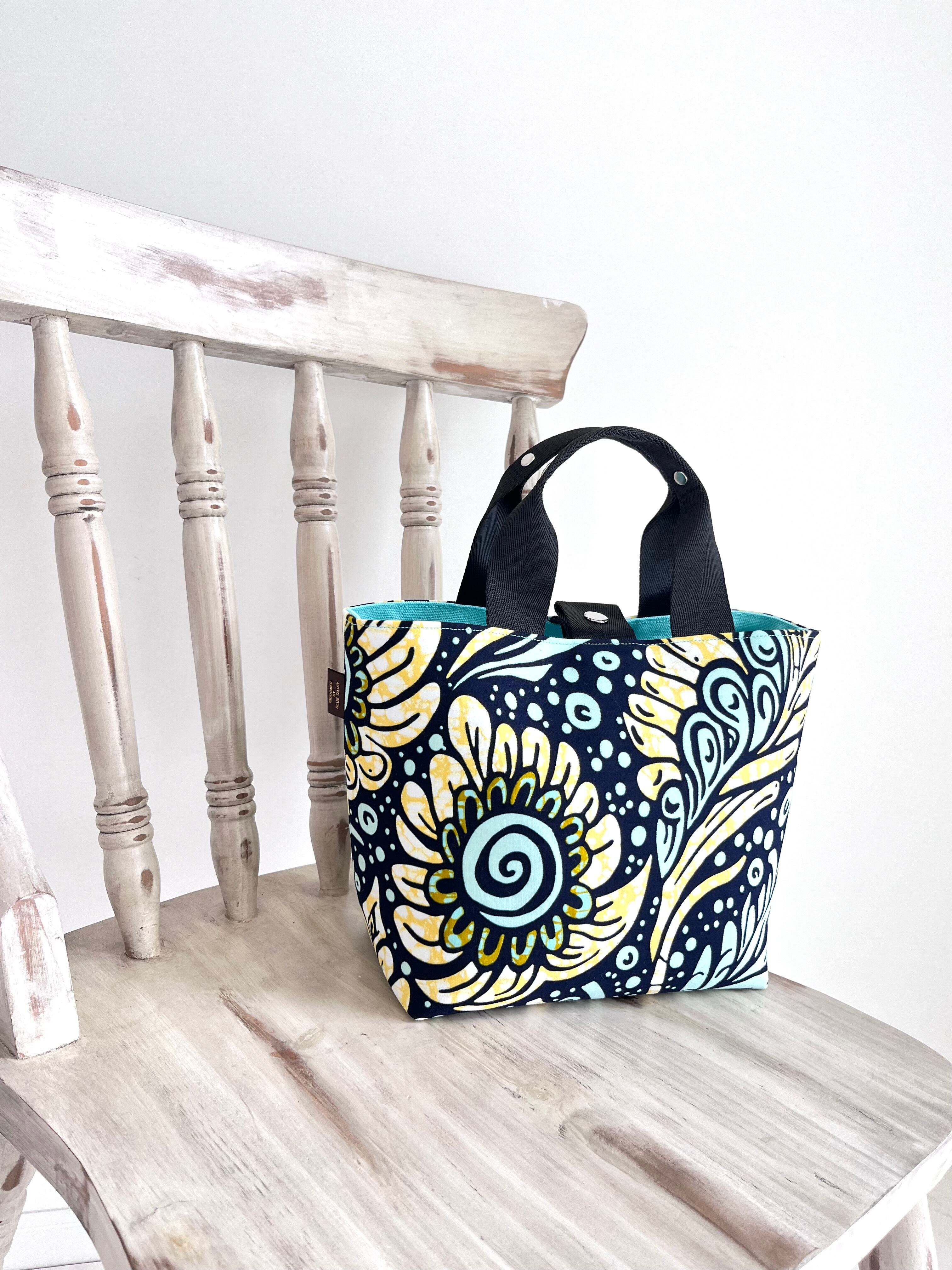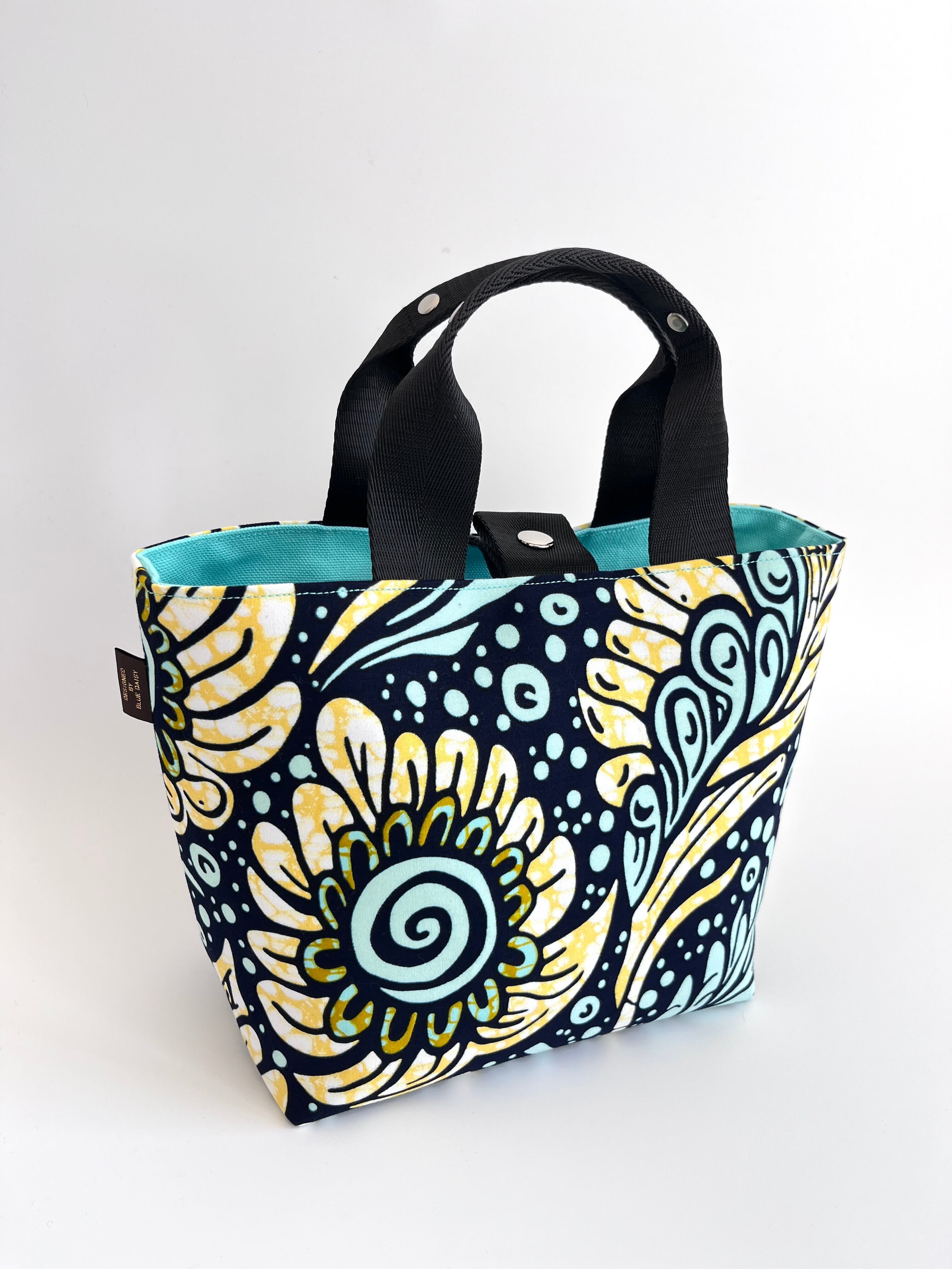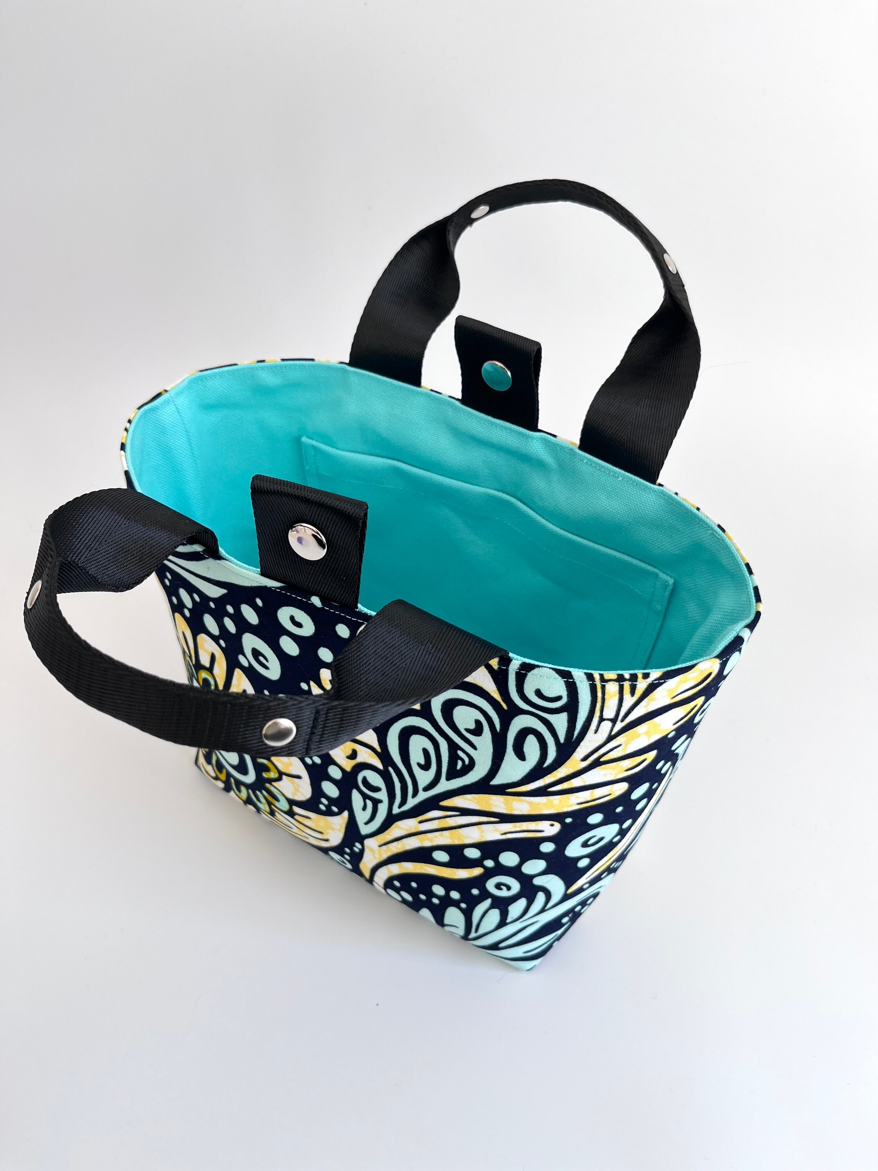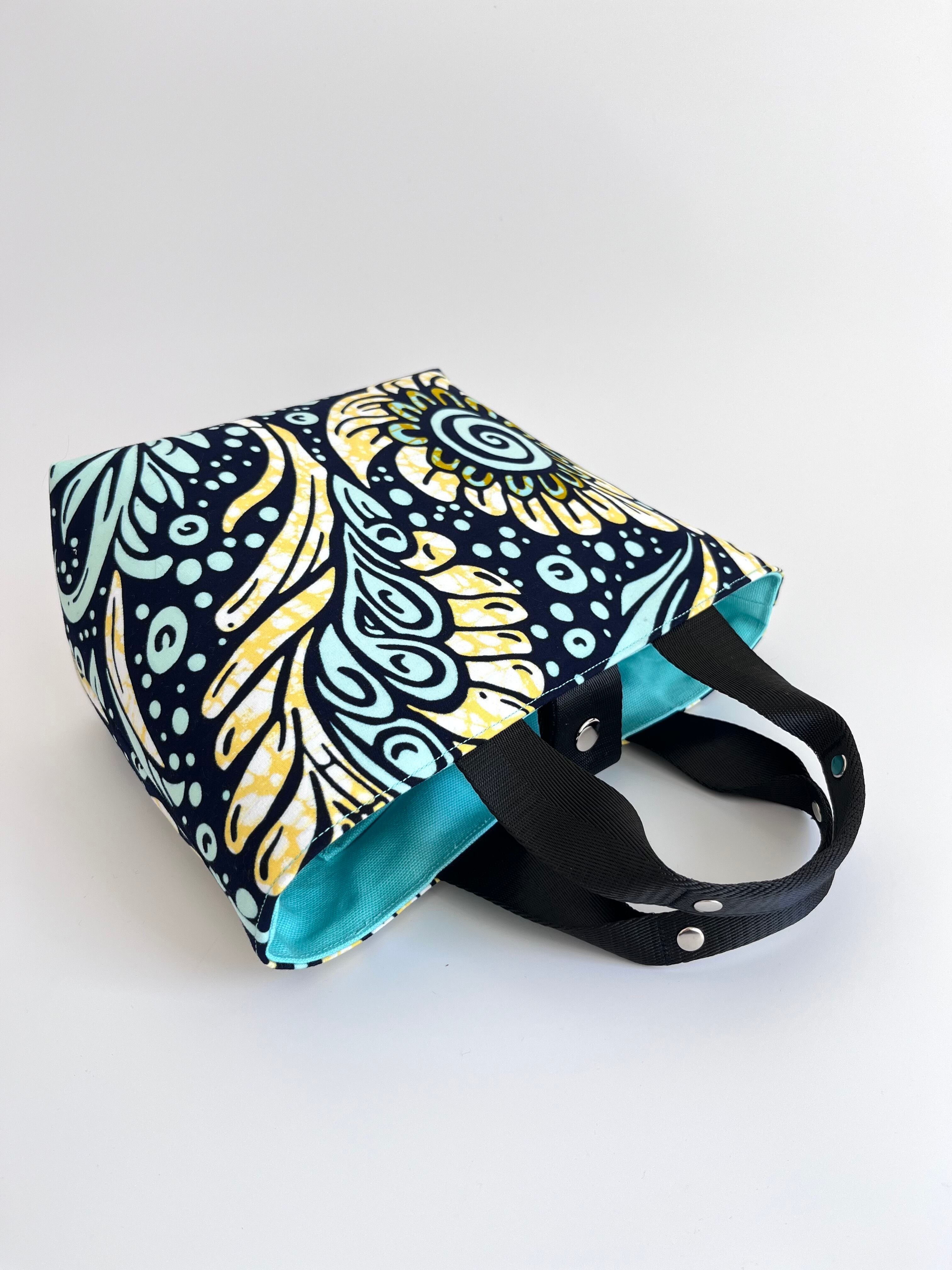 アフリカ布 ファーストバッグM ミント×イエロー/ドリームフラワー