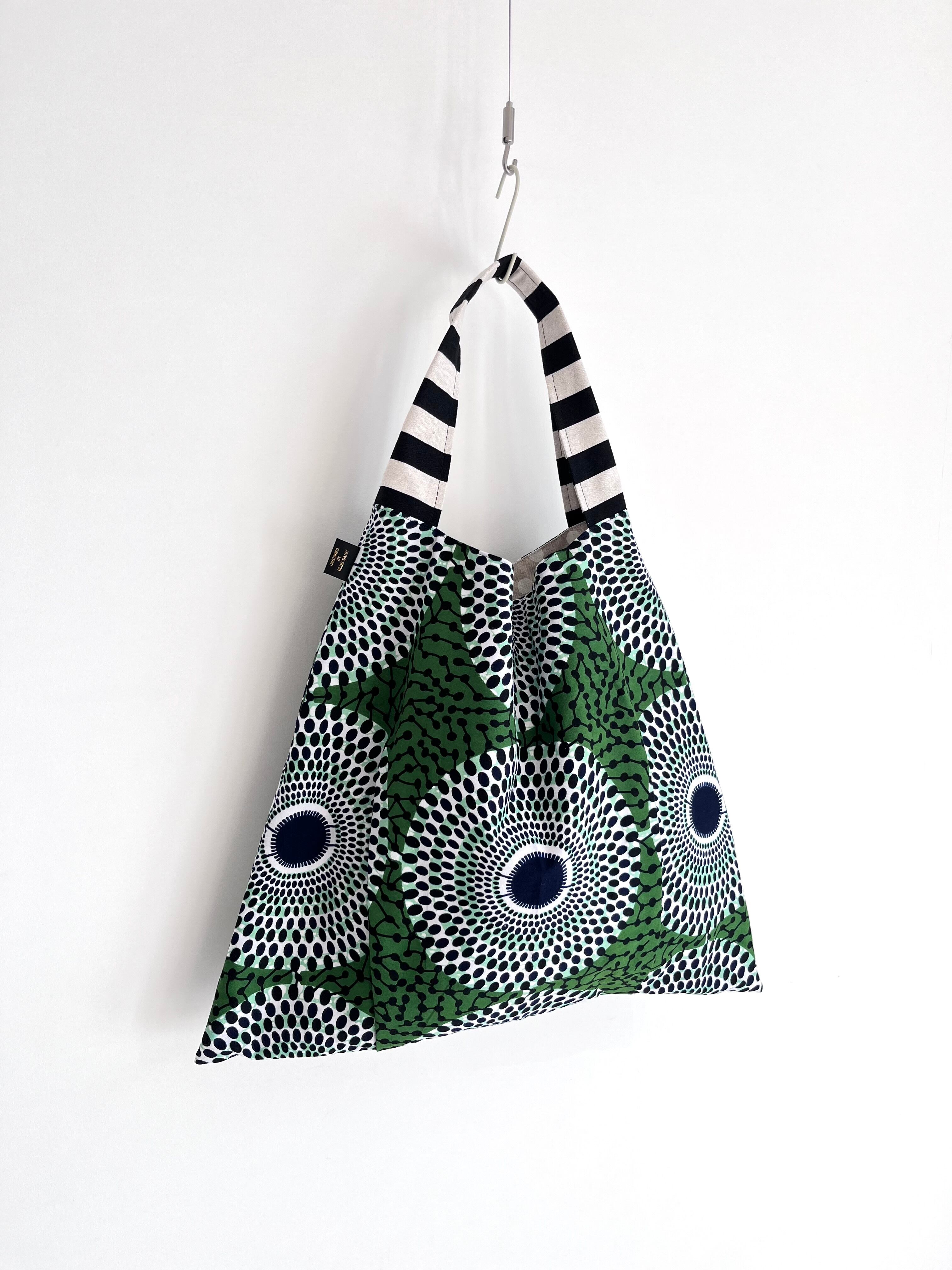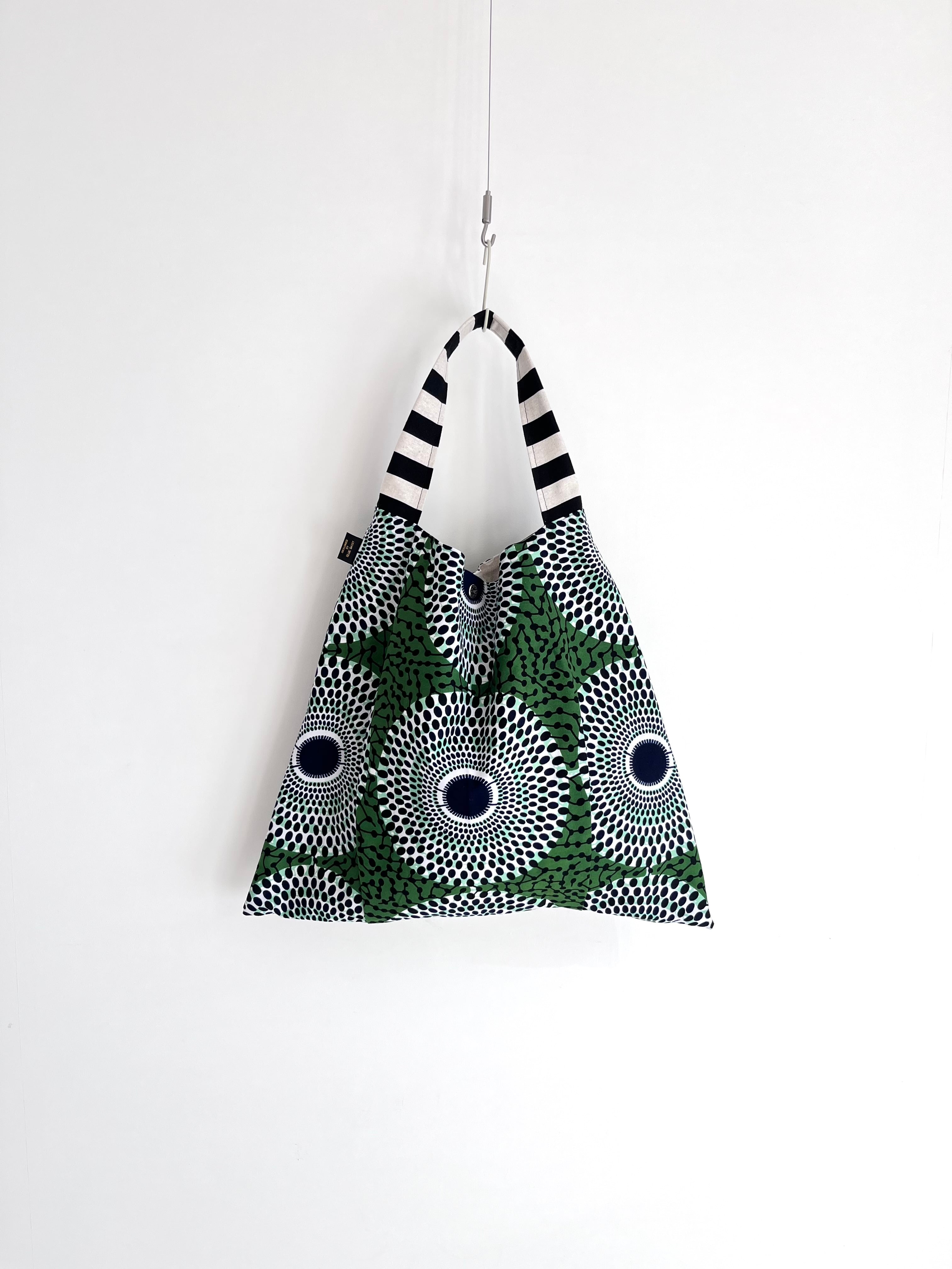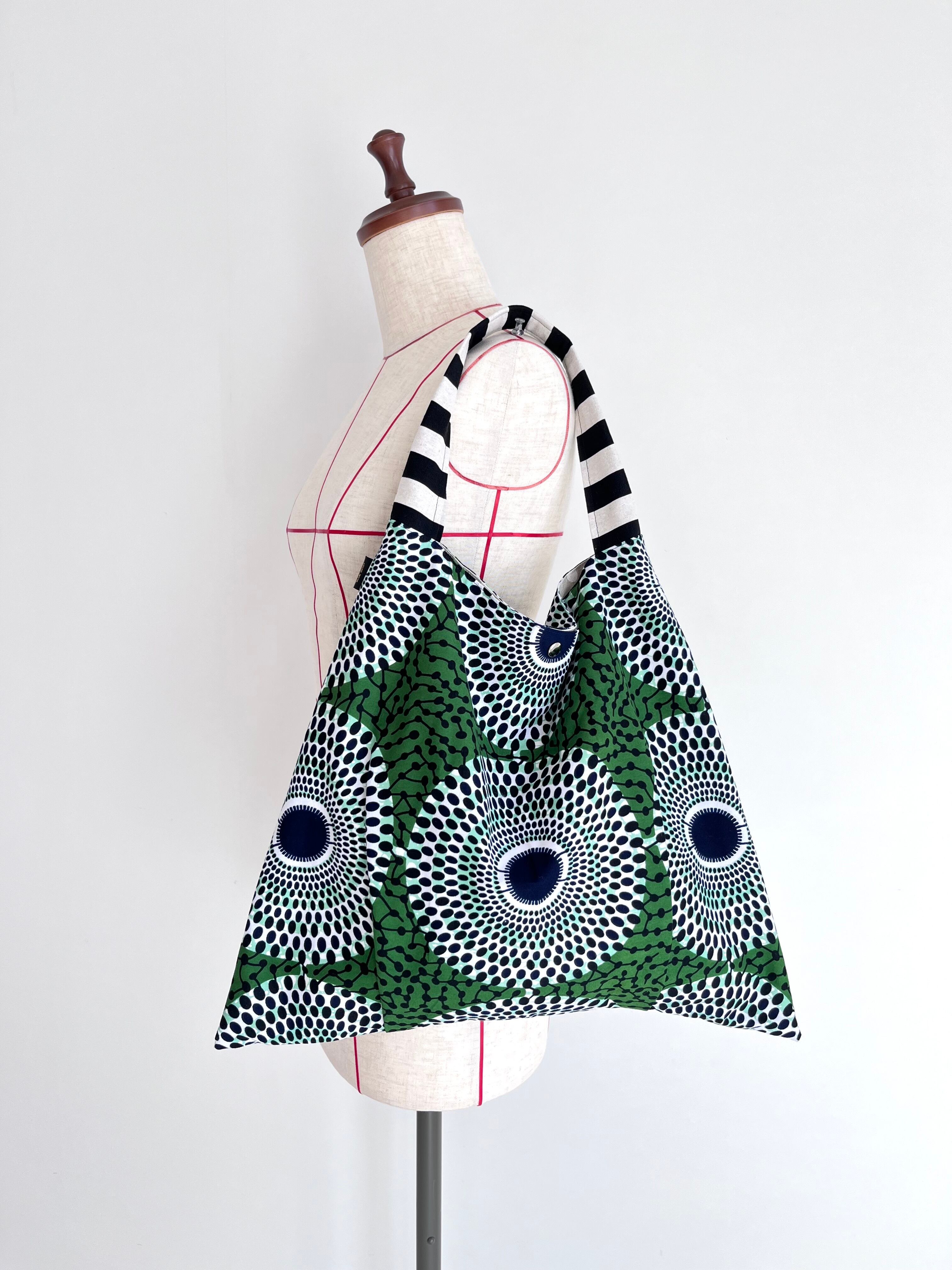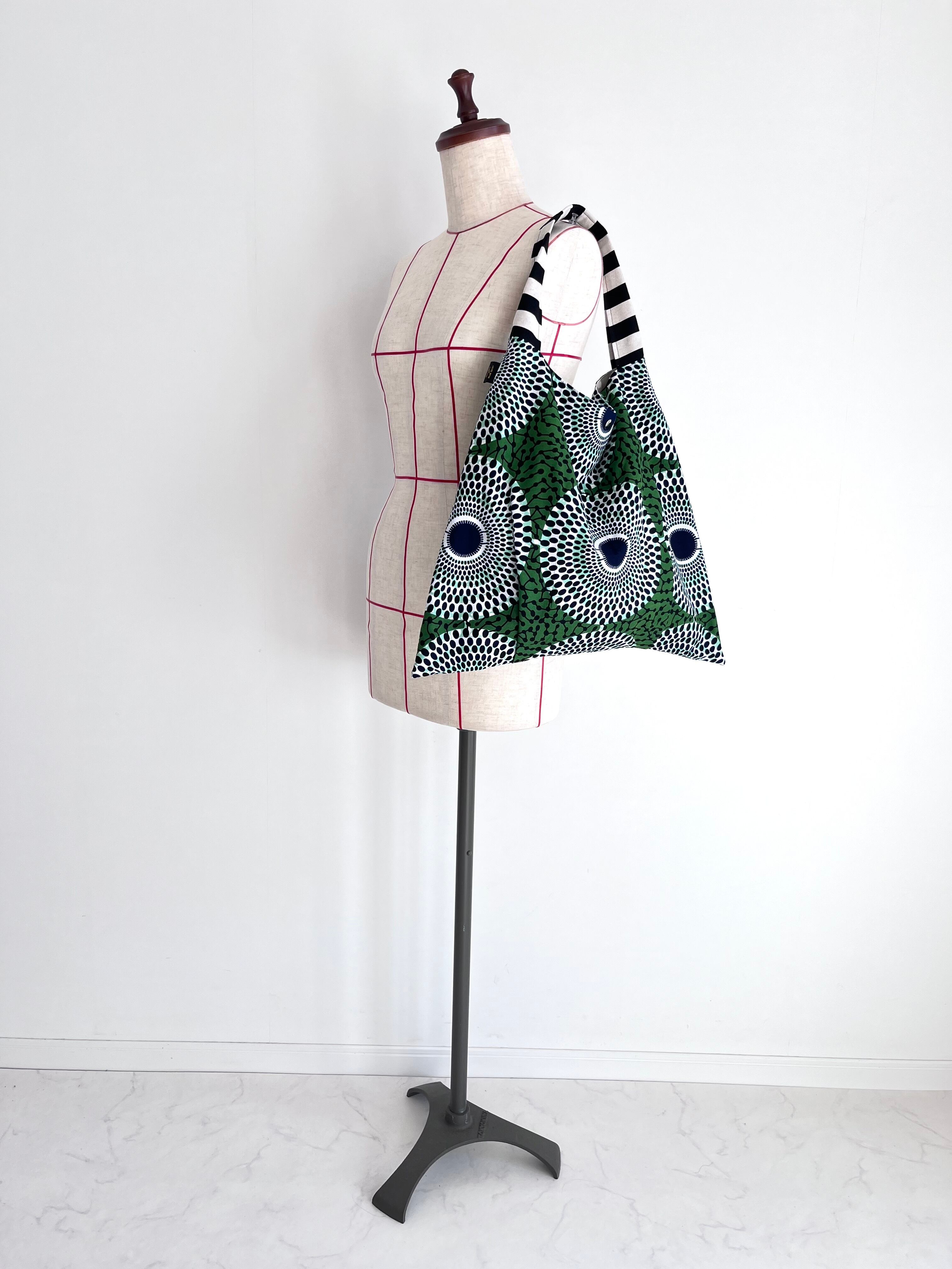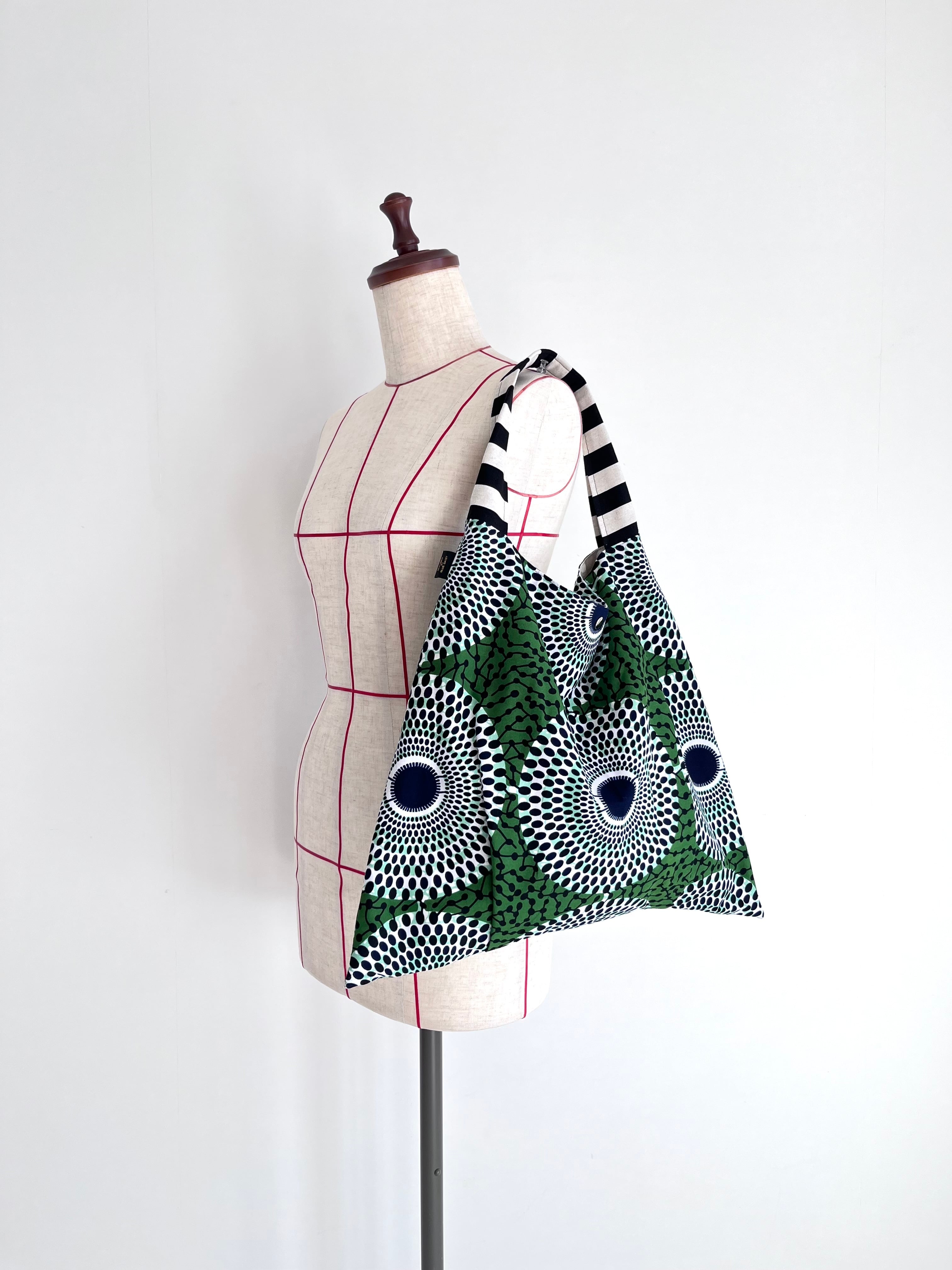 さんかくバッグ アフリカ布 水紋柄/モスグリーン