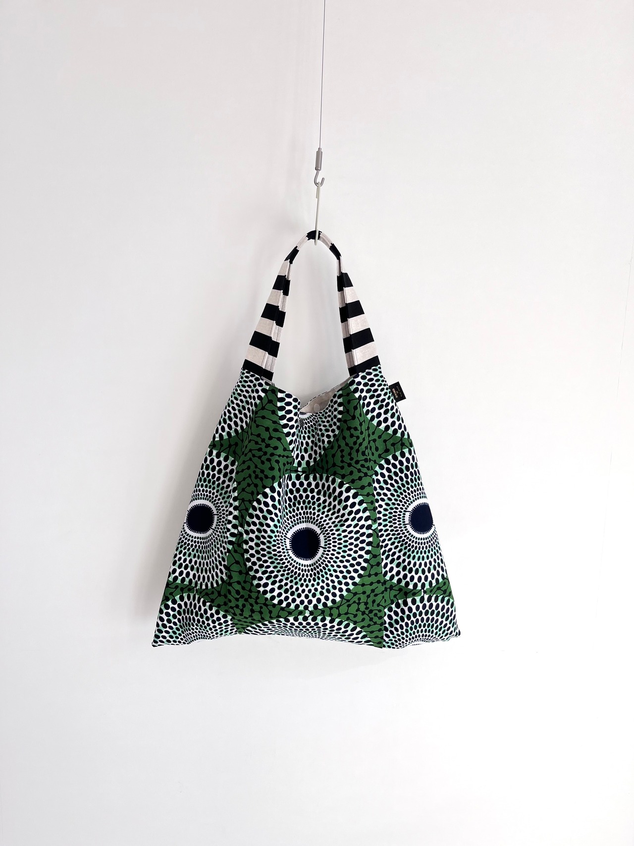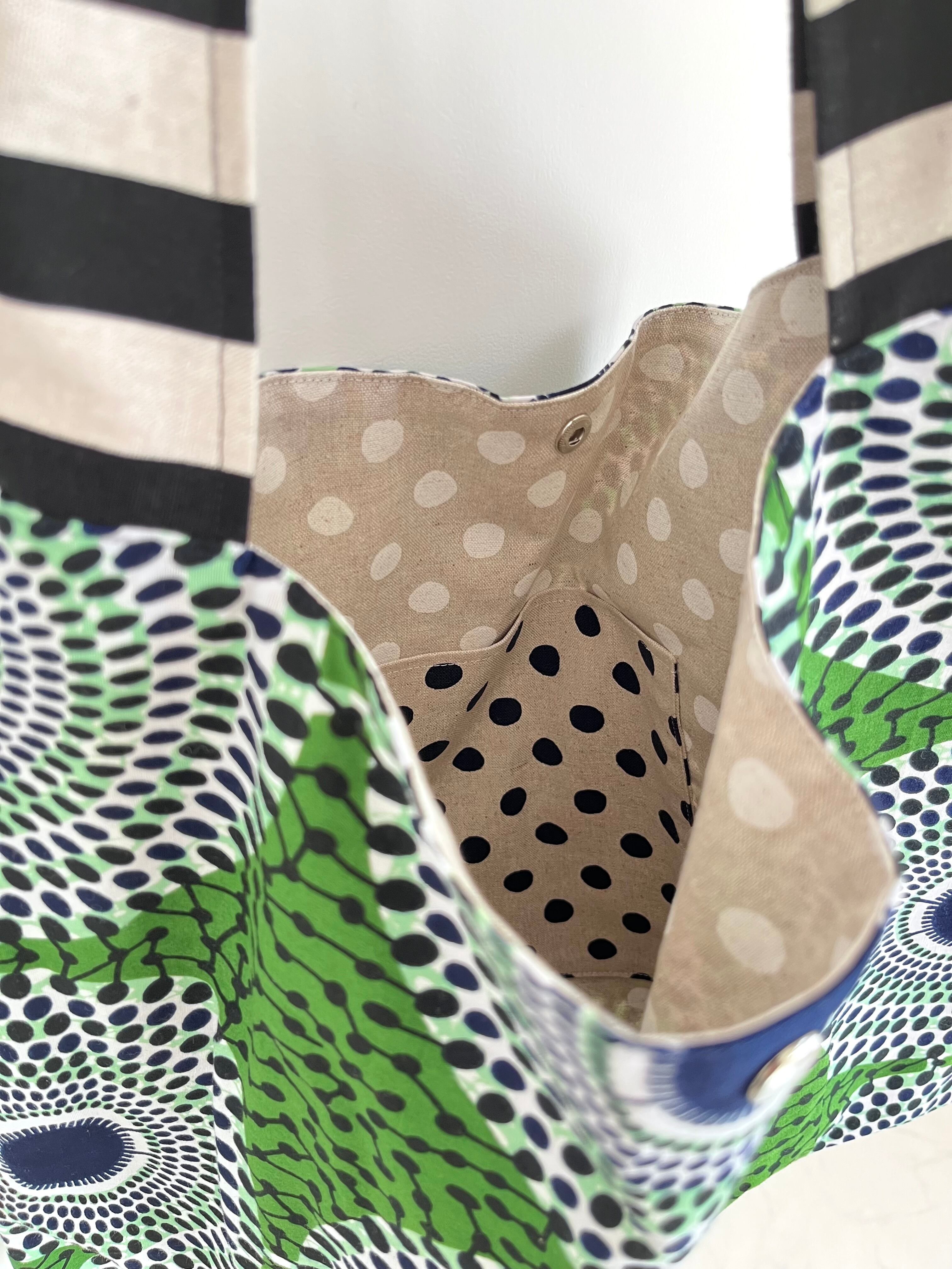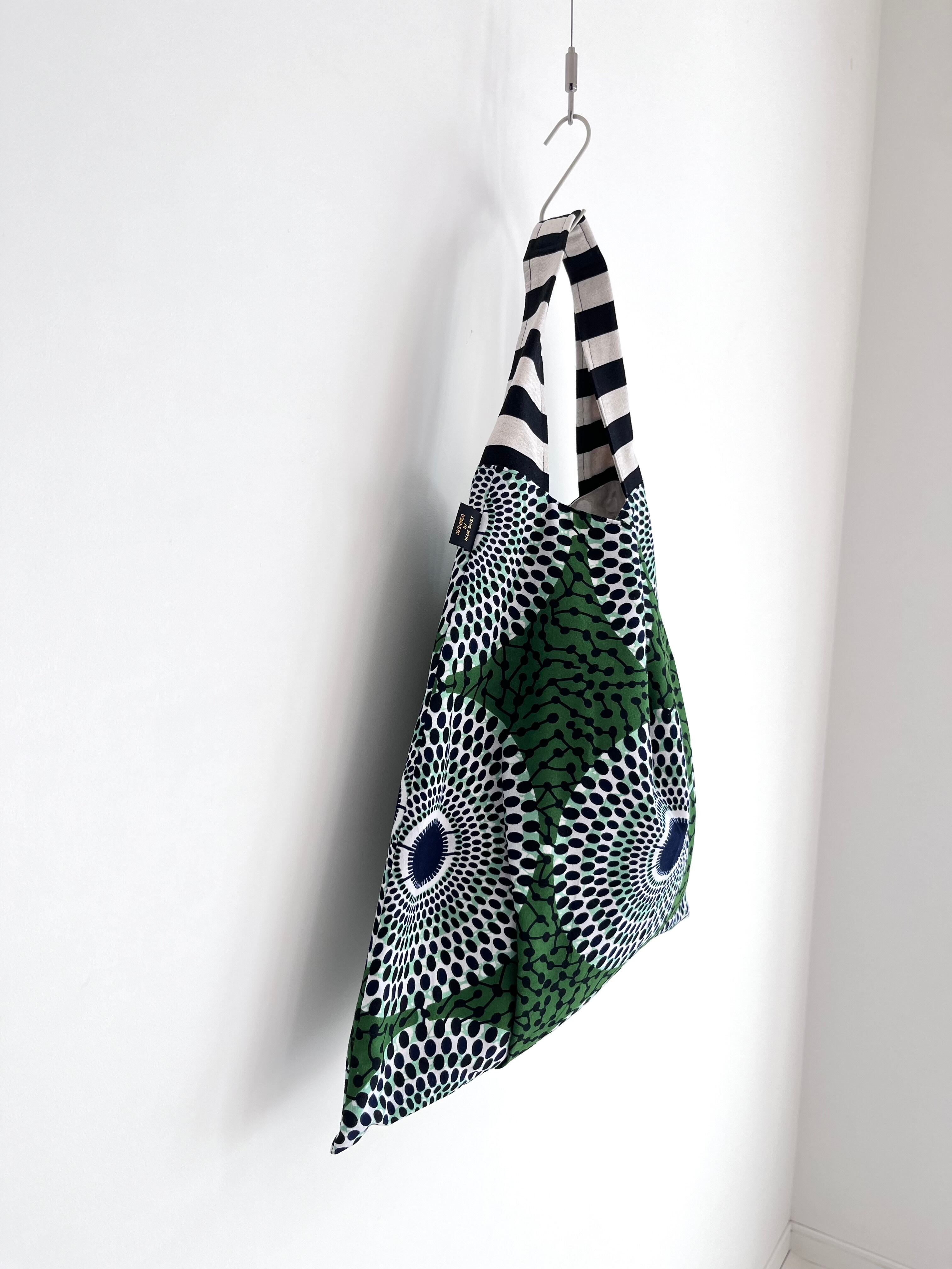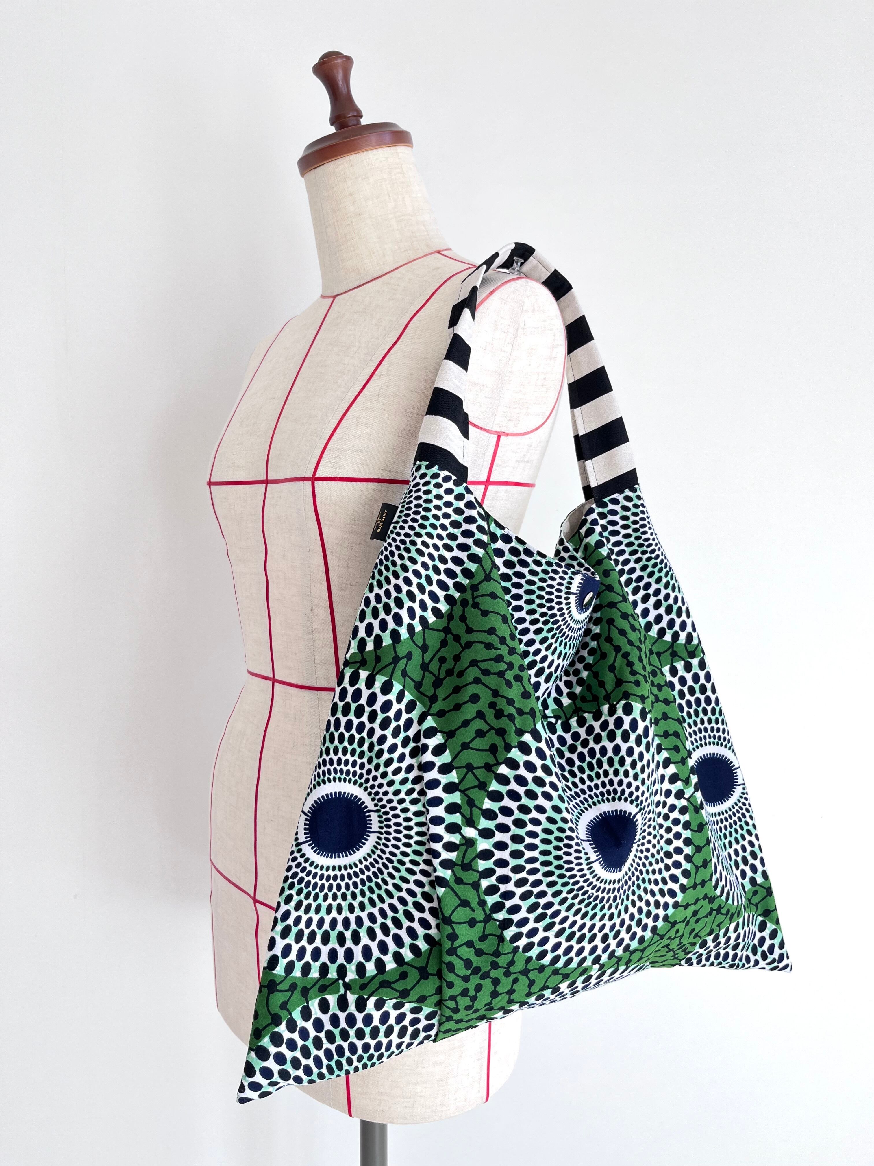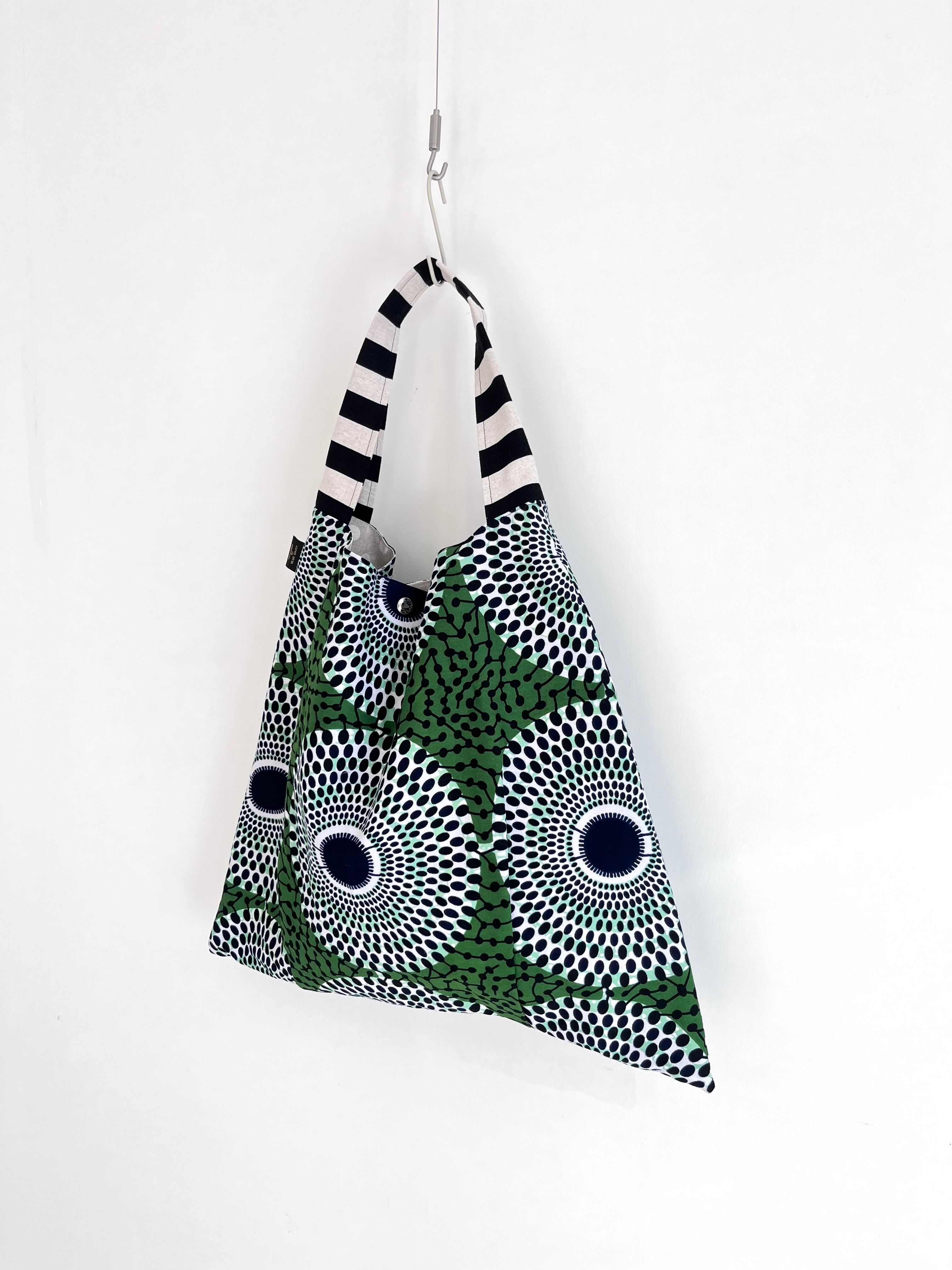 さんかくバッグ アフリカ布 水紋柄/モスグリーン