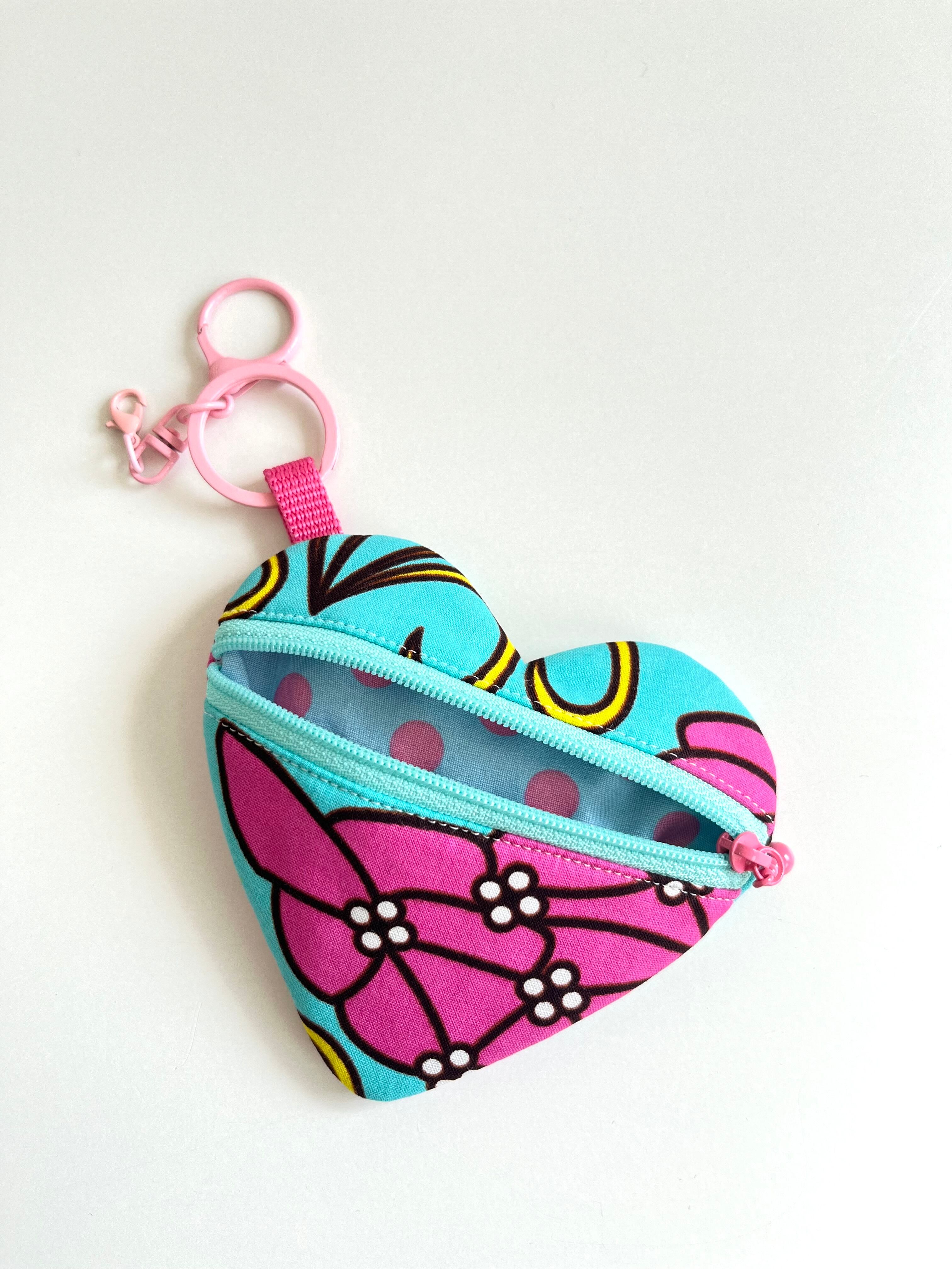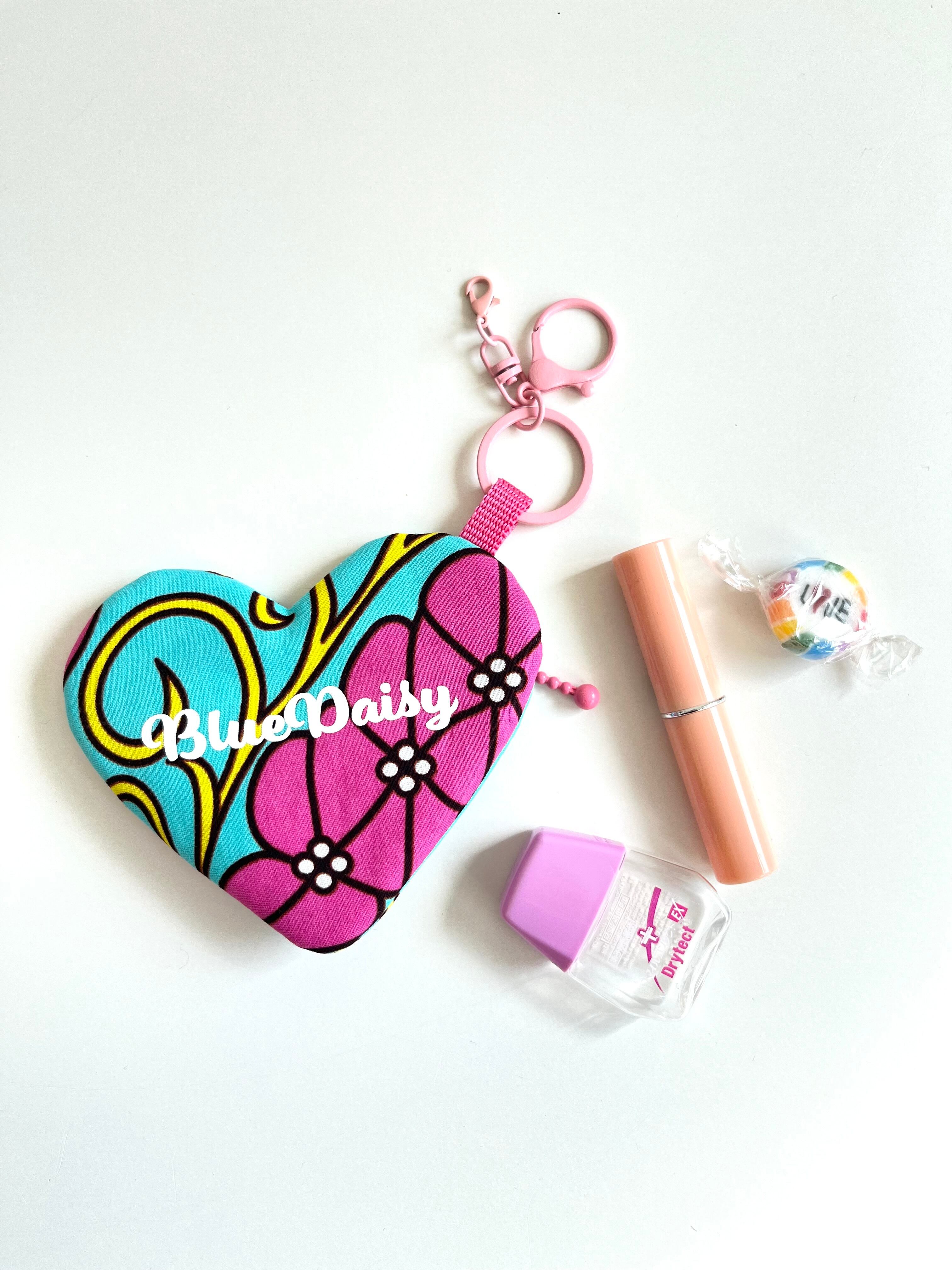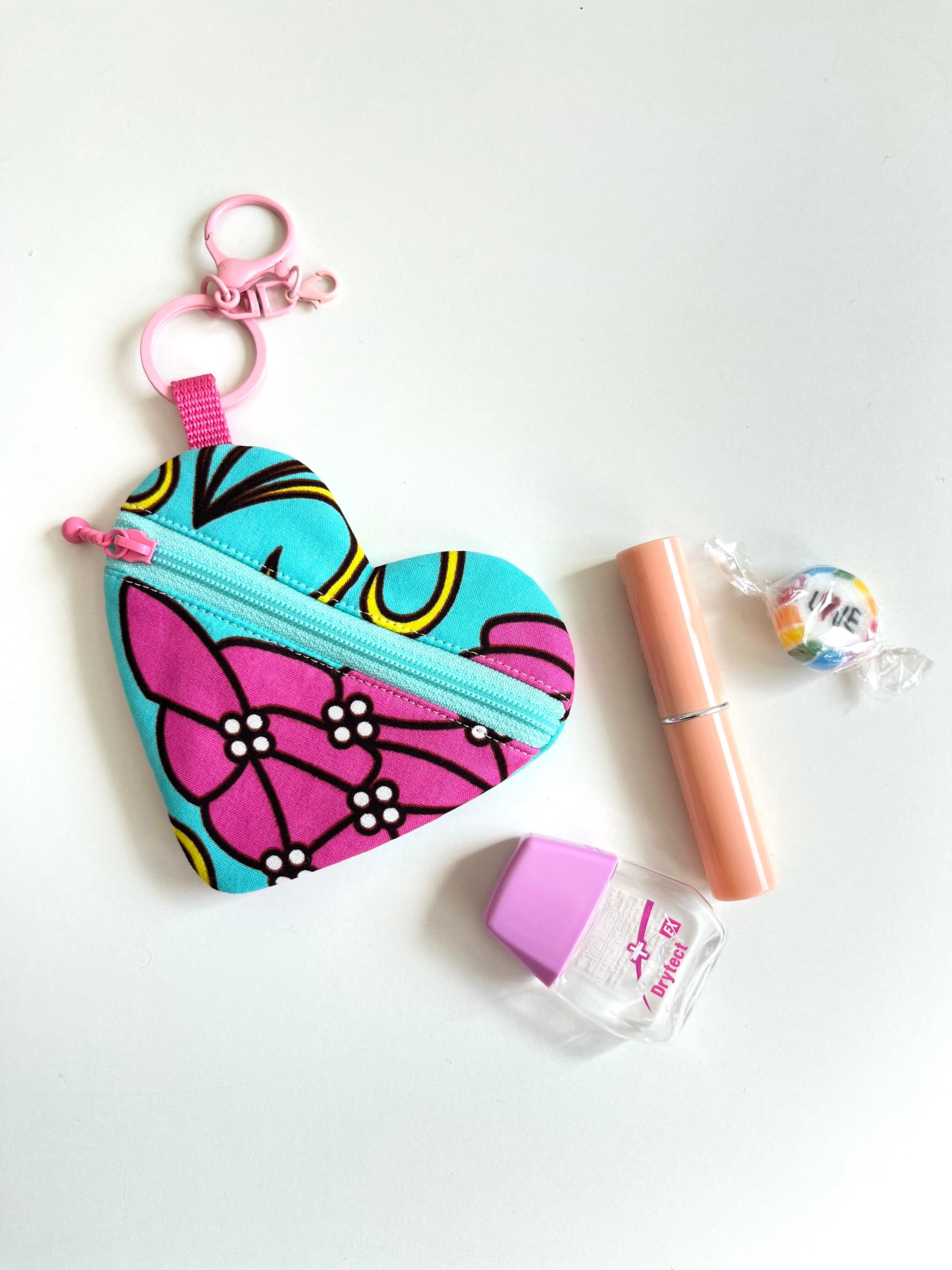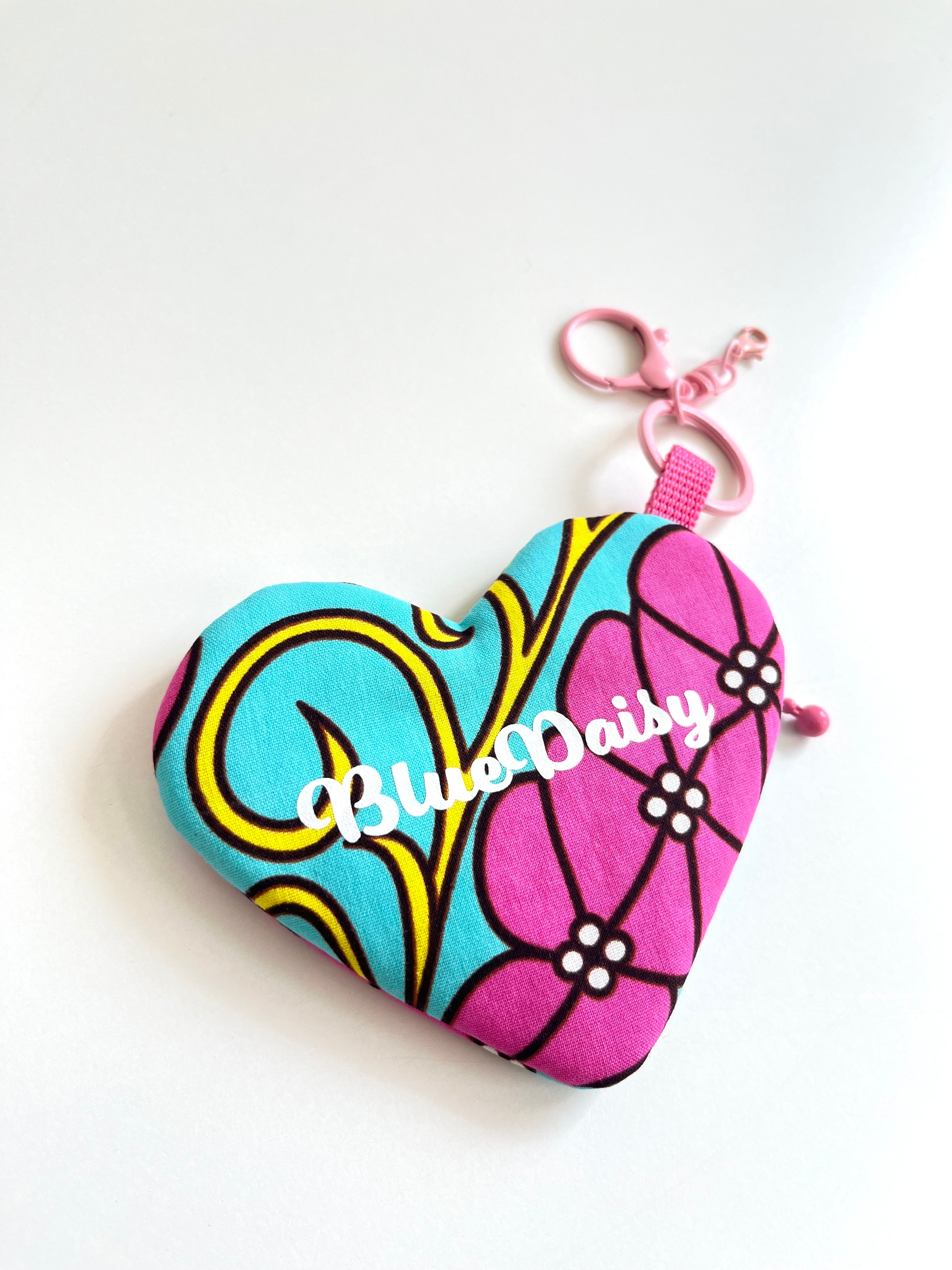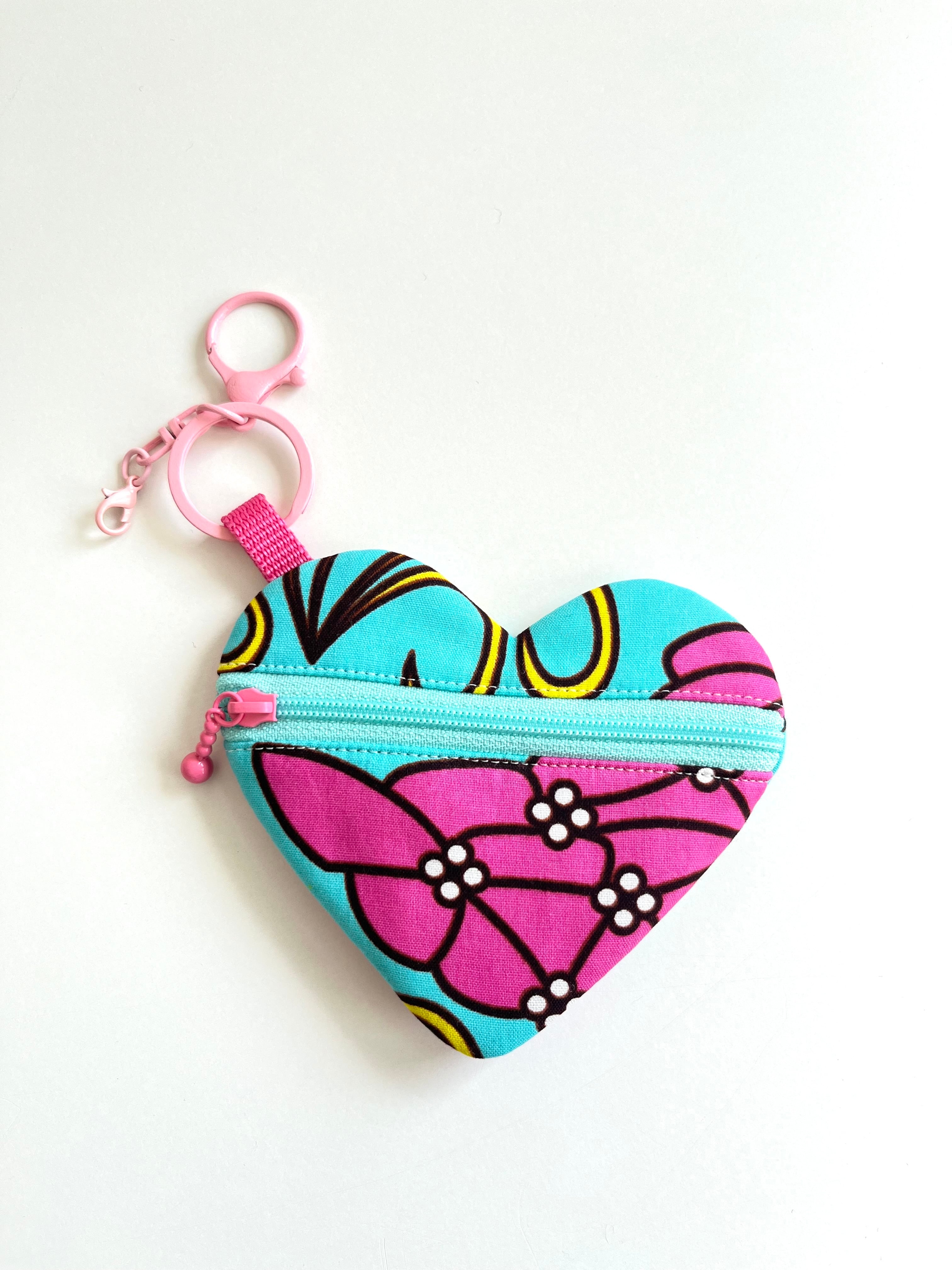 ◉アフリカ布のハートチャームポーチ