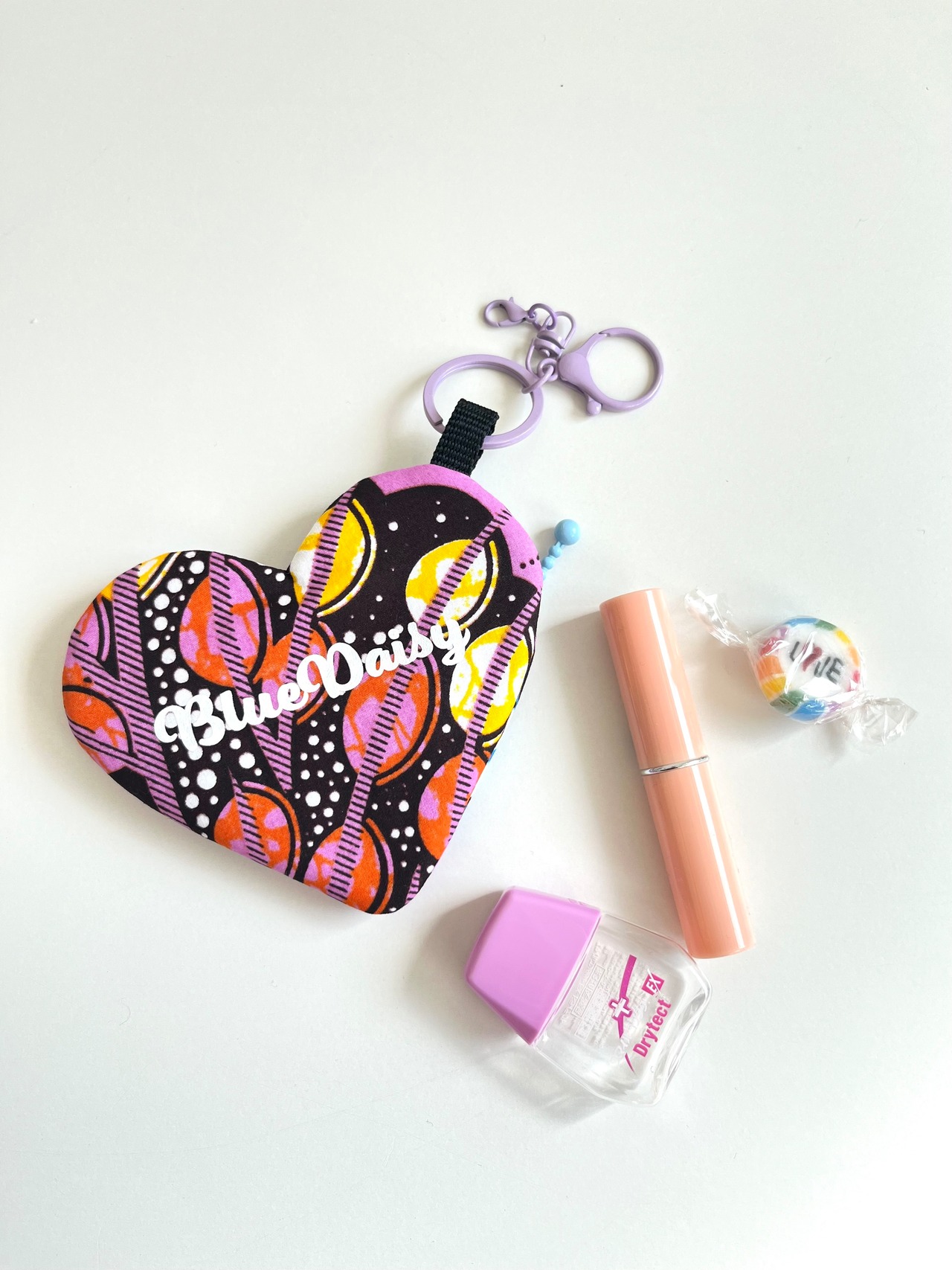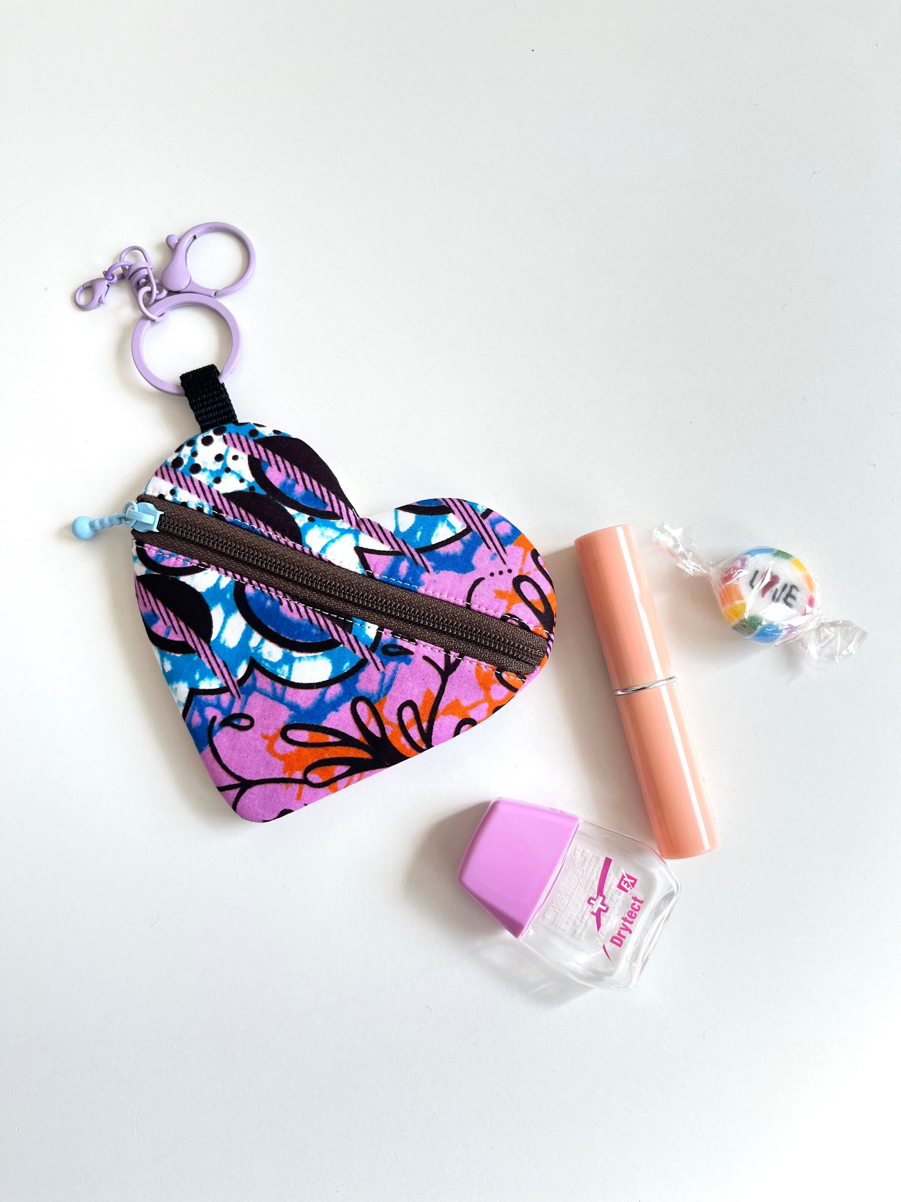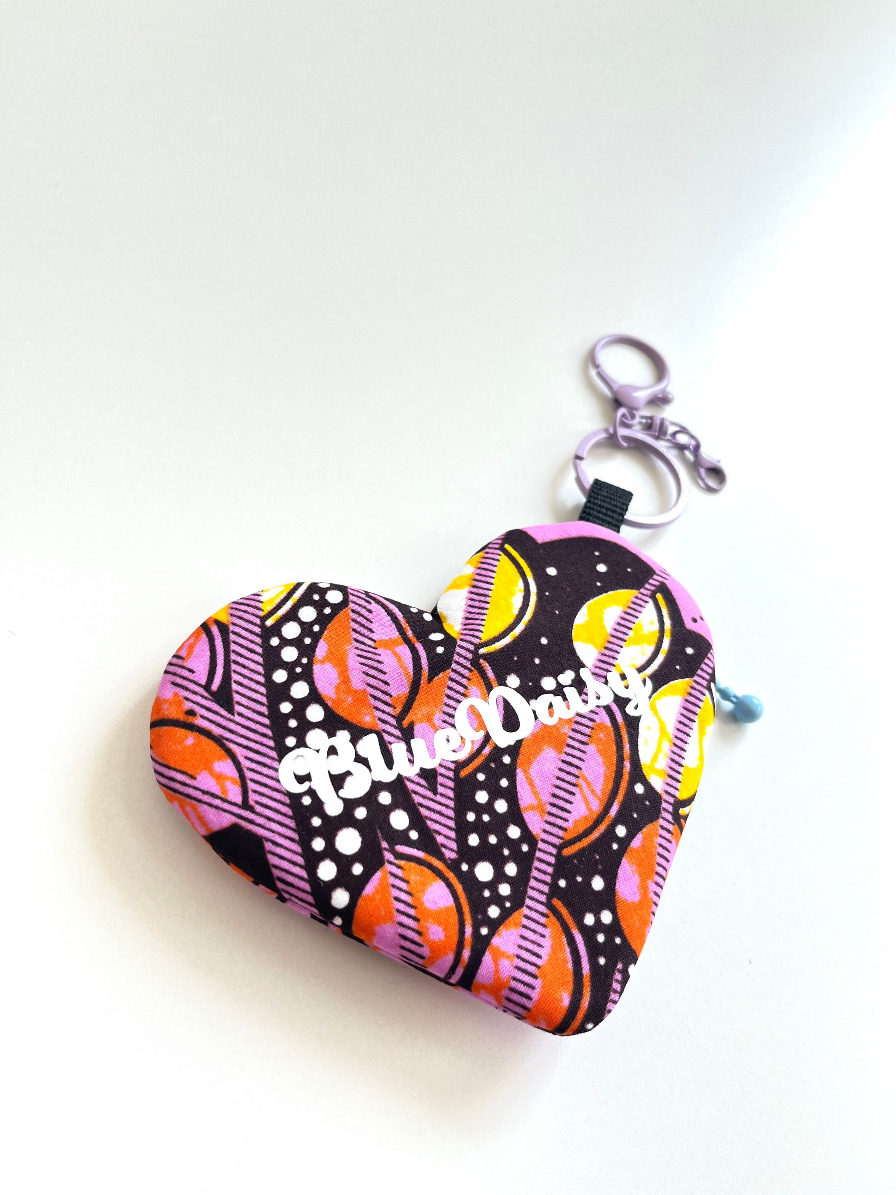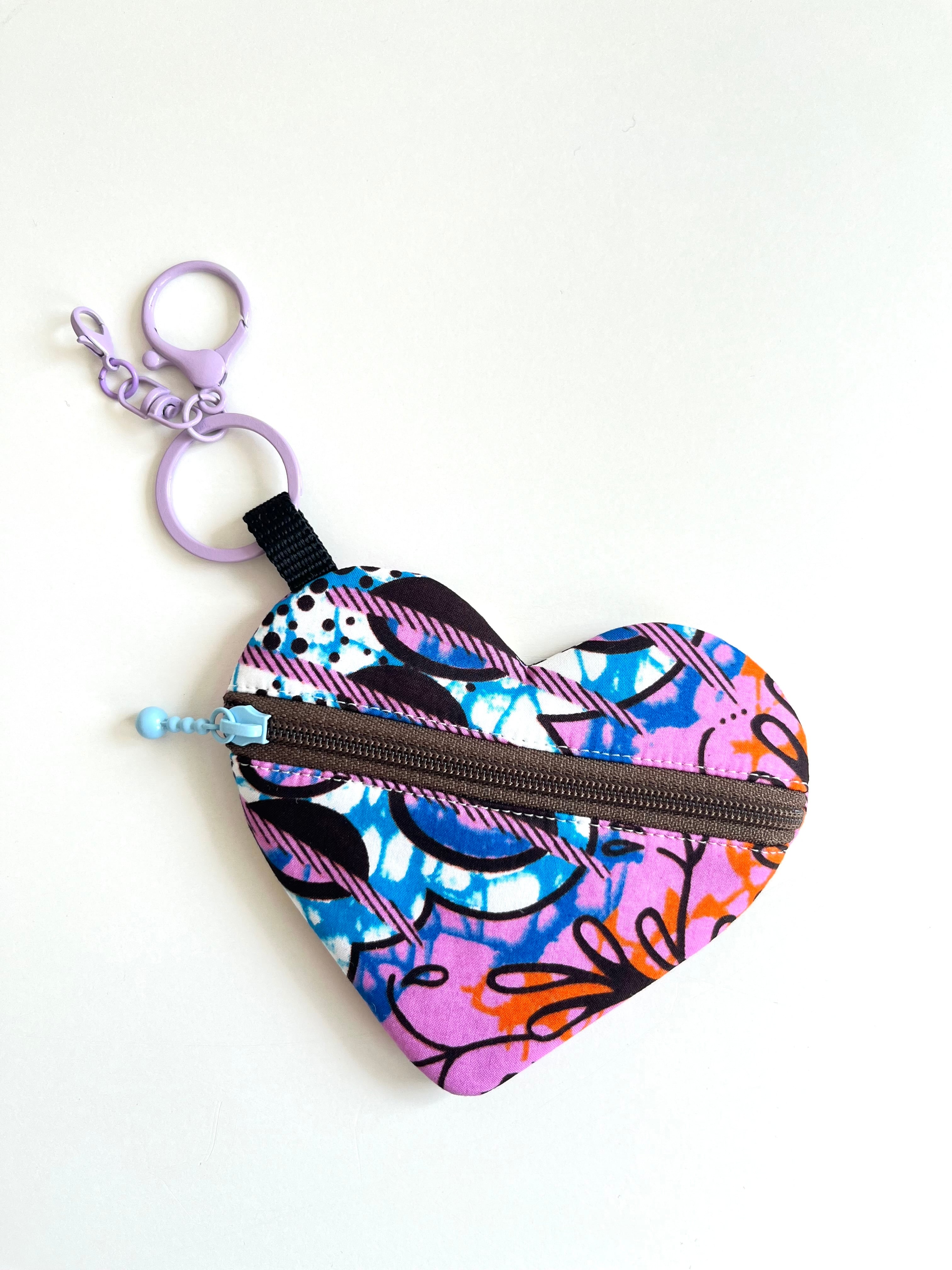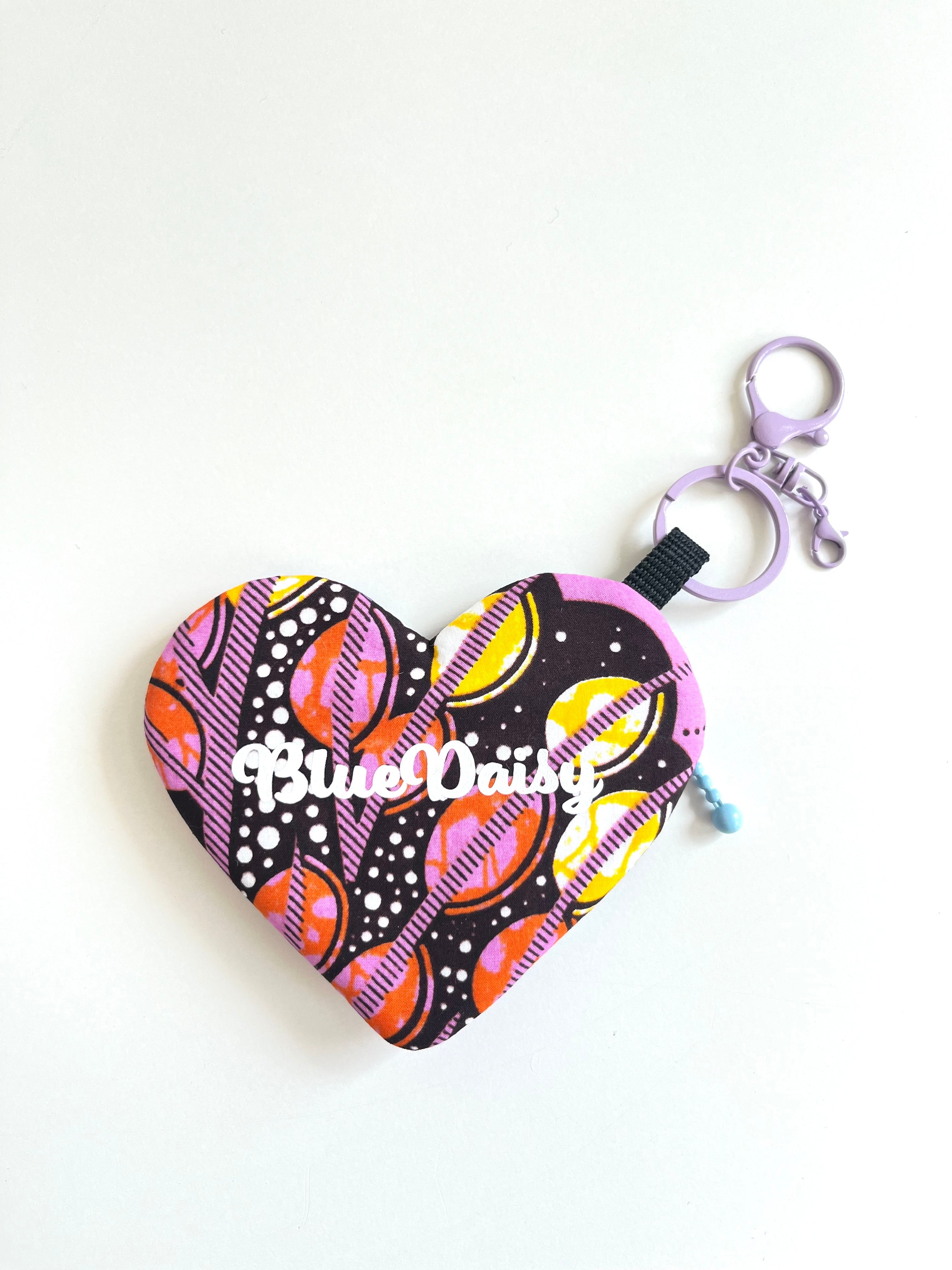 ◉アフリカ布のハートチャームポーチ