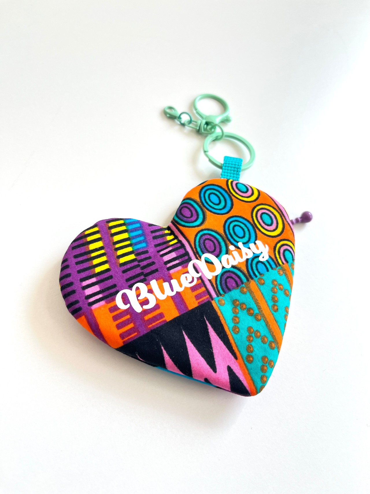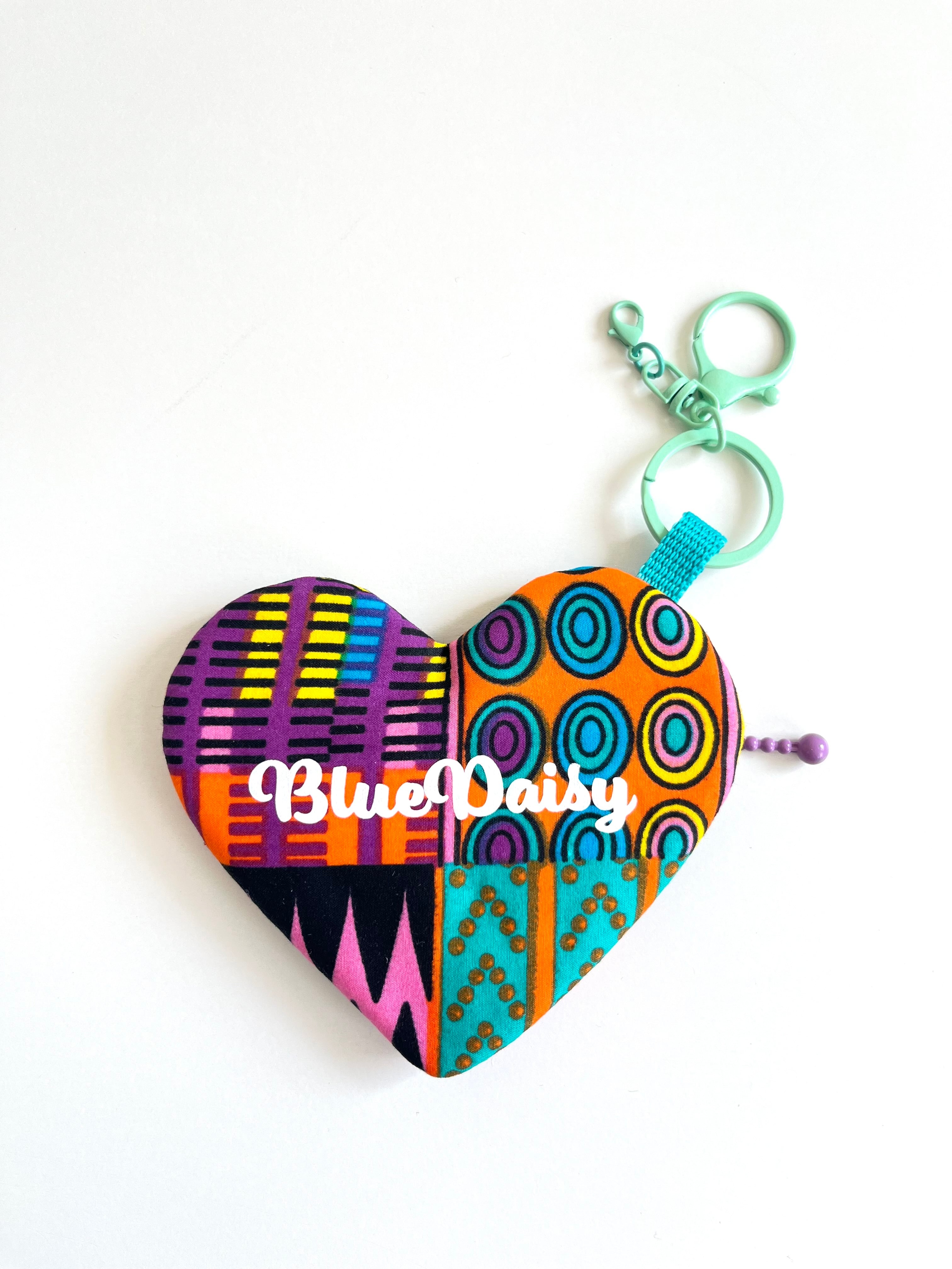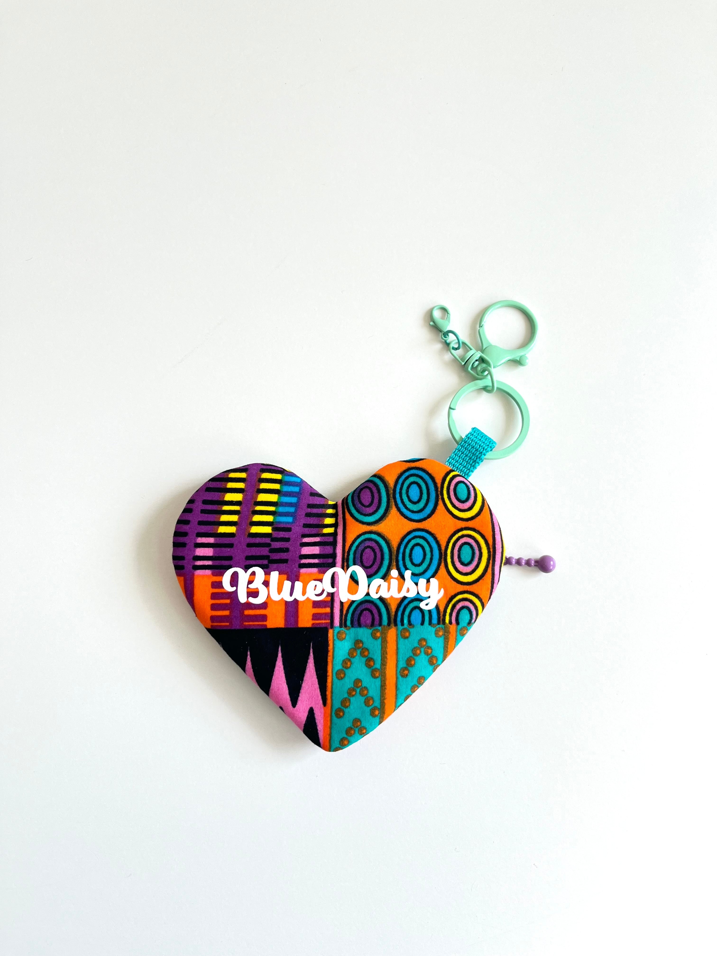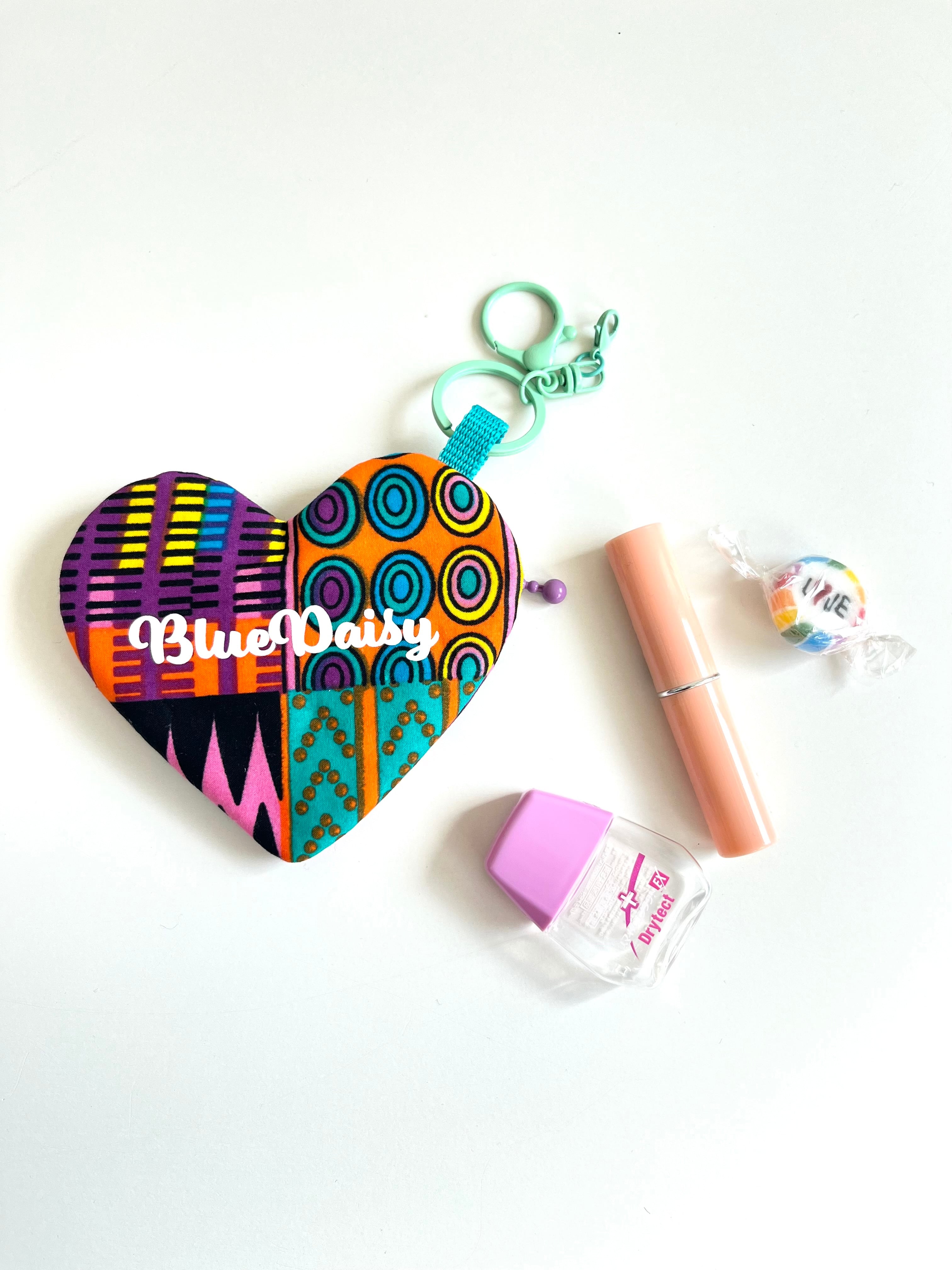 ◉アフリカ布のハートチャームポーチ