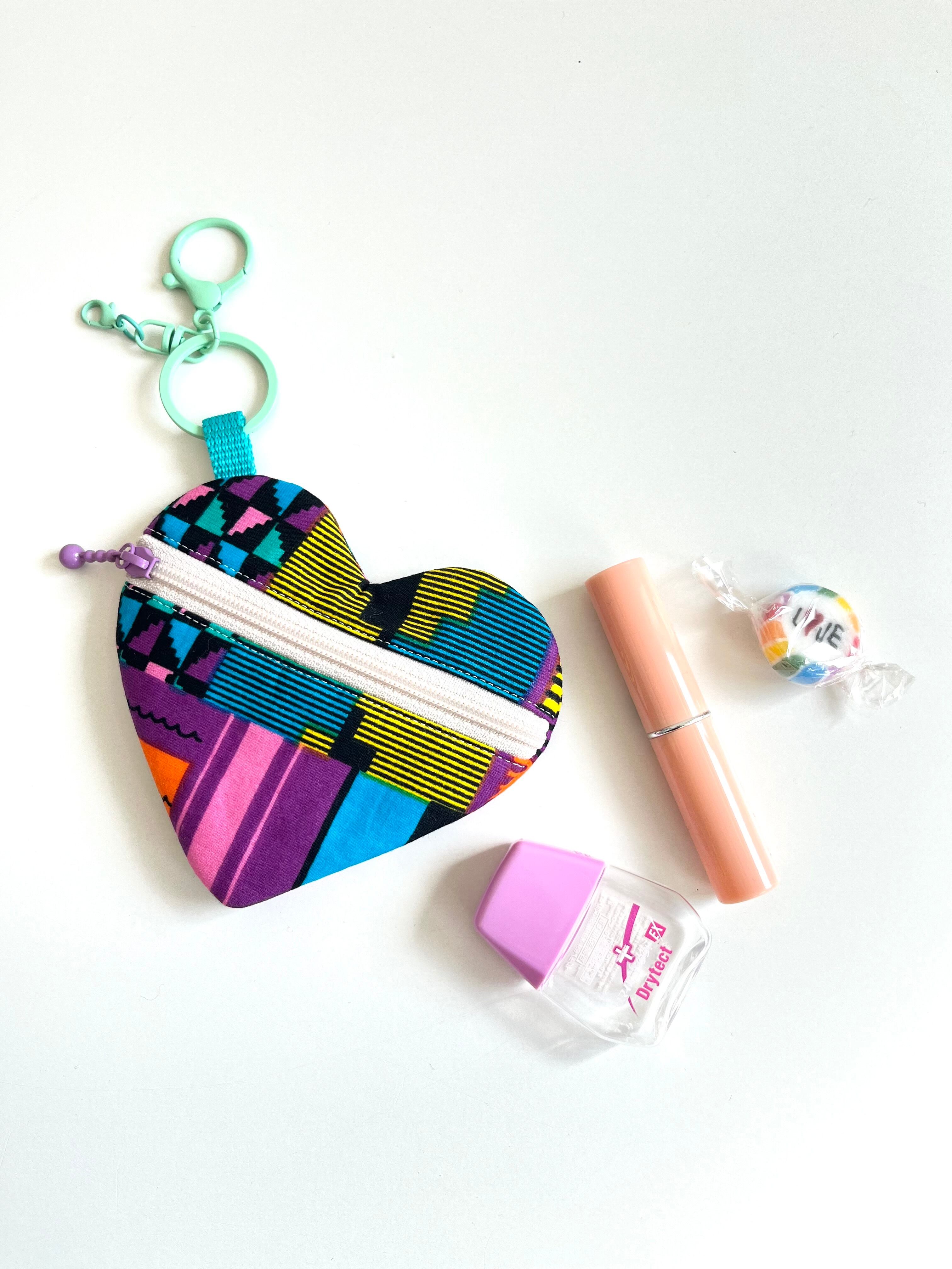 ハートのチャームポーチ♡ ミックスパターン/マルチカラー