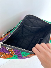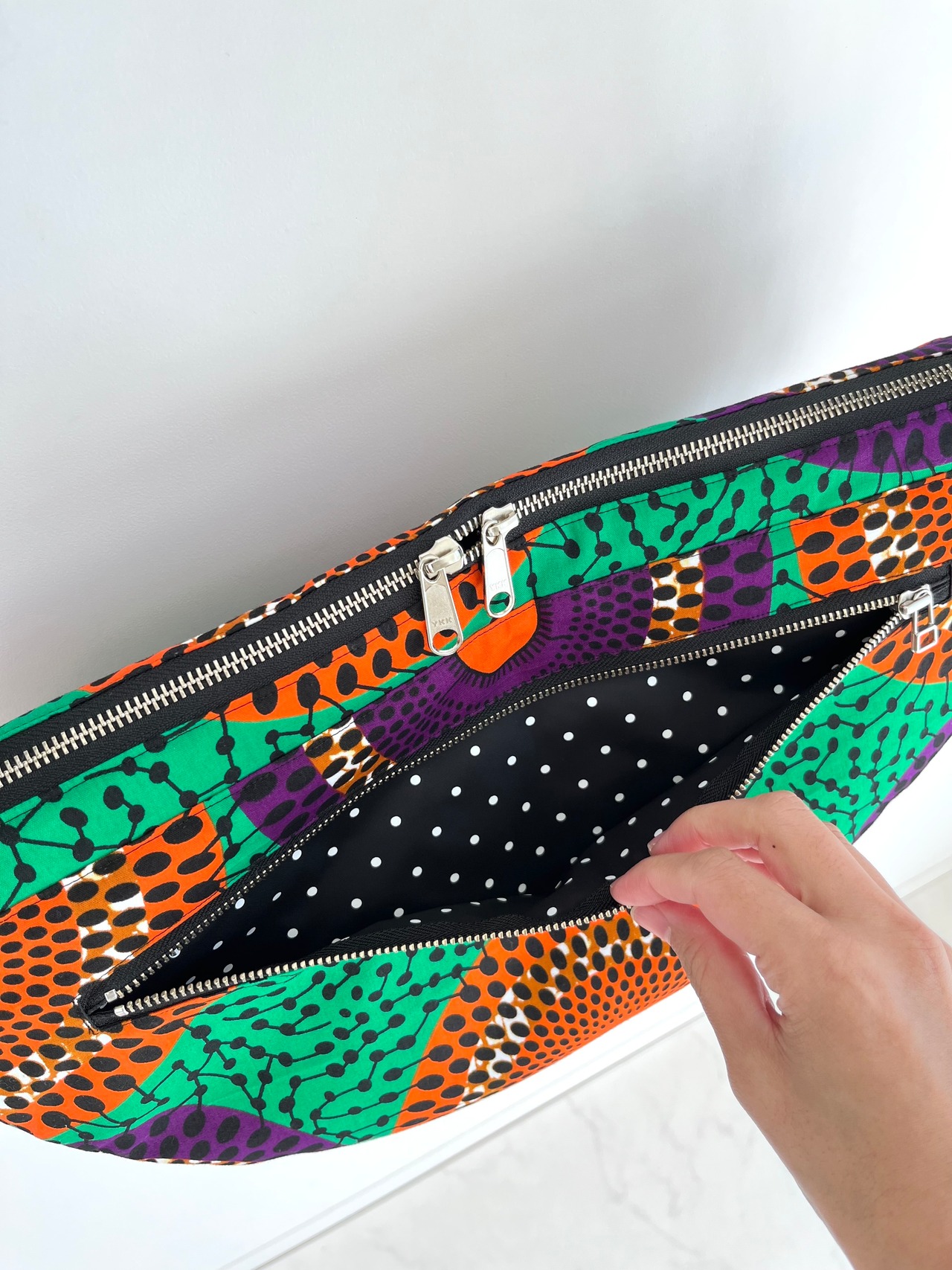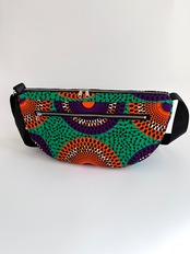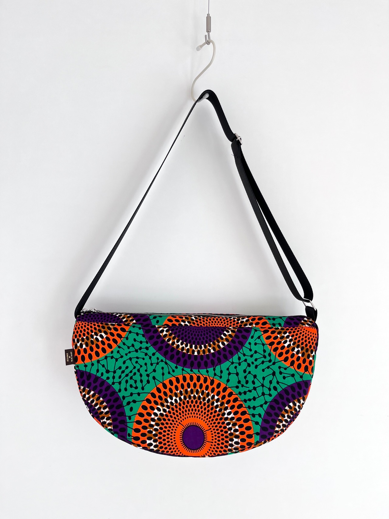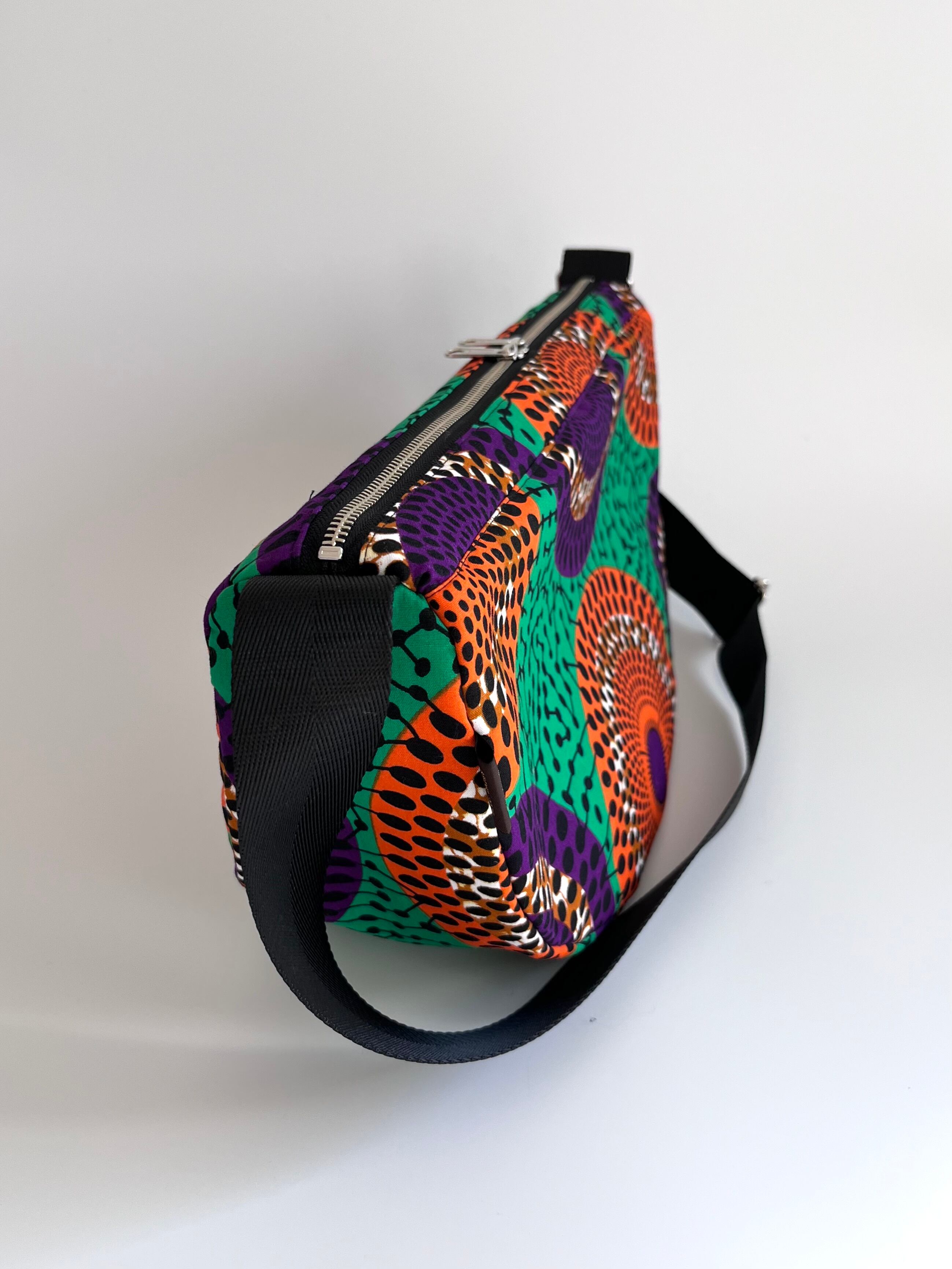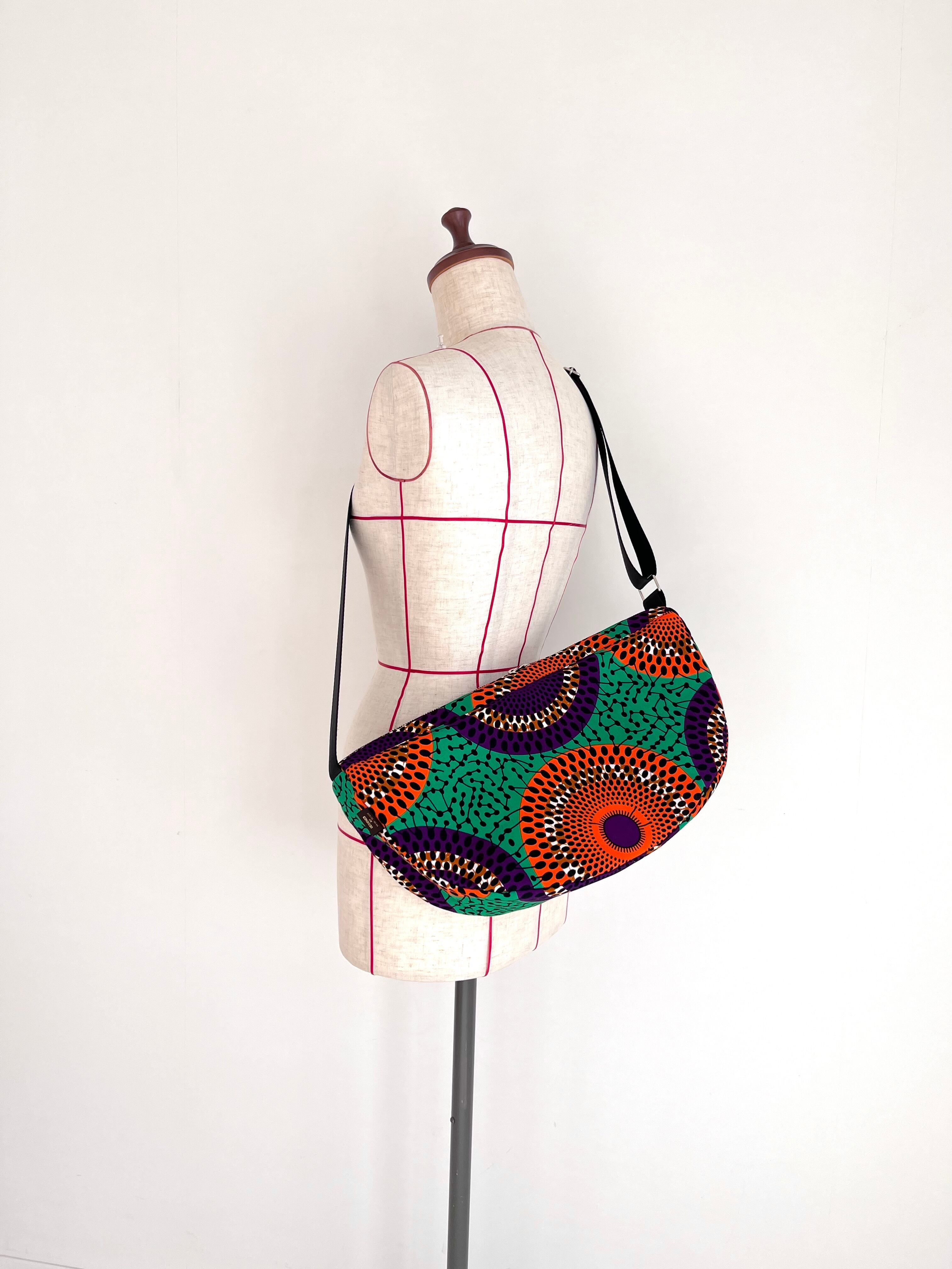 アフリカ布 ムーンバッグ 送料無料 ボディバッグ 水紋柄/緑地×オレンジ×パープル
