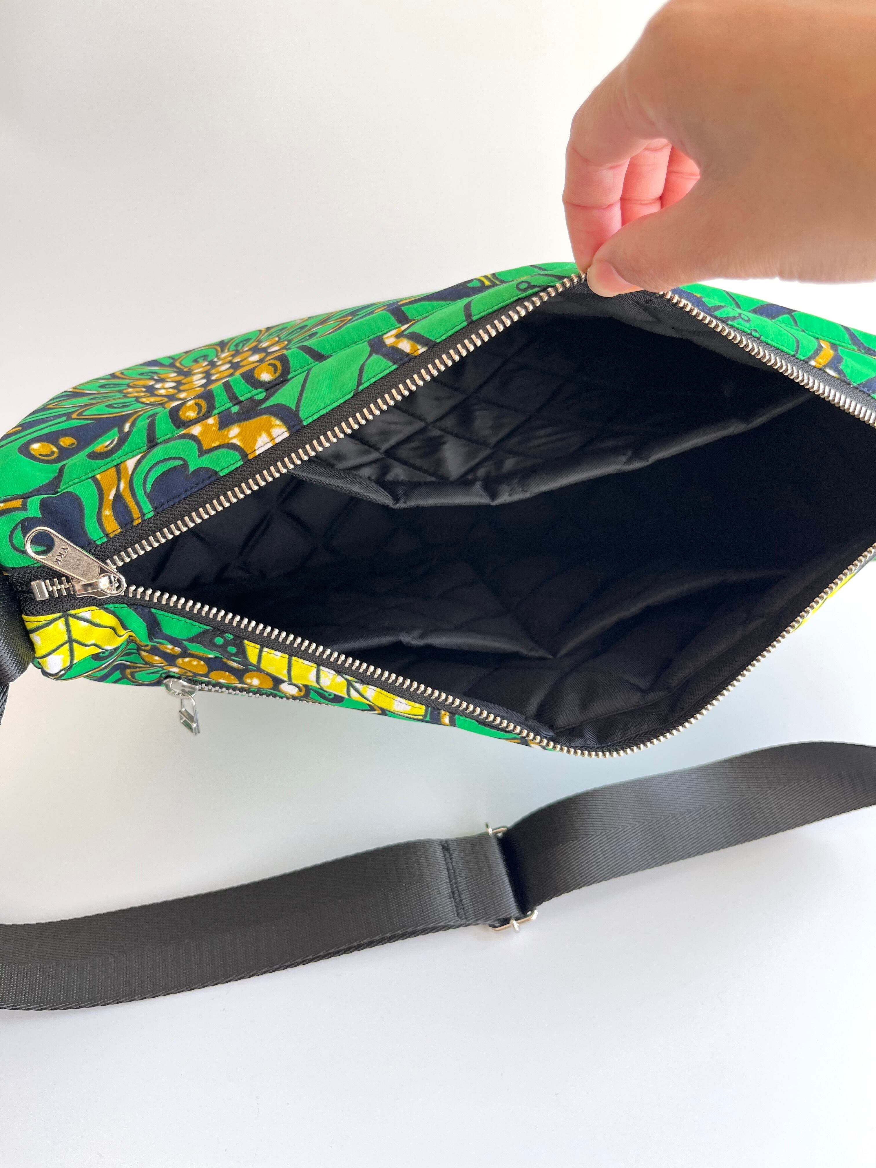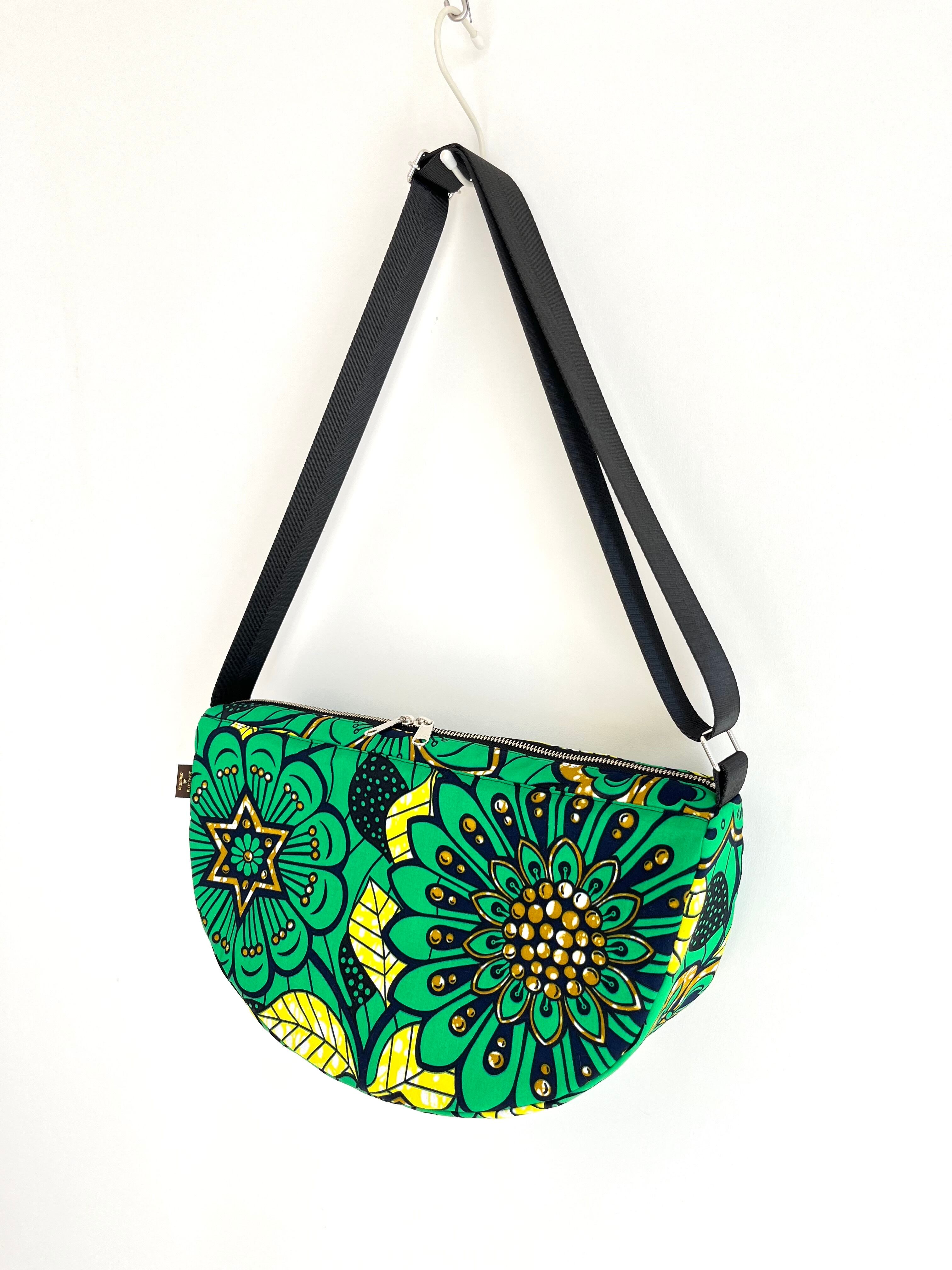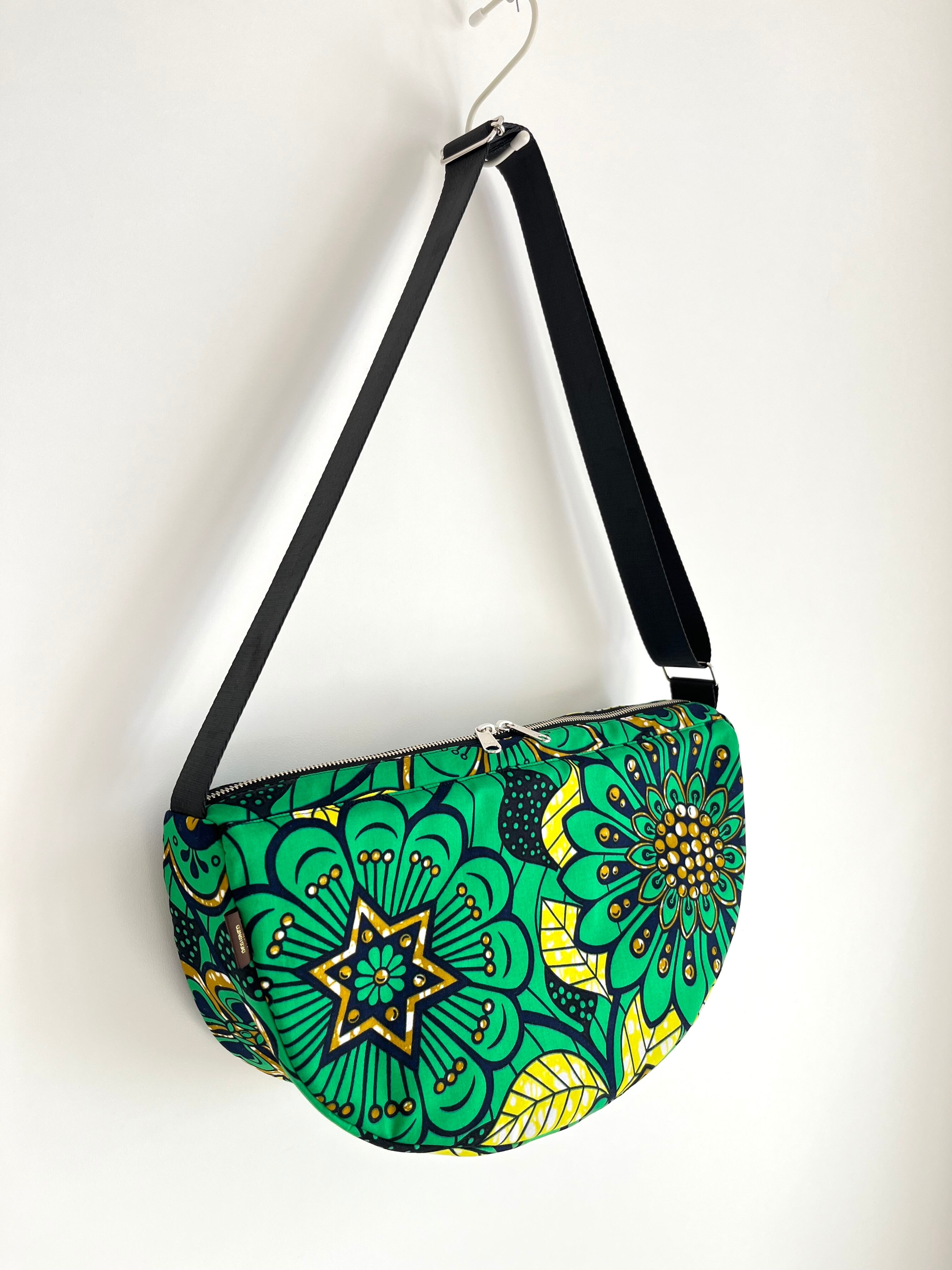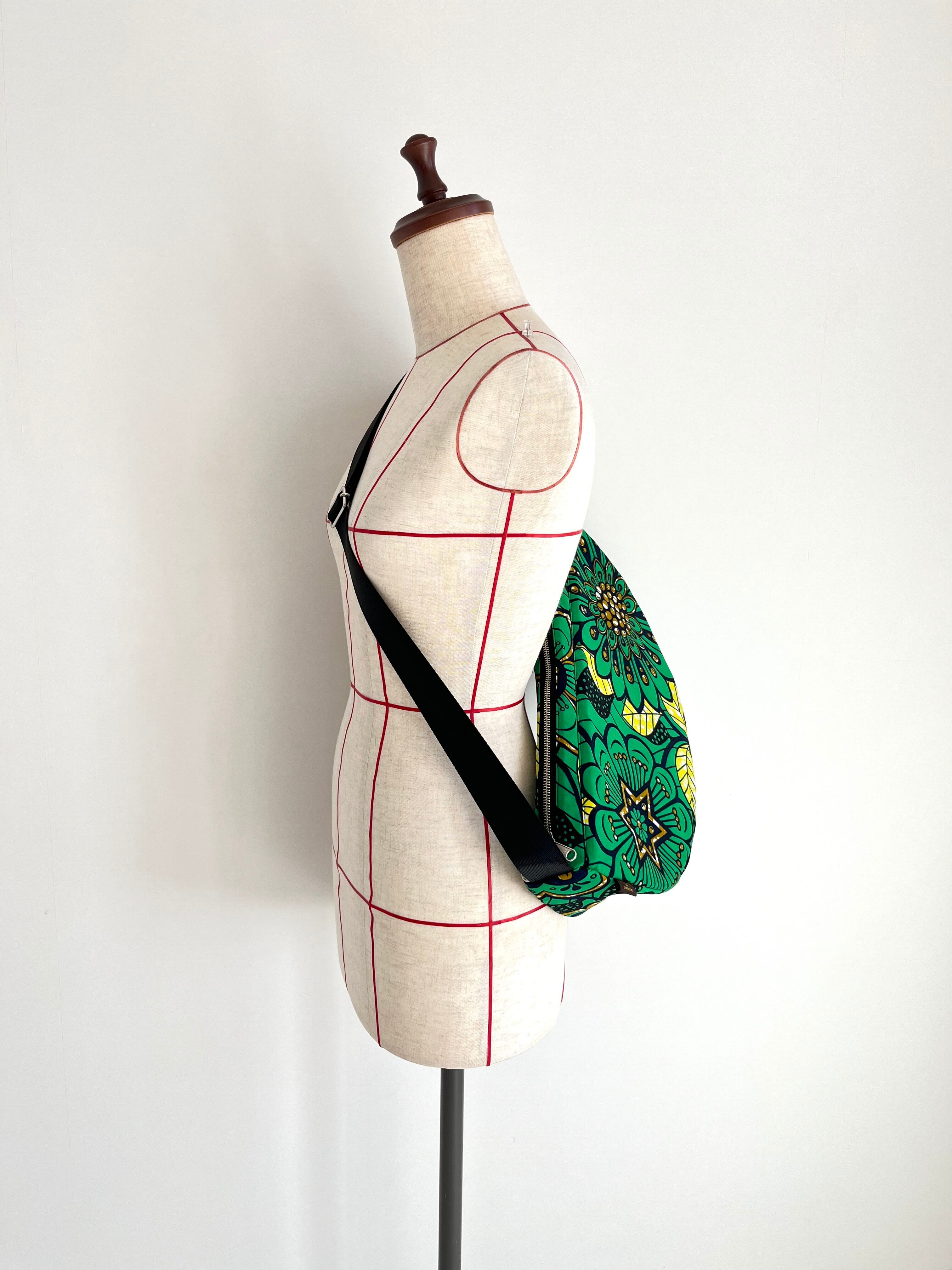 アフリカ布 ムーンバッグ 送料無料 ボディバッグ グリーンフラワー
