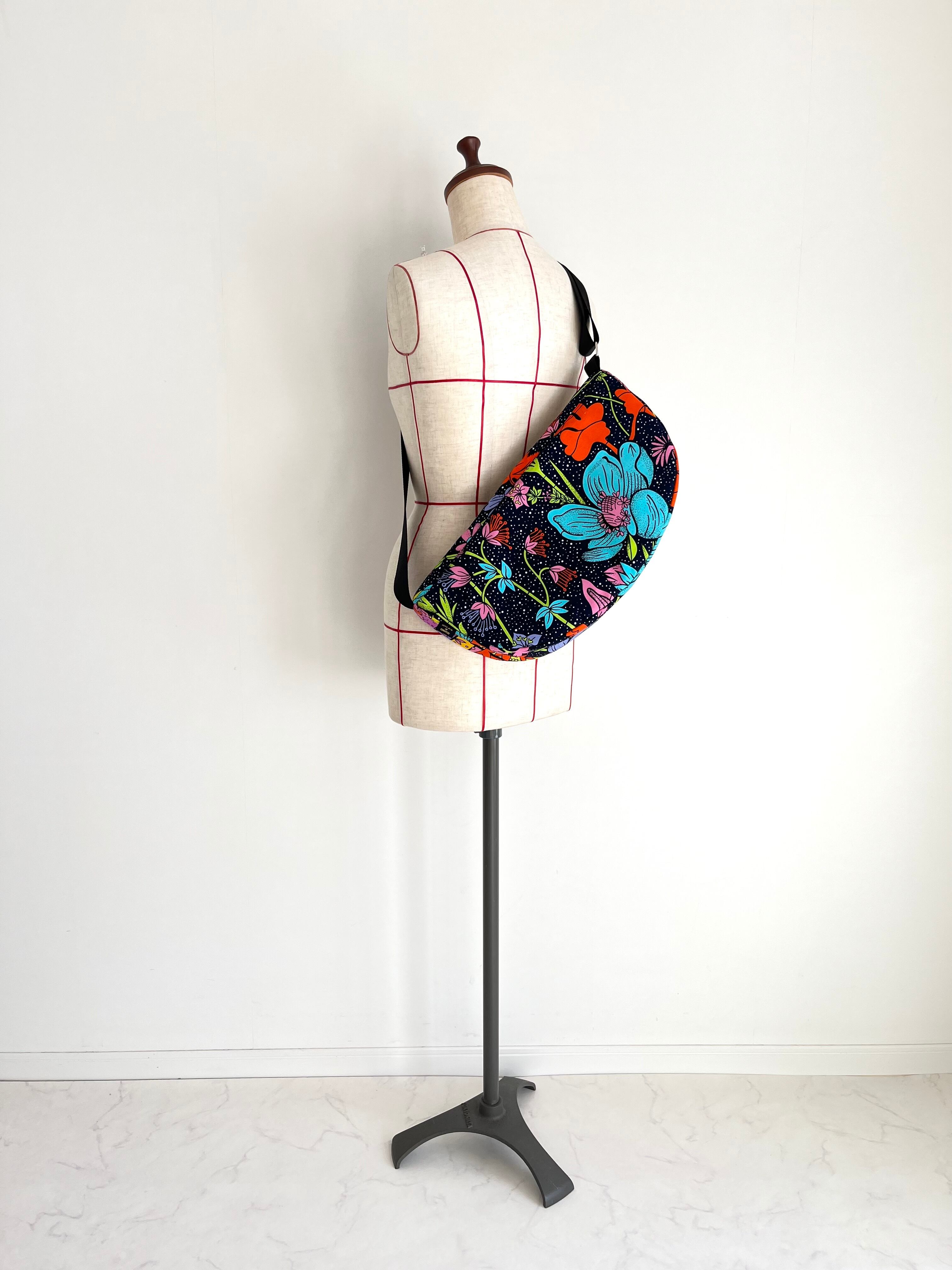 アフリカ布 ムーンバッグ 送料無料 ボディバッグ ナイトフラワー