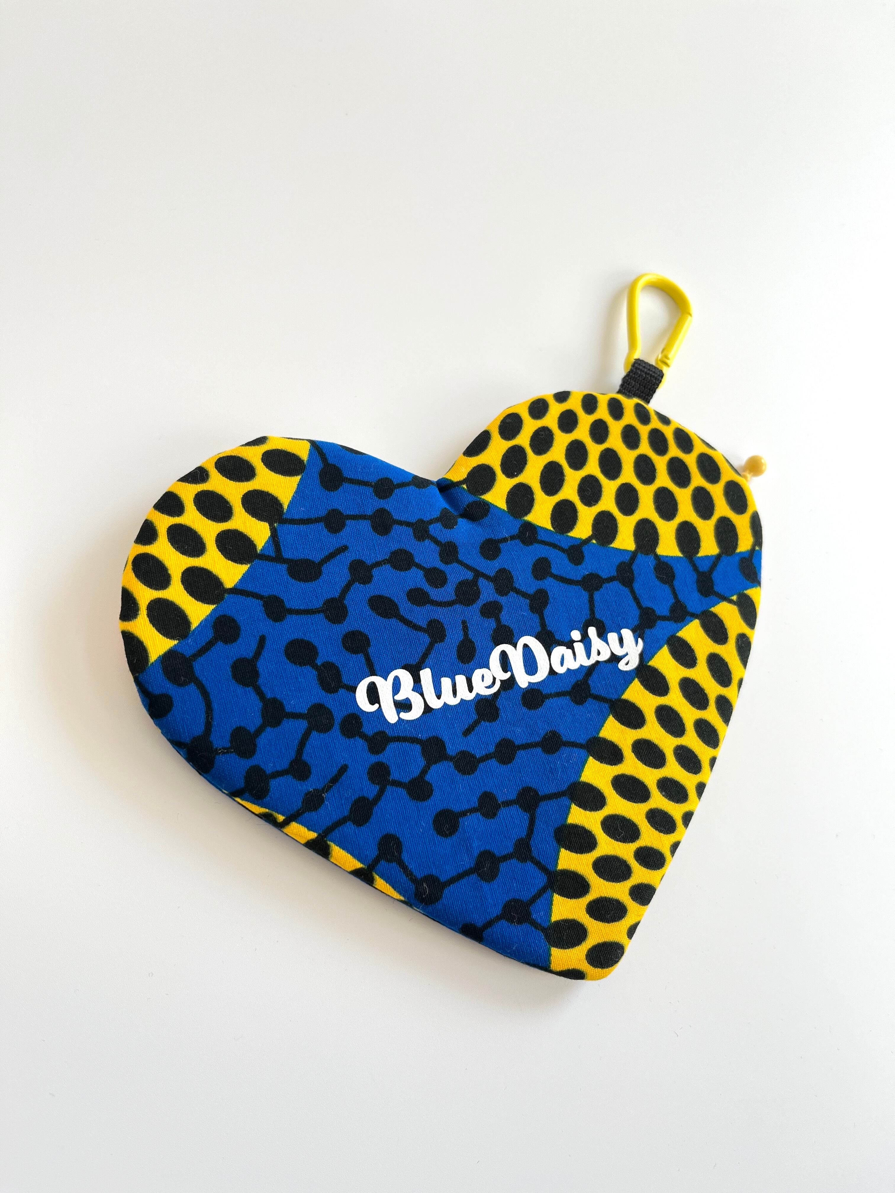 アフリカ布 ハートポーチ♡(大)水紋柄/ブルー×イエロー
