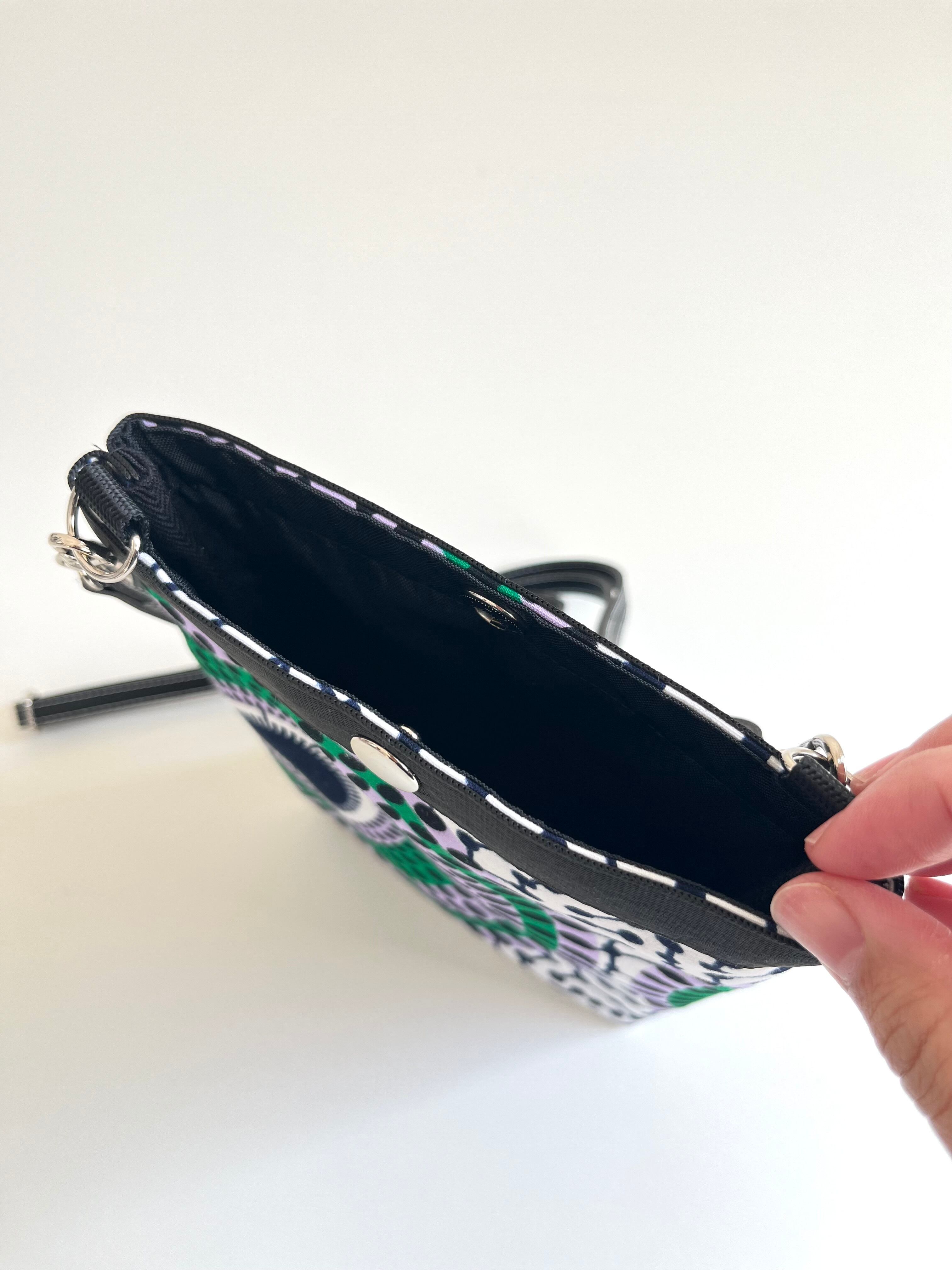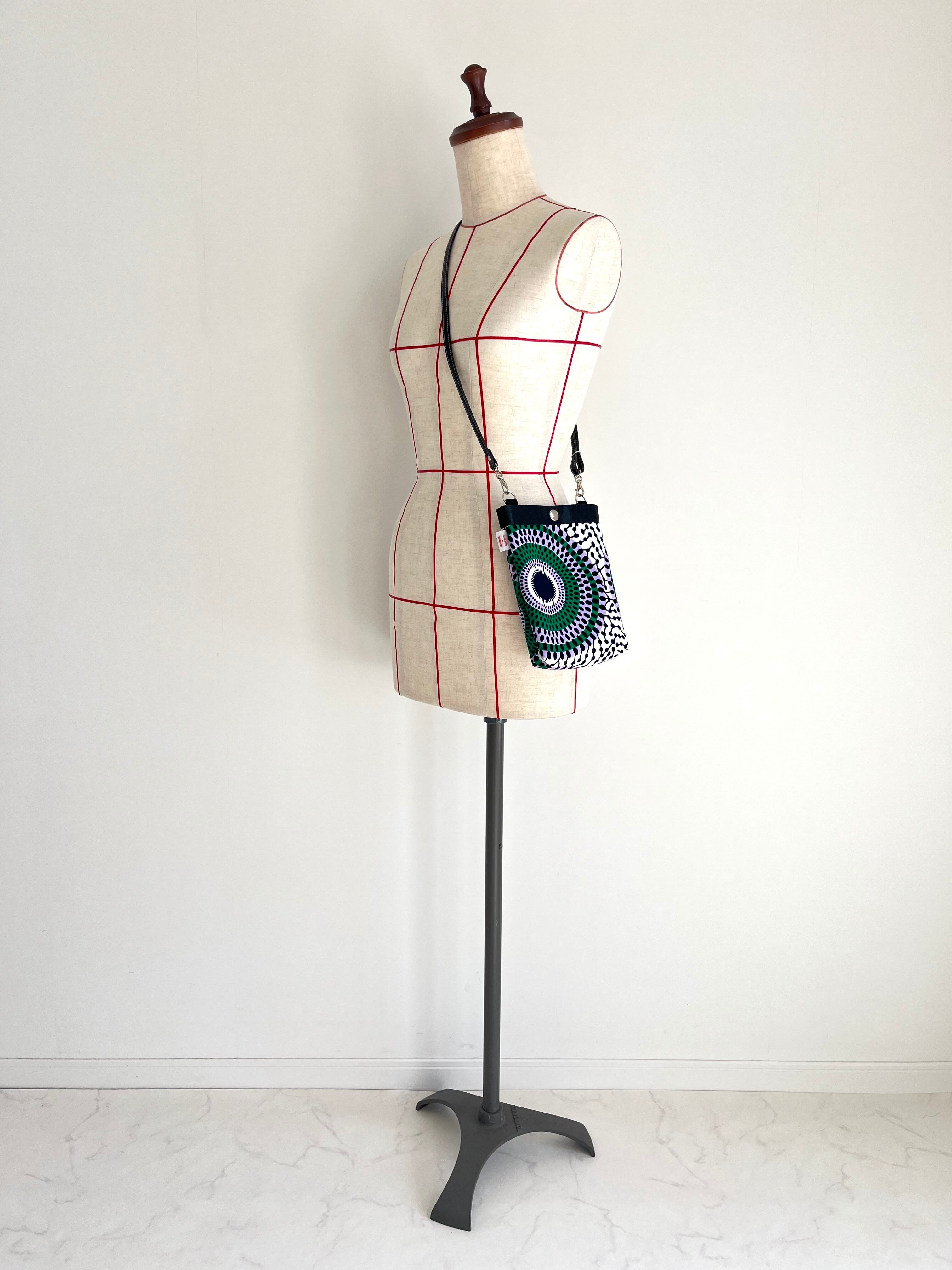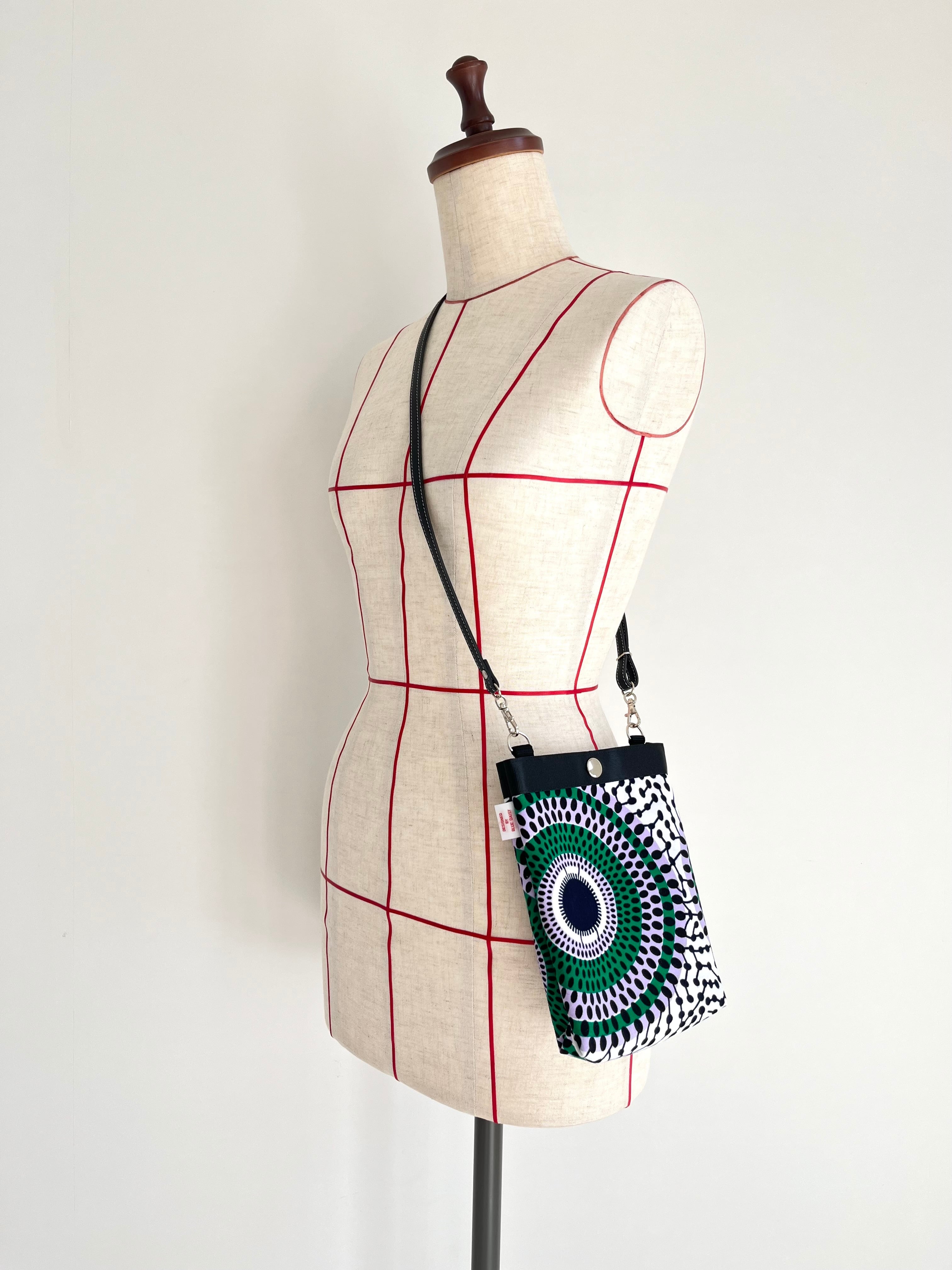 アフリカ布 スマホポシェット 水紋柄/白地×グリーン×薄紫